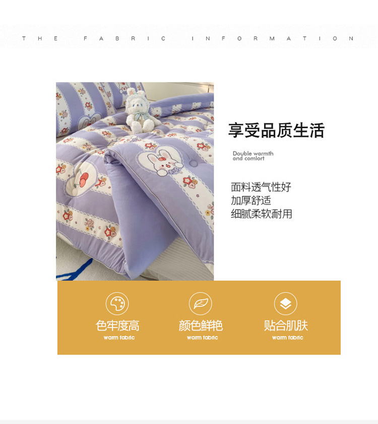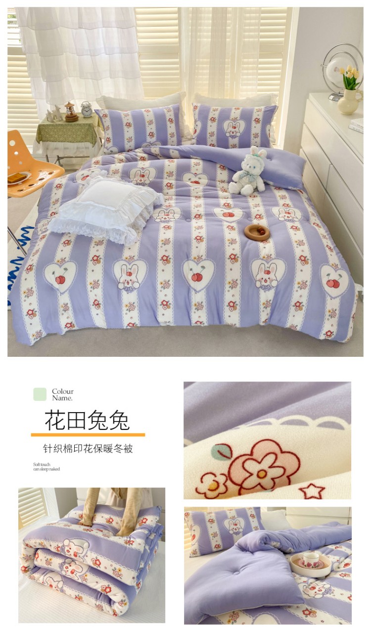 • 91家纺网 家纺一手货源 找家纺 寐居 2022新款A类针织棉超柔保暖印花冬被 花田兔兔