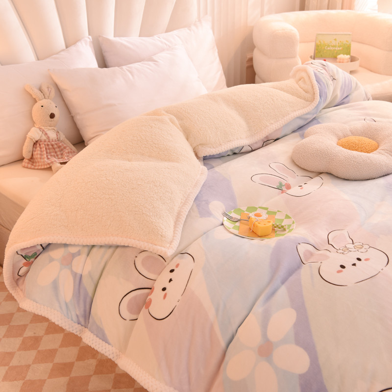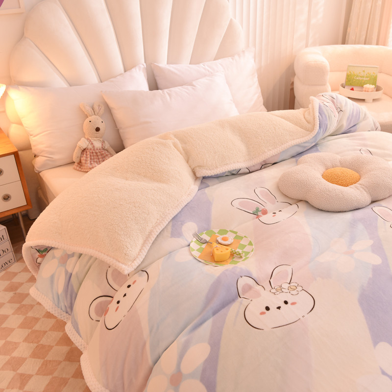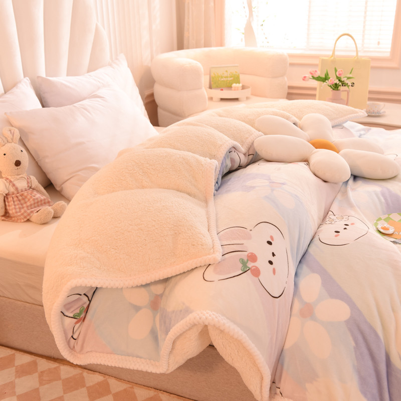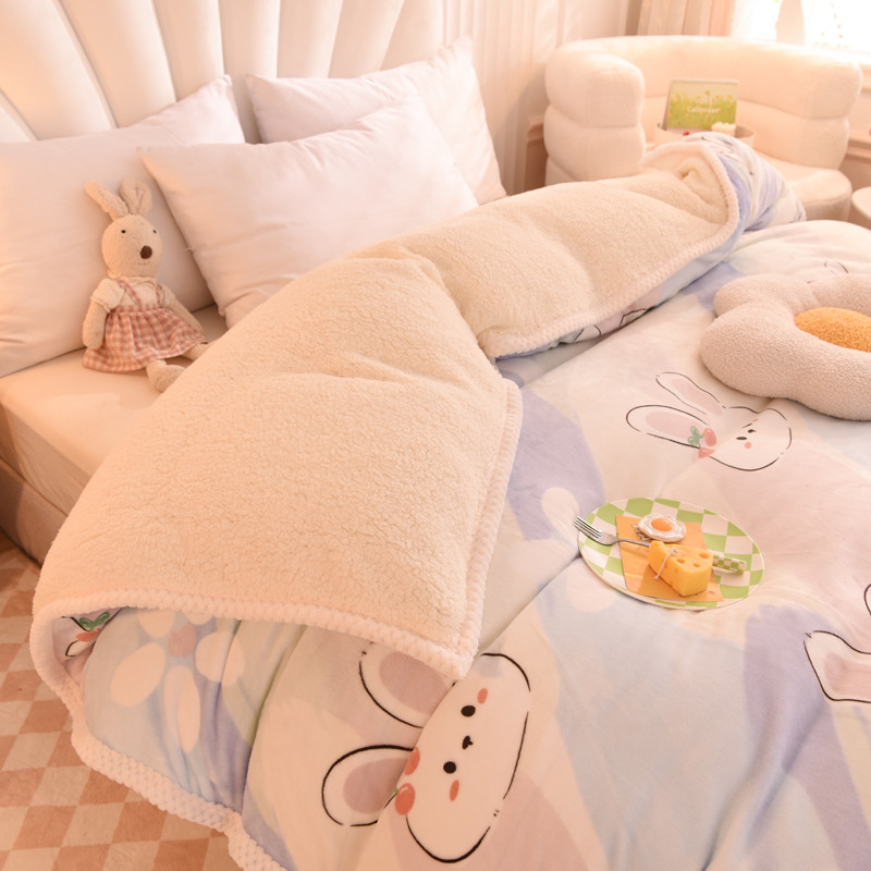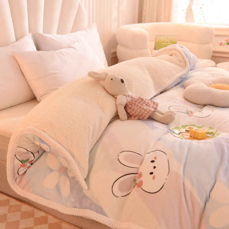 眠博士 2021新款印花拼羊羔绒单被套 晴天兔