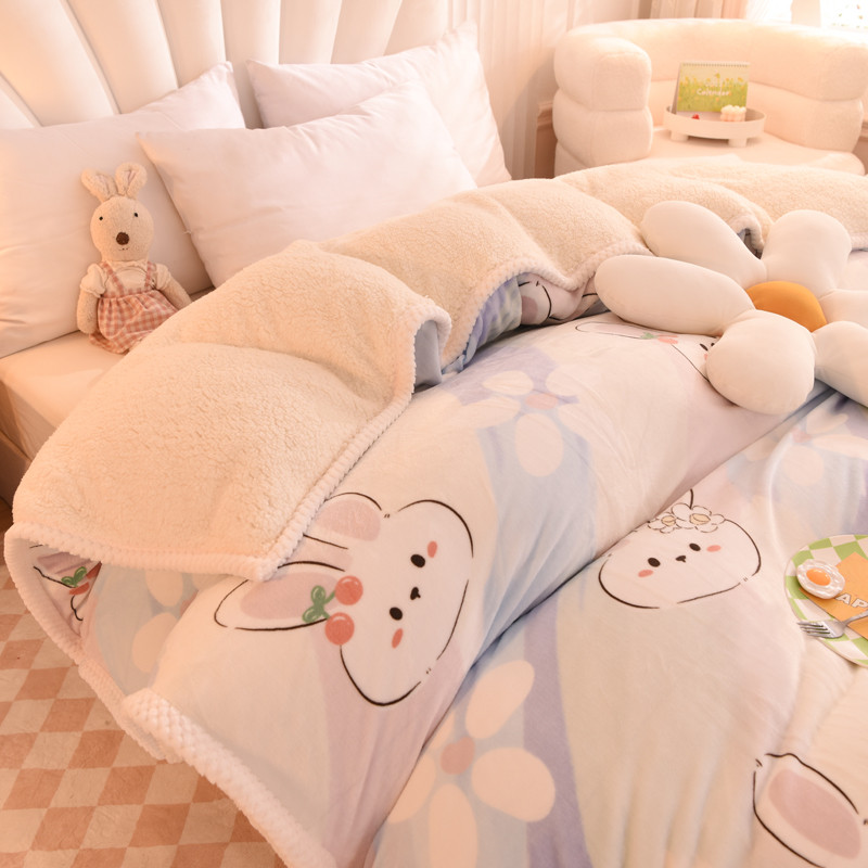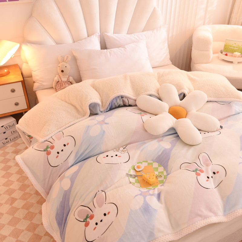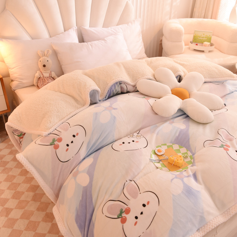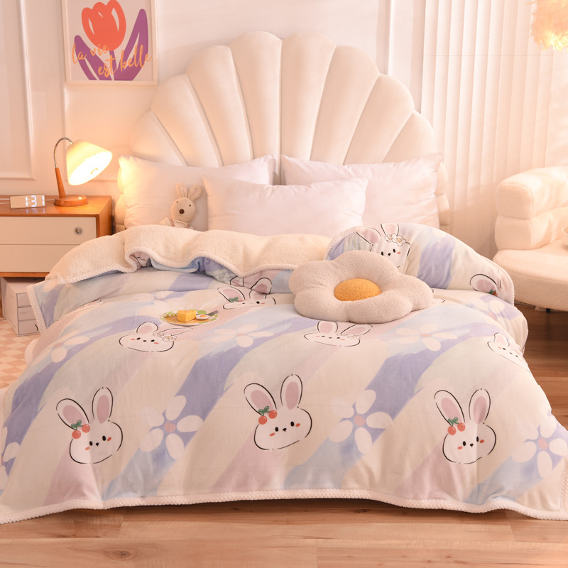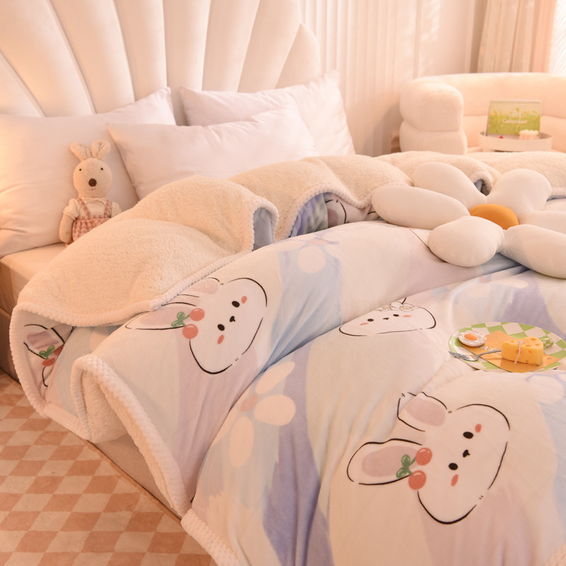 眠博士 2021新款印花拼羊羔绒单被套 晴天兔