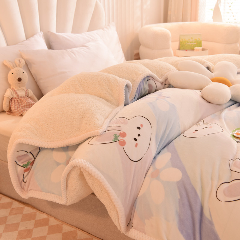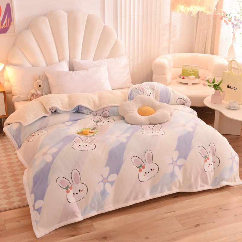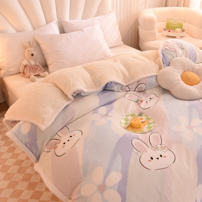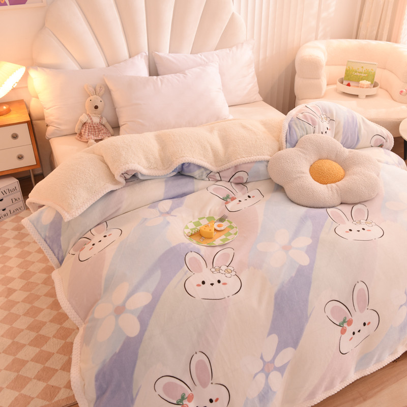 商品名称:眠博士 2021新款印花拼羊羔绒单被套 晴天兔