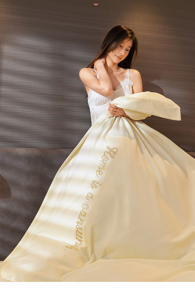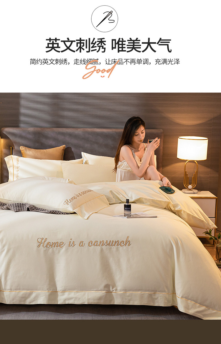 商品名称:蓝米卡夫 2024新款全棉加厚磨毛刺绣套件系列 奶昔白