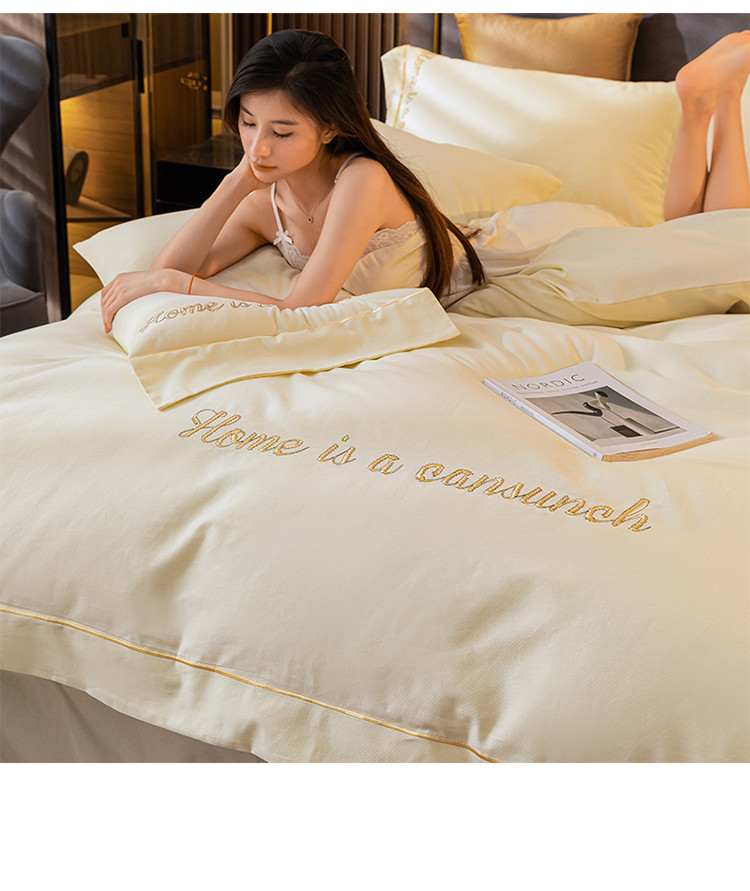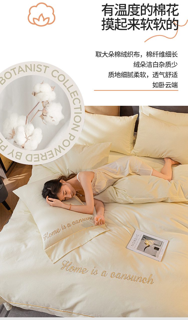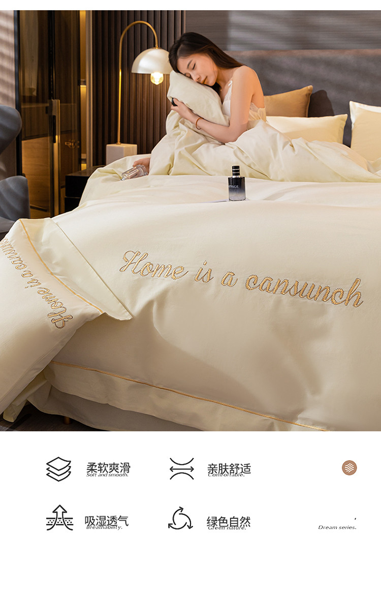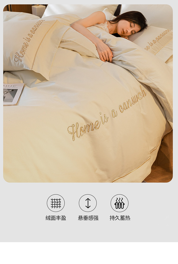 蓝米卡夫 2024新款全棉加厚磨毛刺绣套件系列 奶昔白