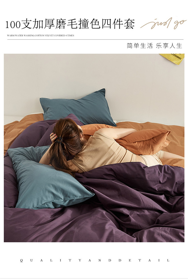 当前位置: 91家纺网 > 商品网购 > 床品套件 > 四件套 > 普通磨毛四件套 > 新款磨毛撞色系列四件套 深紫-南菲蓝