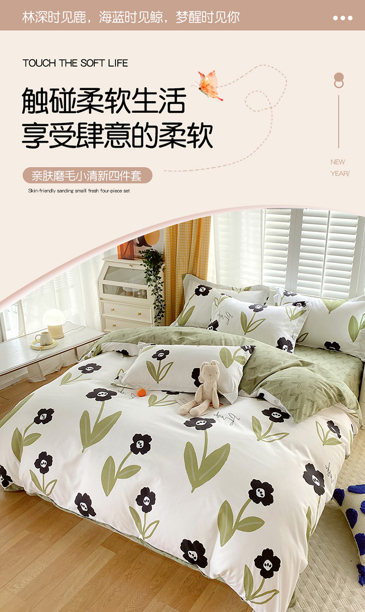 当前位置: 91家纺网 > 商品网购 > 床品套件 > 四件套 > 化纤普通四件套 > 艾橙 秋冬新款140g植物羊绒磨毛四件套系列 春风十里