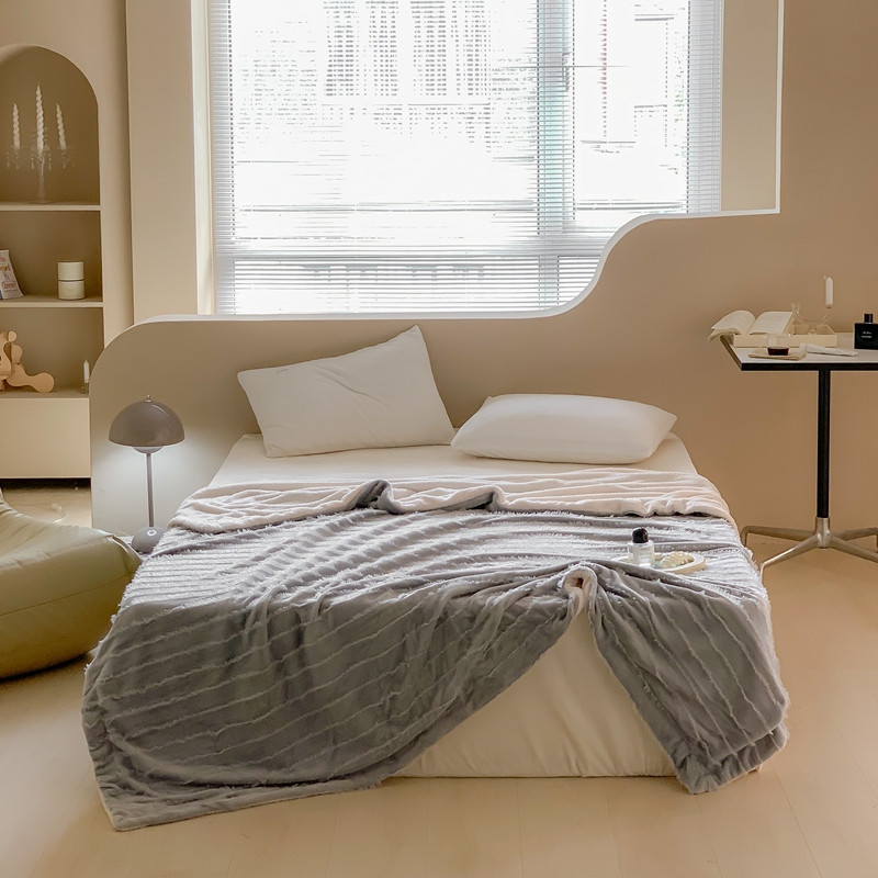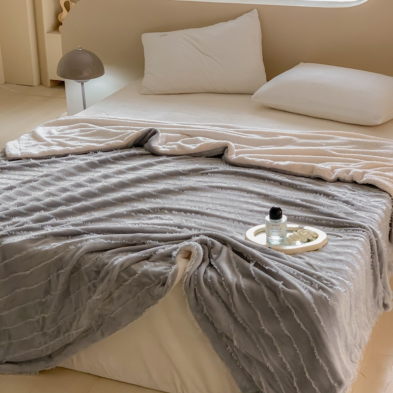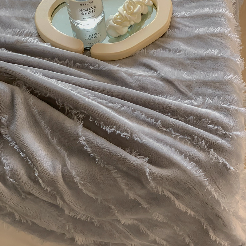 顾里家纺 2022新款加厚流苏提花泰迪绒毯 皓月灰
