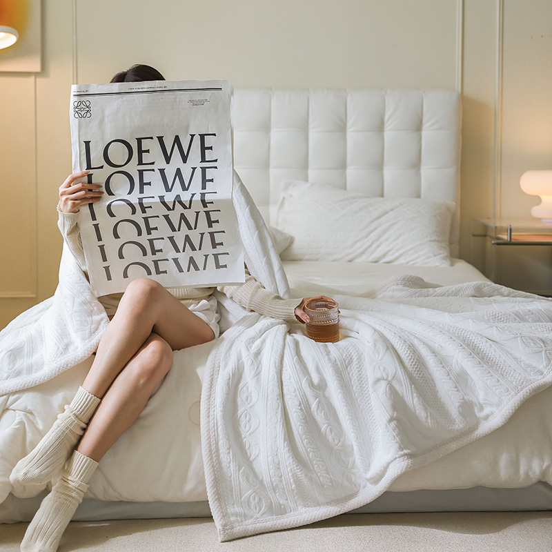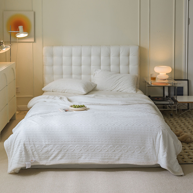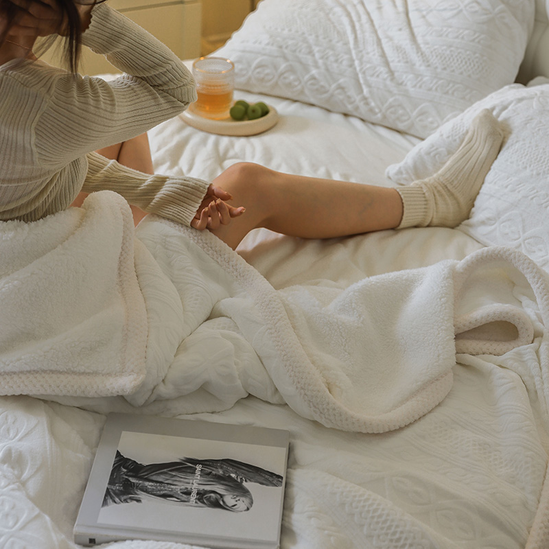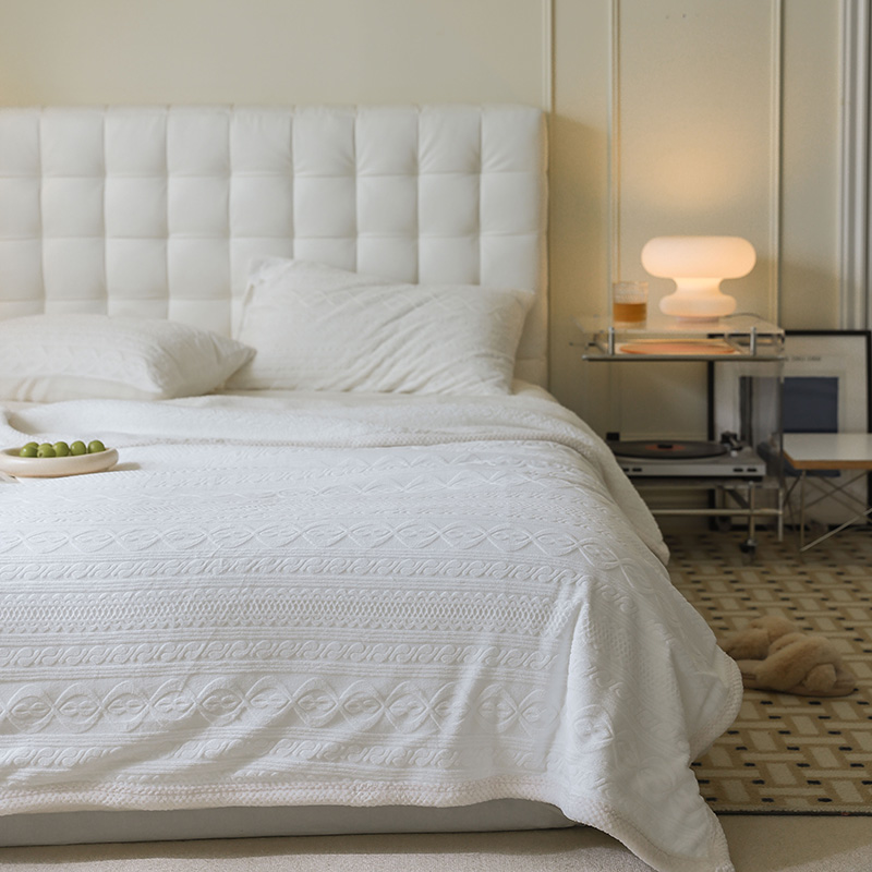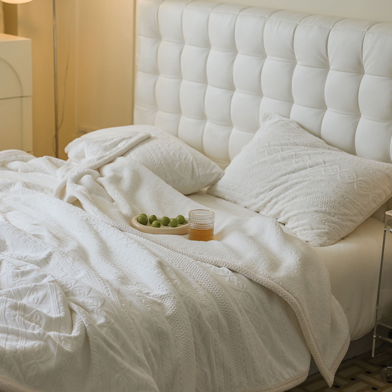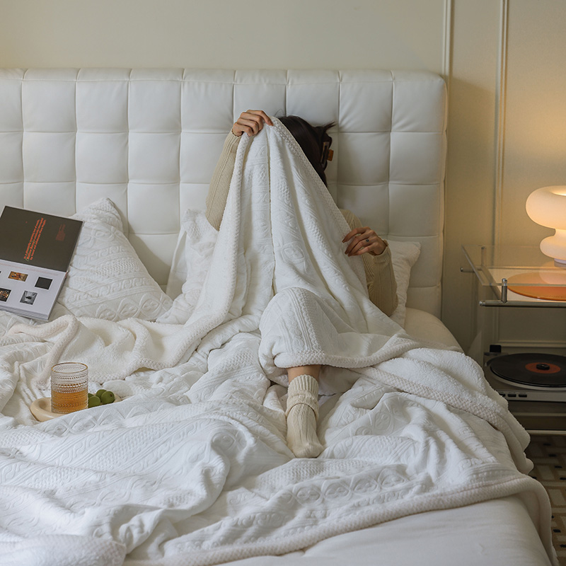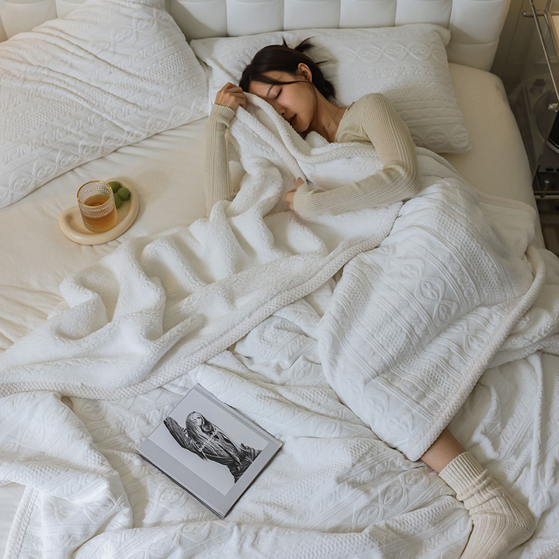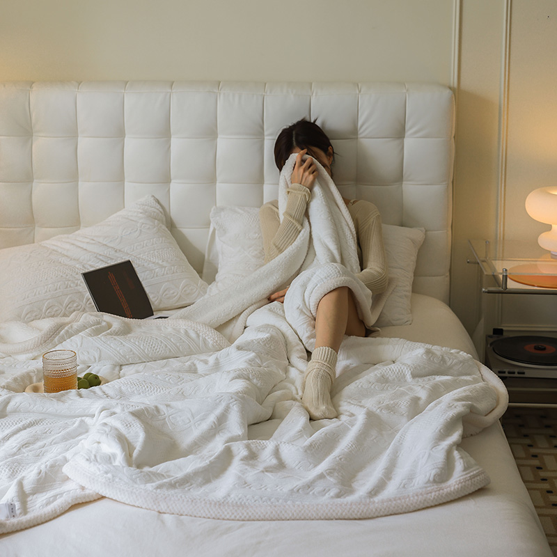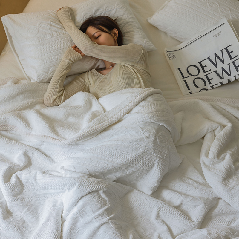 寐眠 2022新款牛奶绒剪花双层毯 简约白