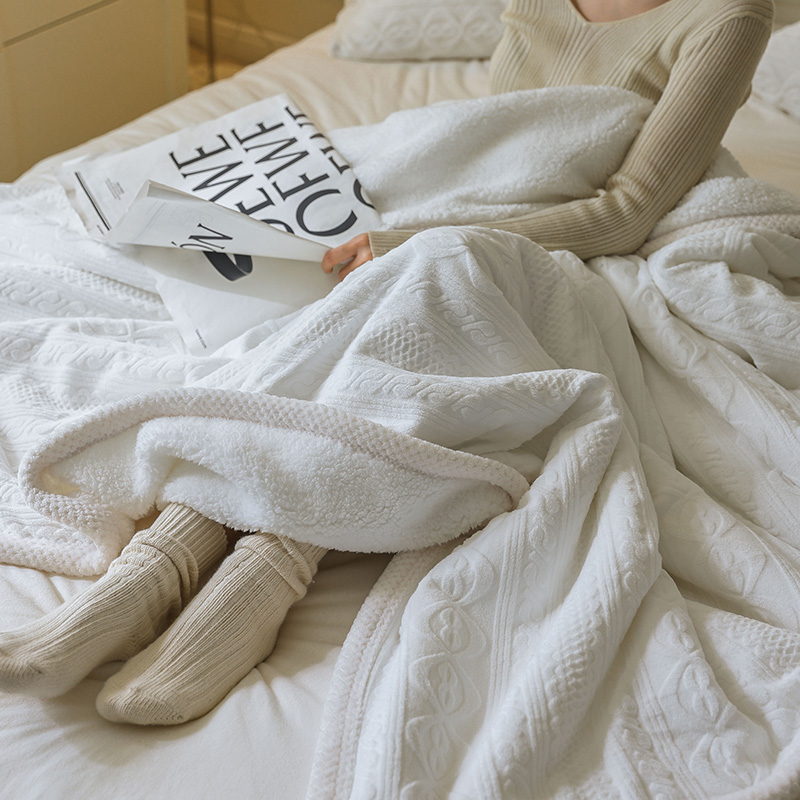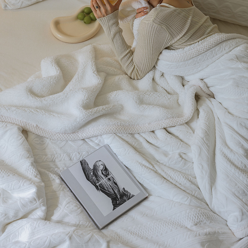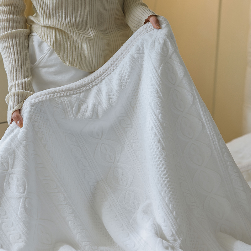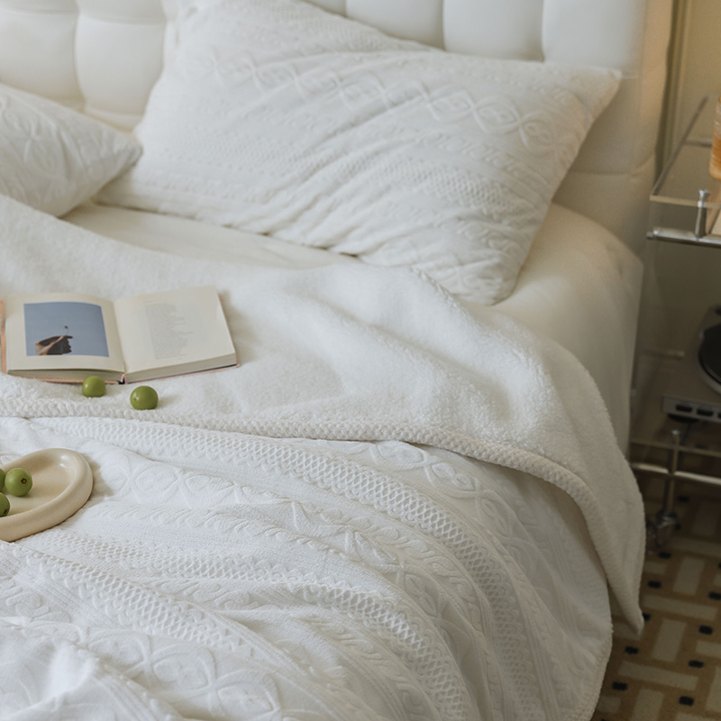 商品名称:寐眠 2022新款牛奶绒剪花双层毯 简约白