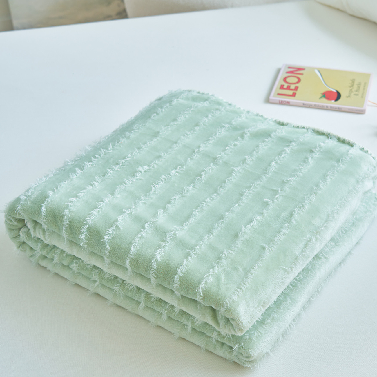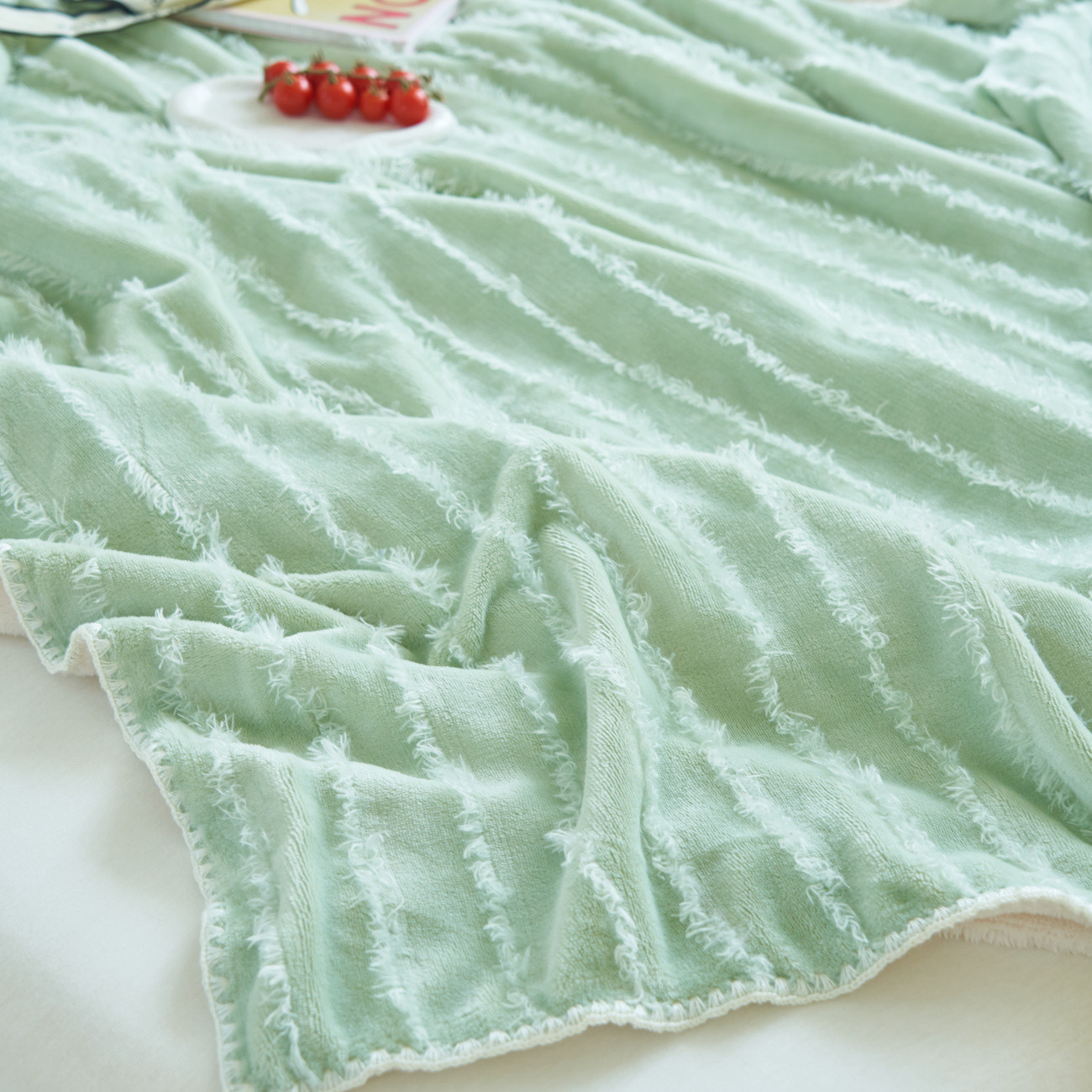 晨曦家纺 2022新款流苏款三角针毛毯 流苏-青草绿