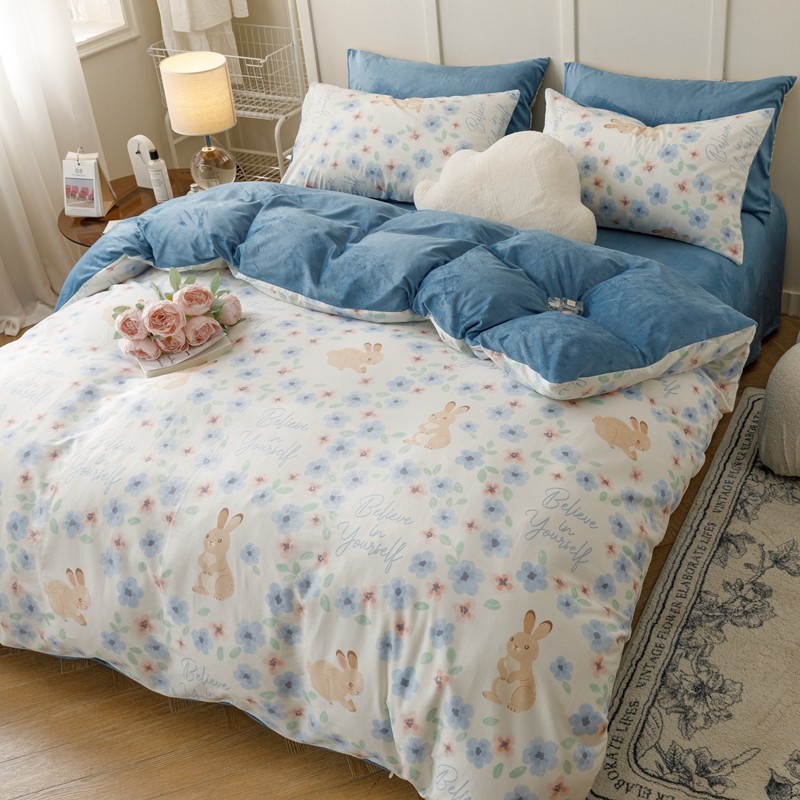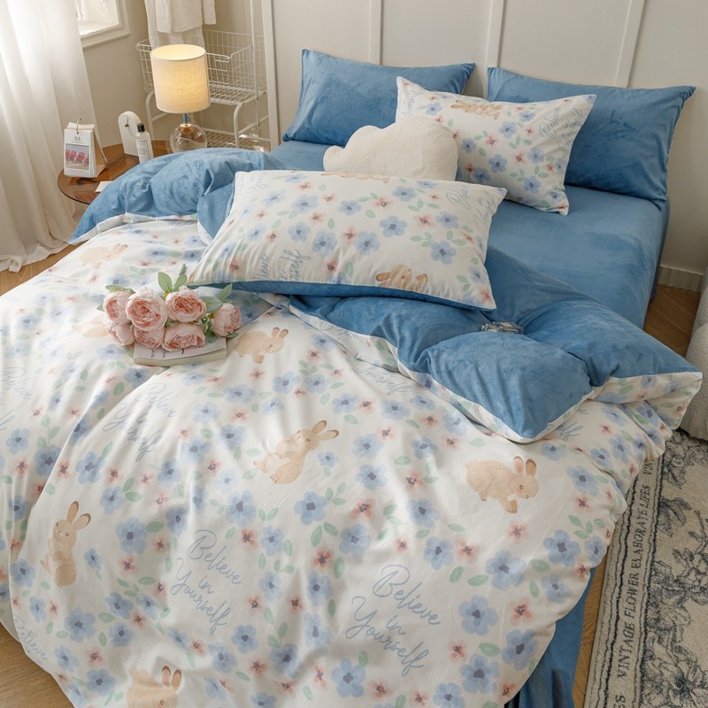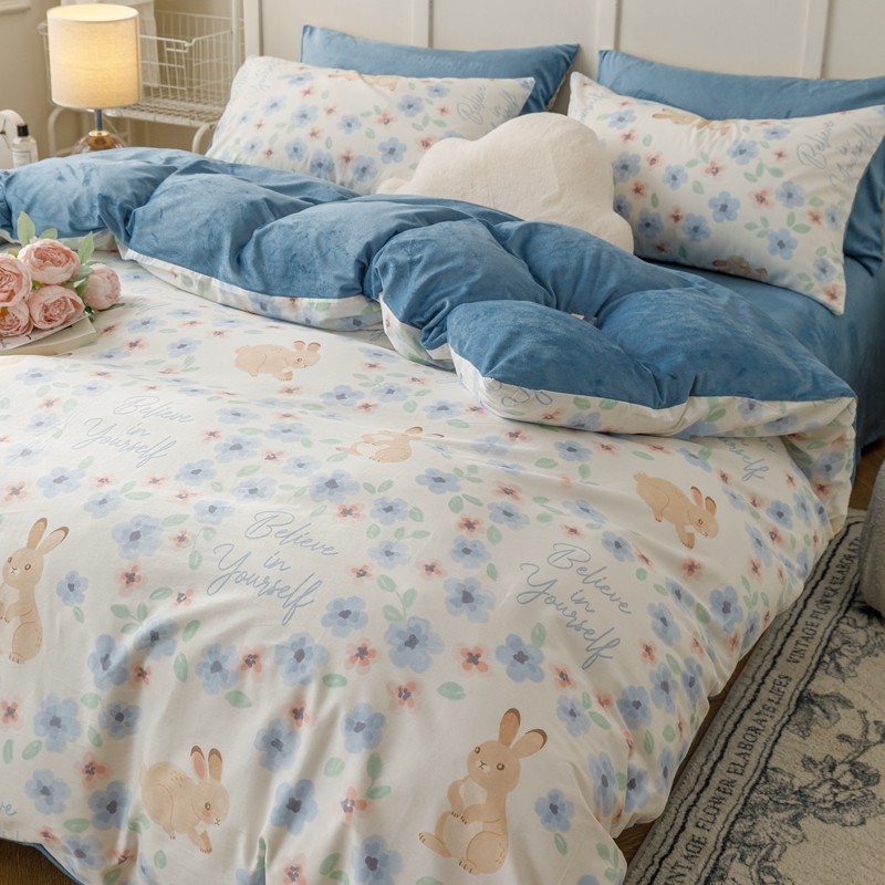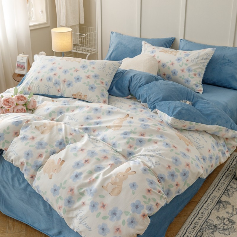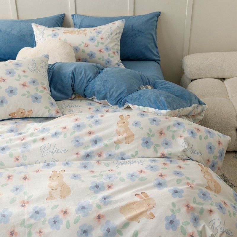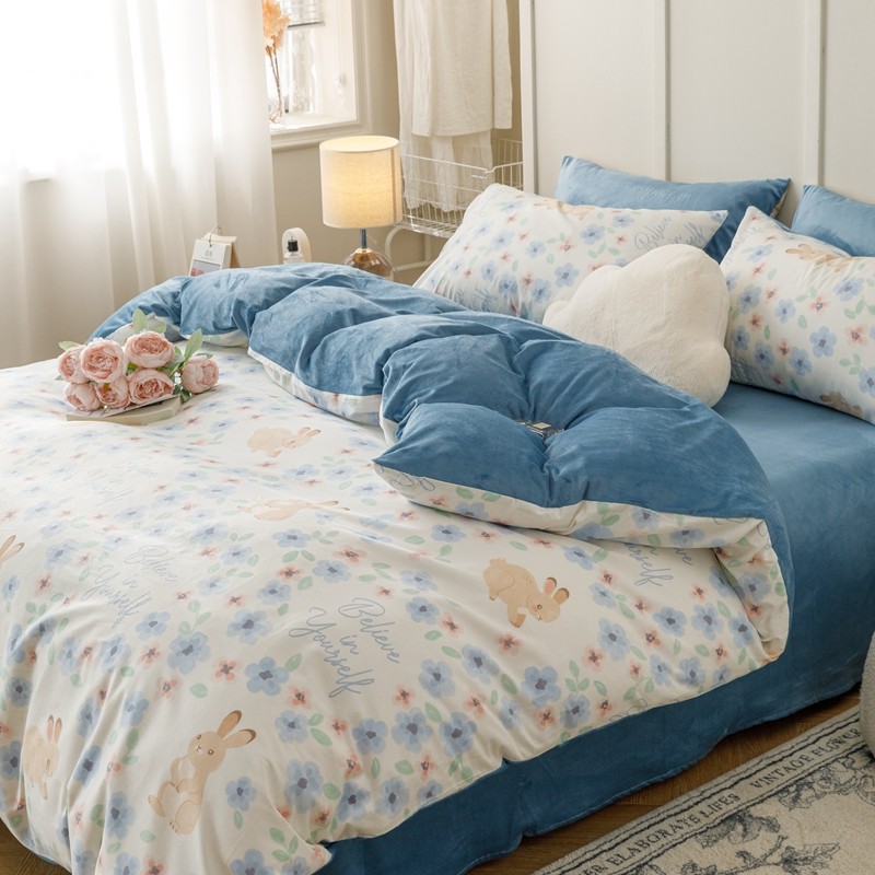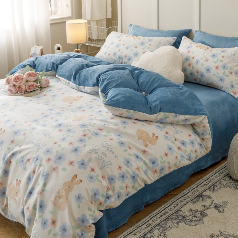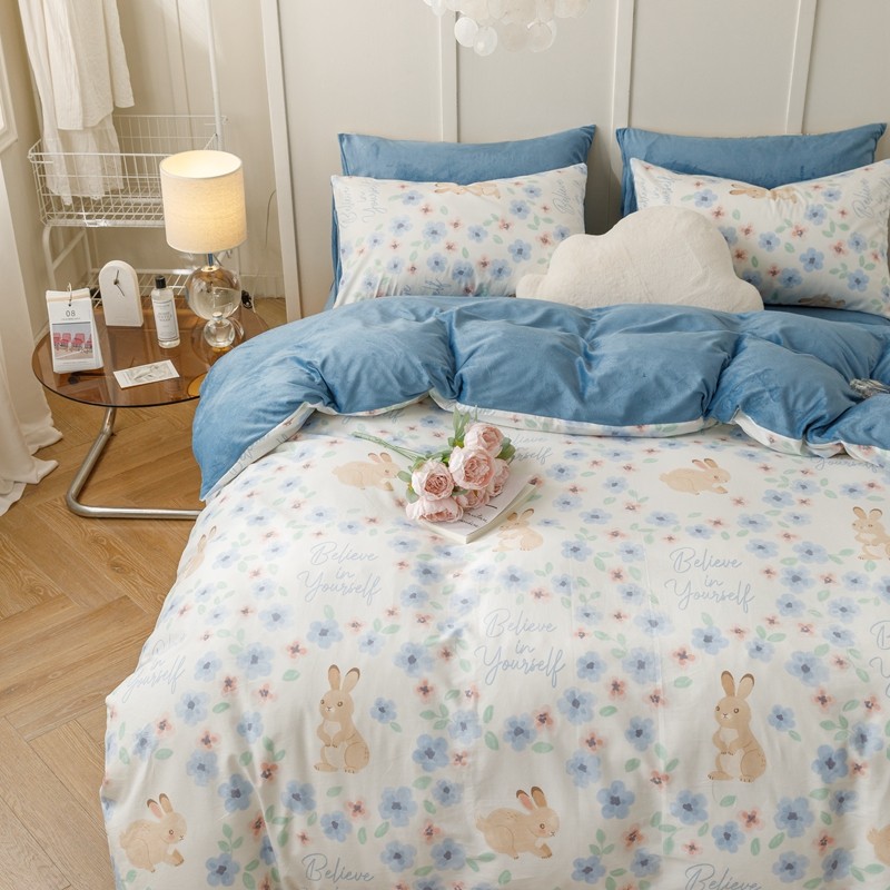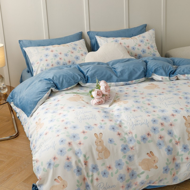 商品名称:珺柔 2022新款印花水晶绒四件套 兰花兔