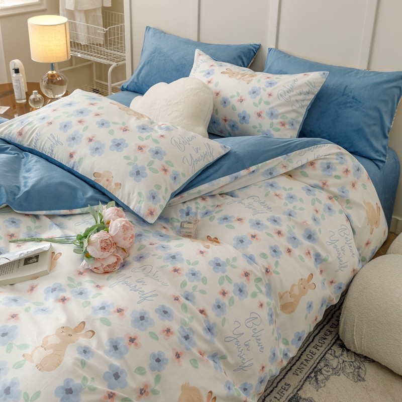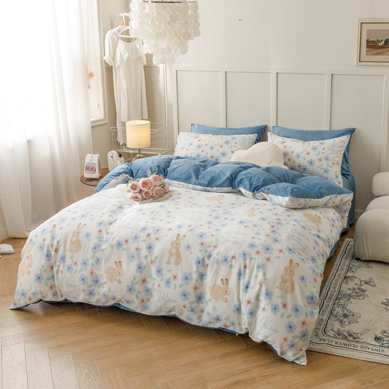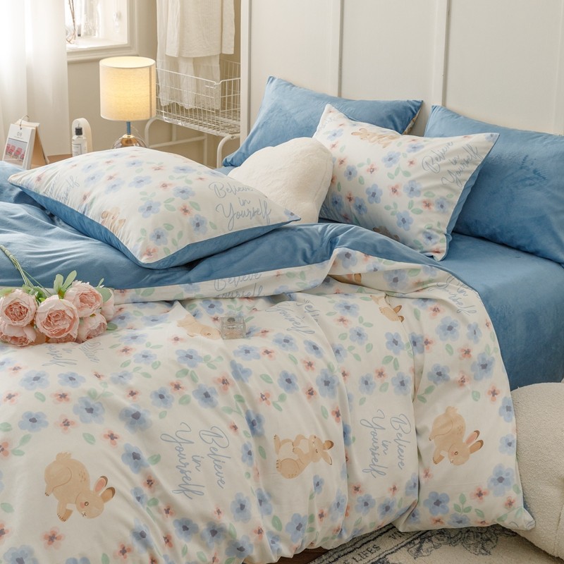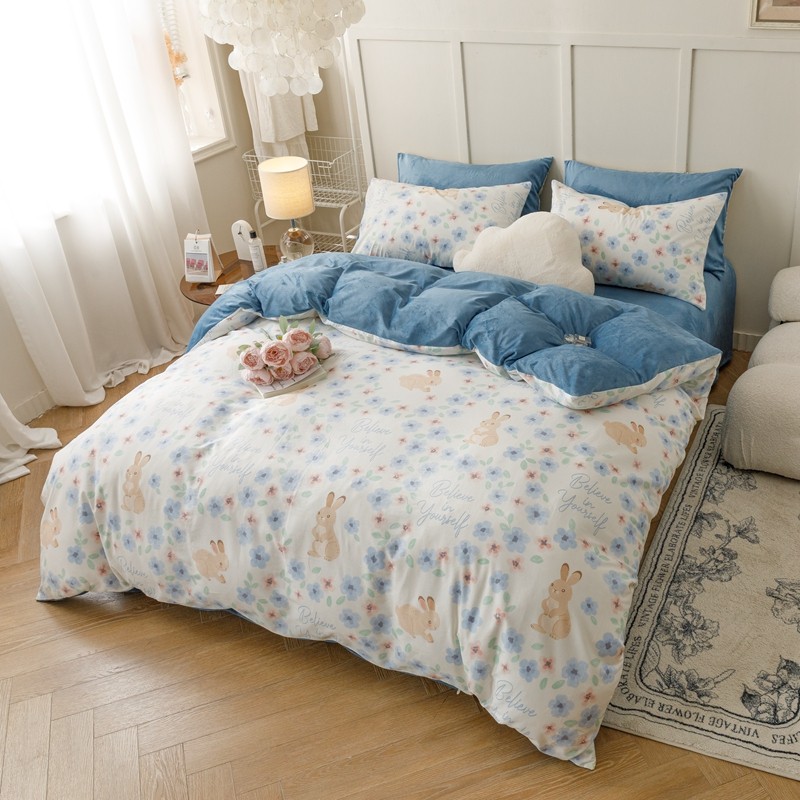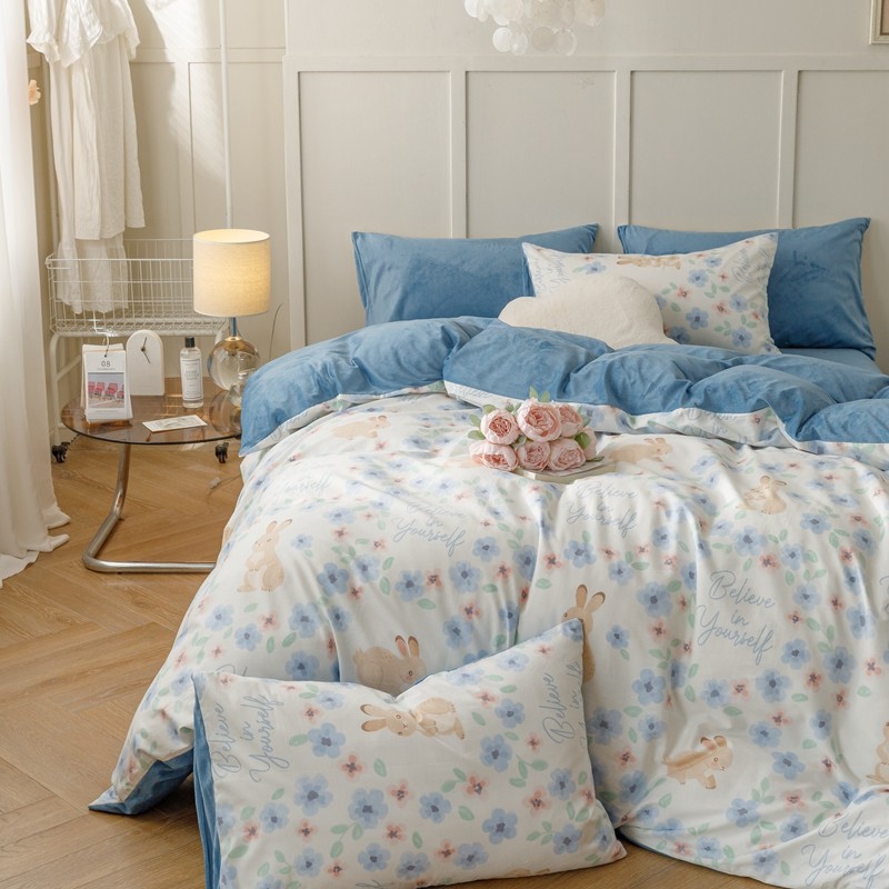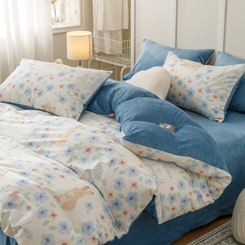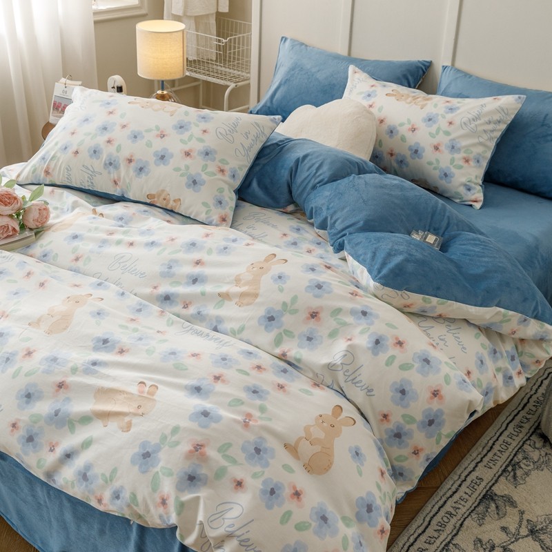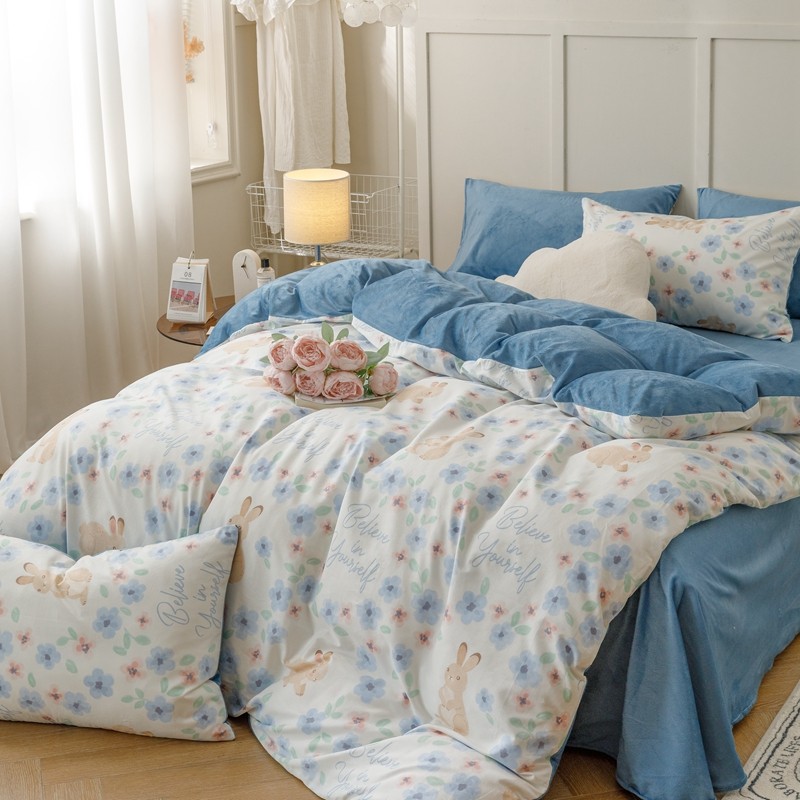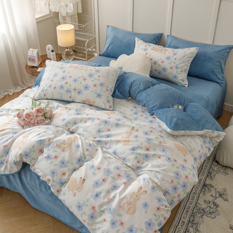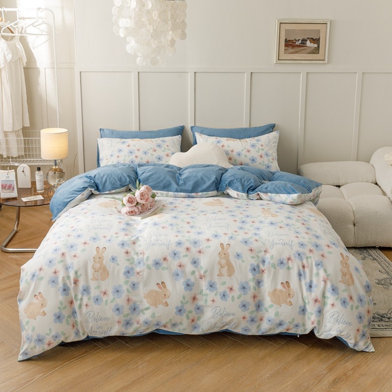 商品名称:珺柔 2022新款印花水晶绒四件套 兰花兔