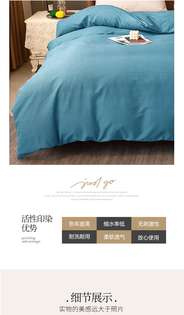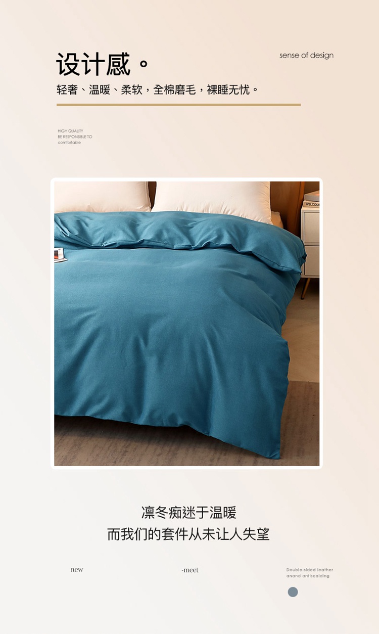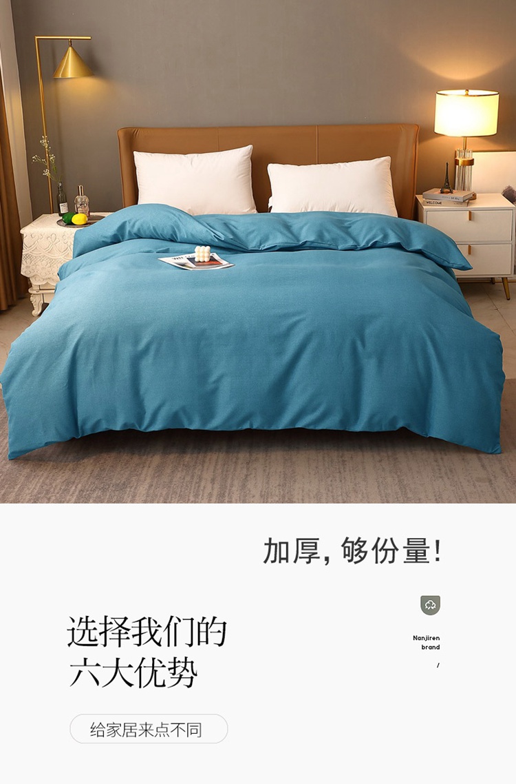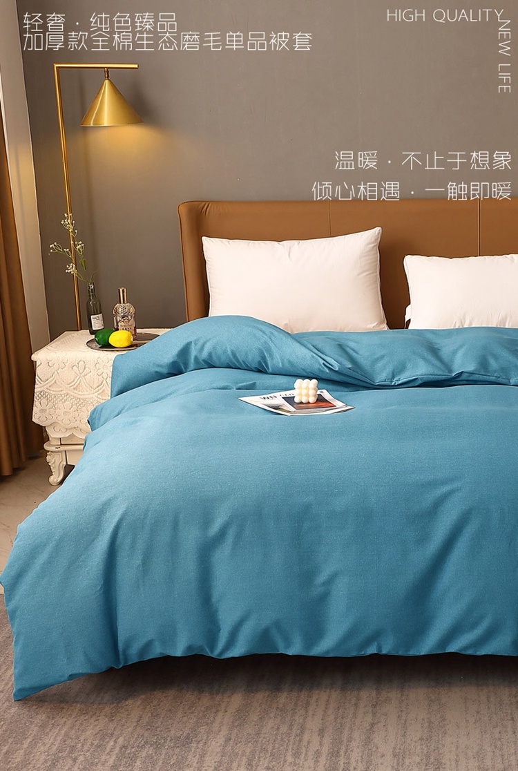 晶缦家纺 2022新款加厚全棉纯色生态磨毛多规格单被套 纯依-湖蓝