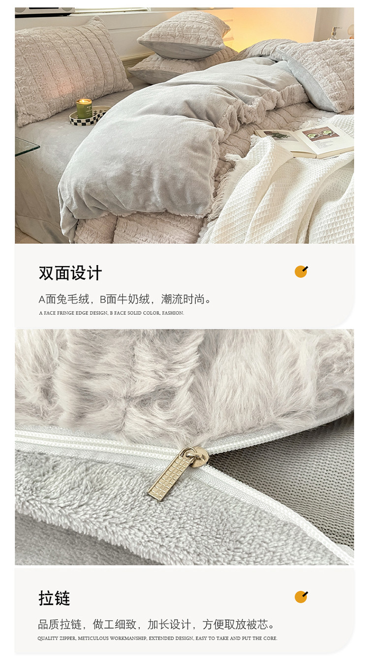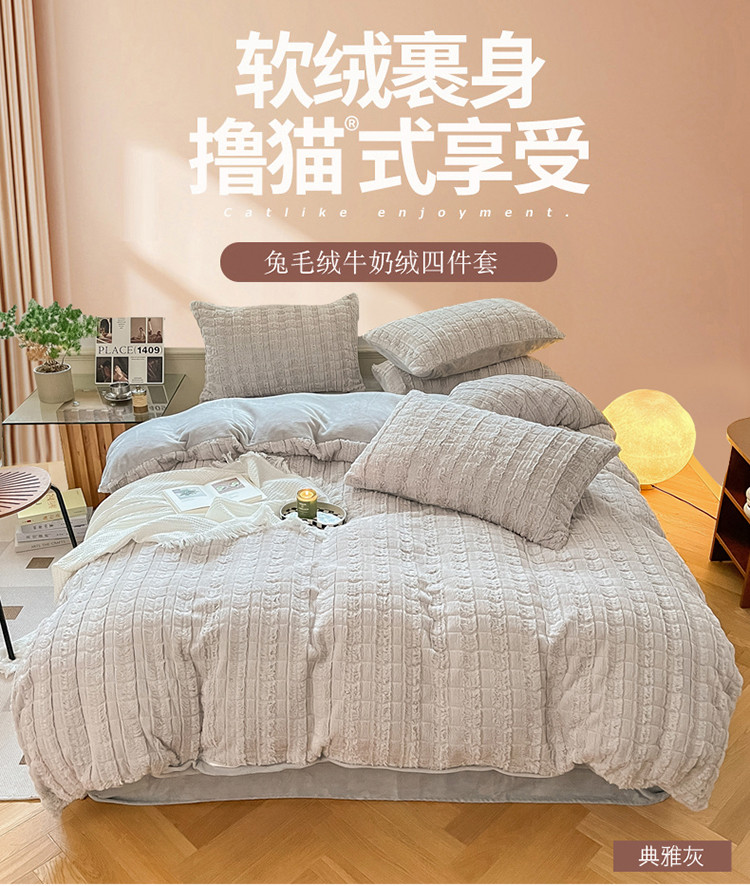 金爱家 2023新款全消光牛奶绒獭兔毛绒四件套 兔毛绒-典雅灰