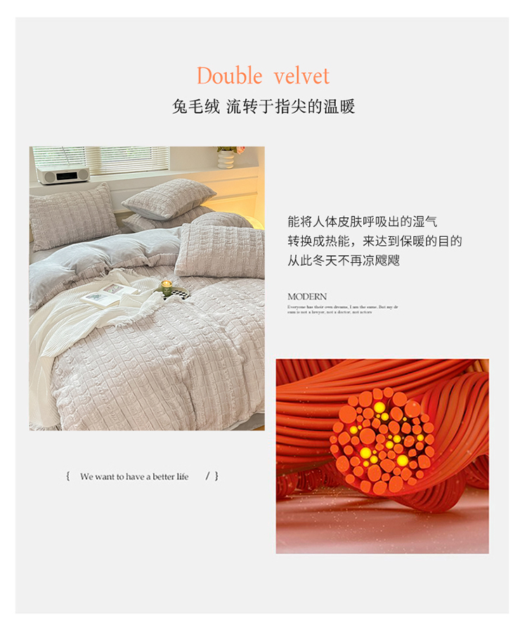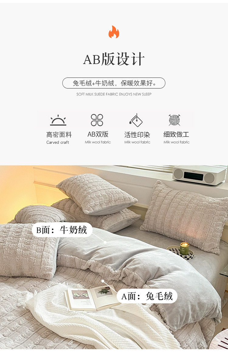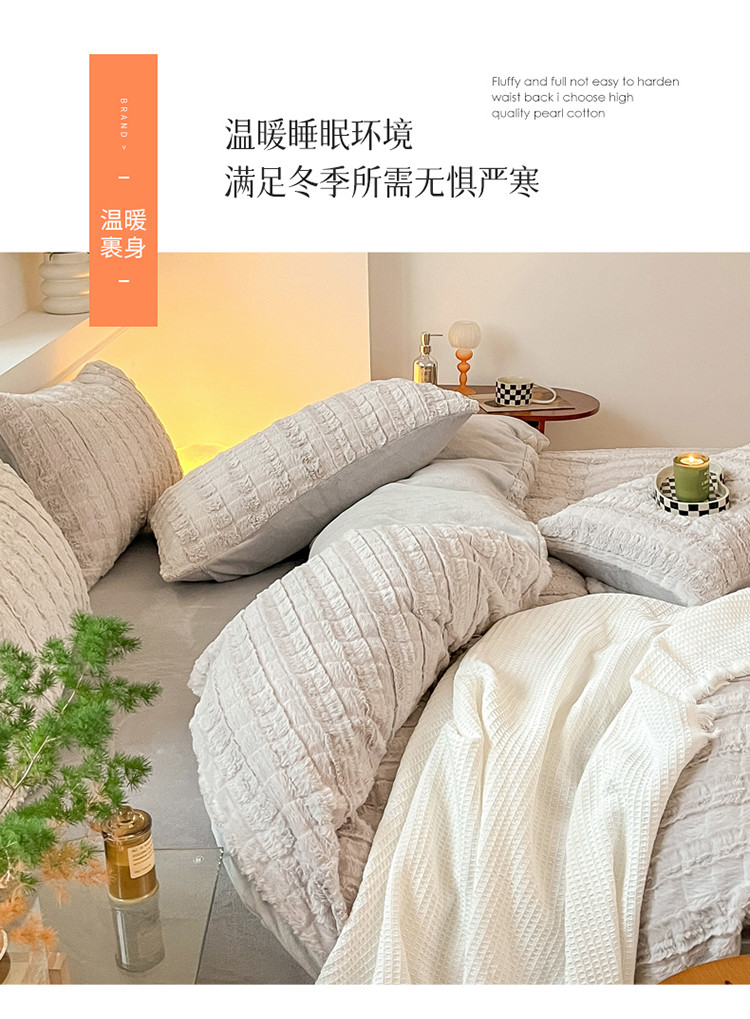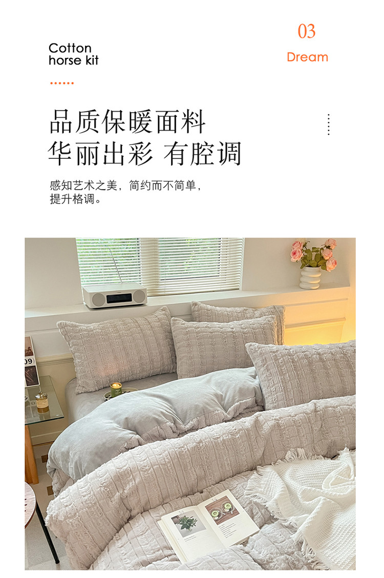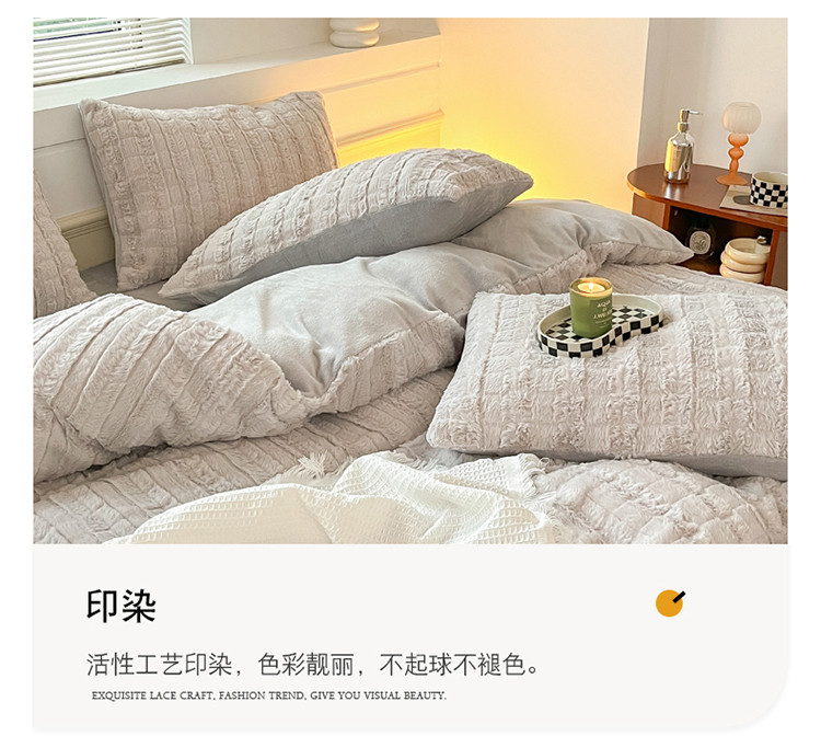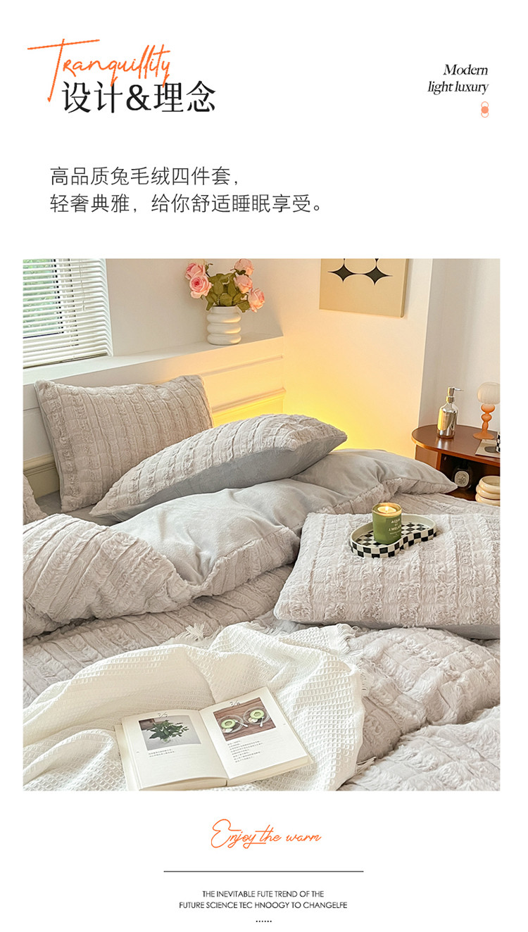 商品名称:金爱家 2023新款全消光牛奶绒獭兔毛绒四件套 兔毛绒-典雅灰