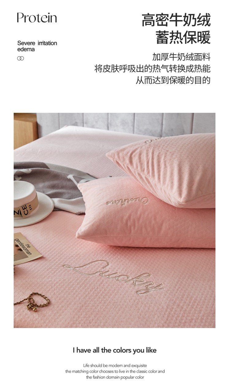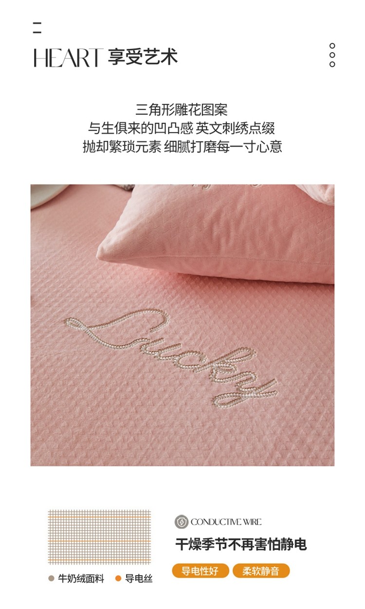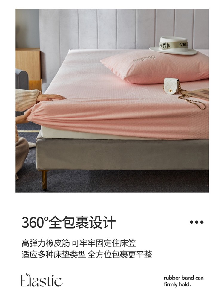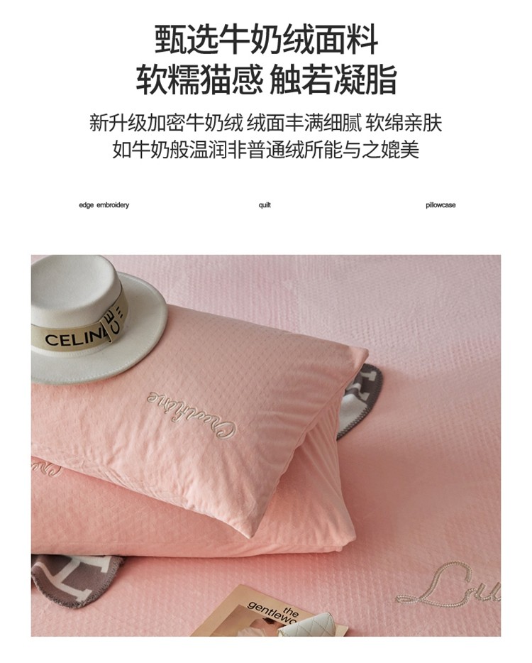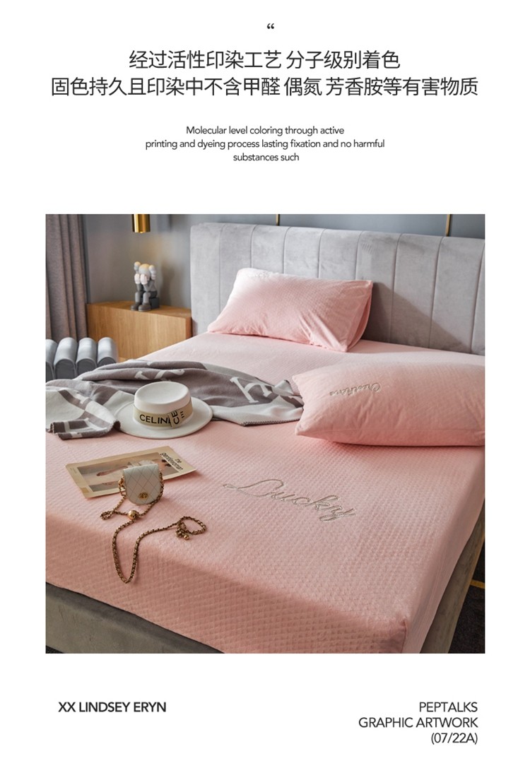 商品名称:铭动 2023新款牛奶绒三角形字母床笠 香草粉