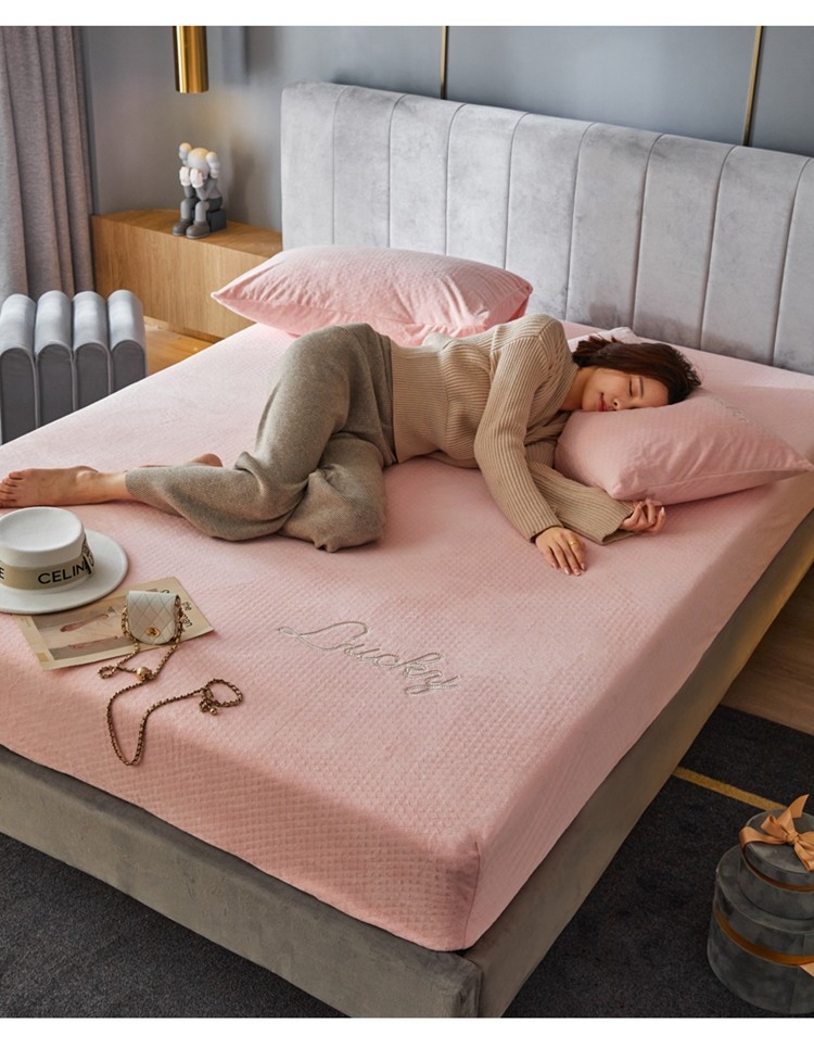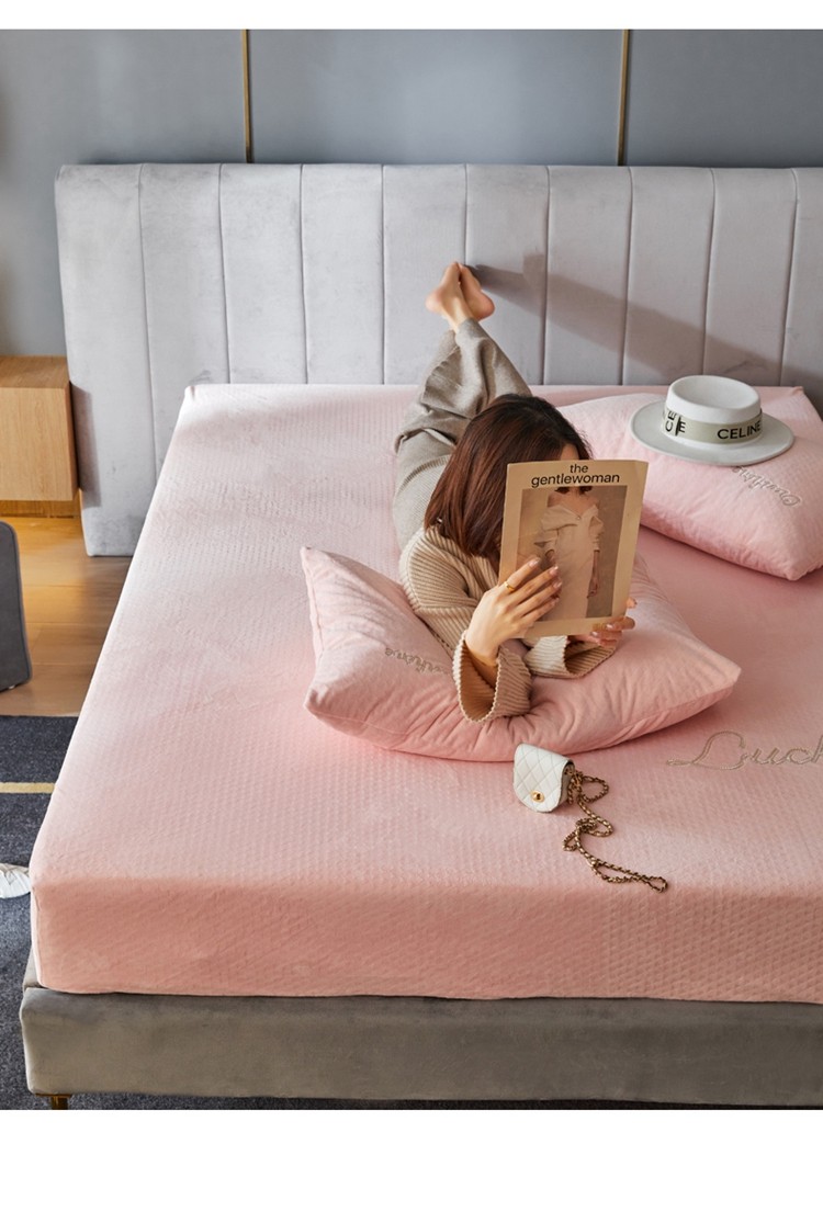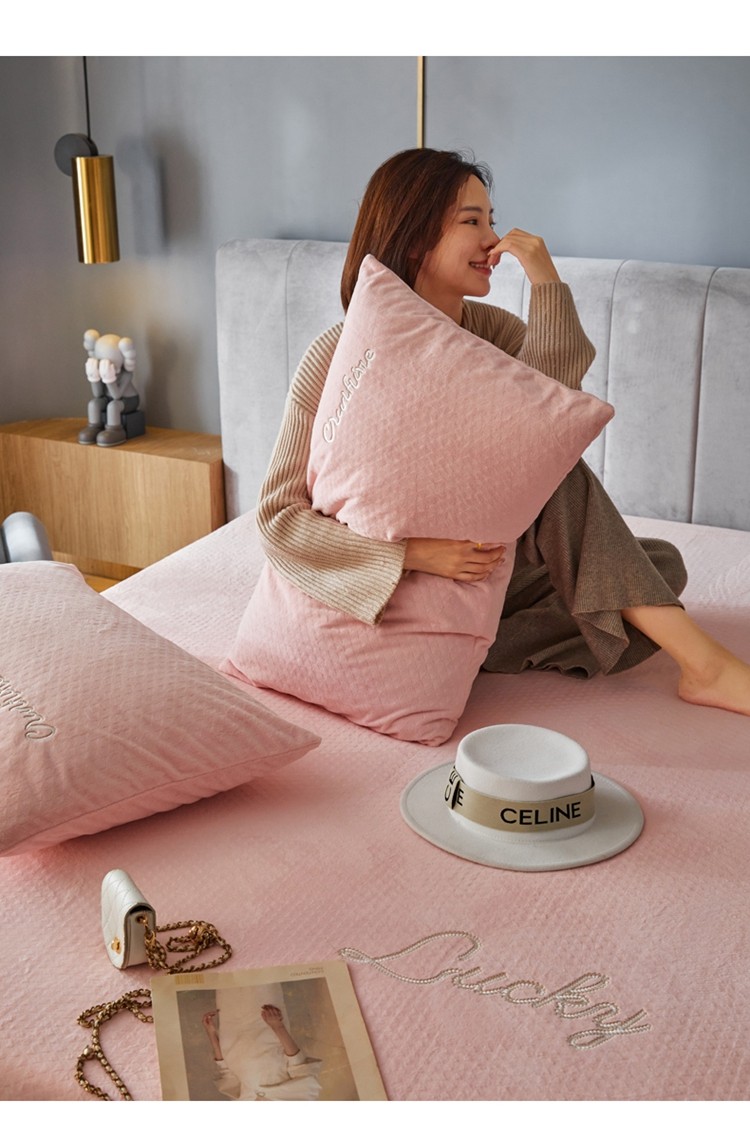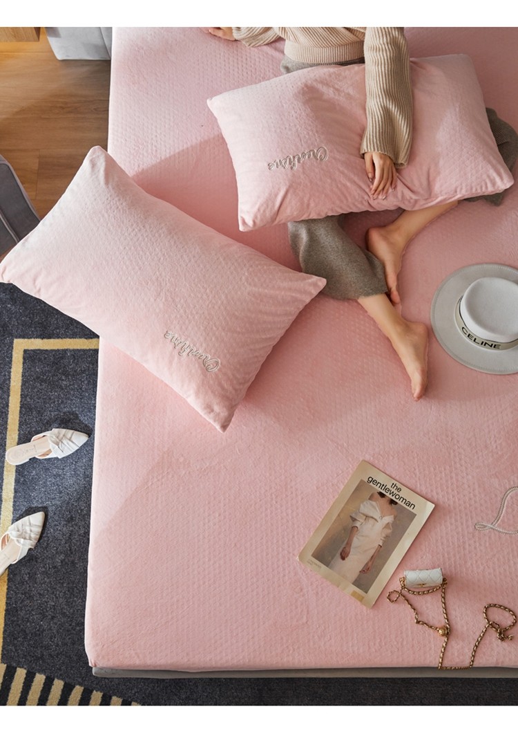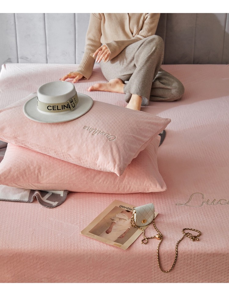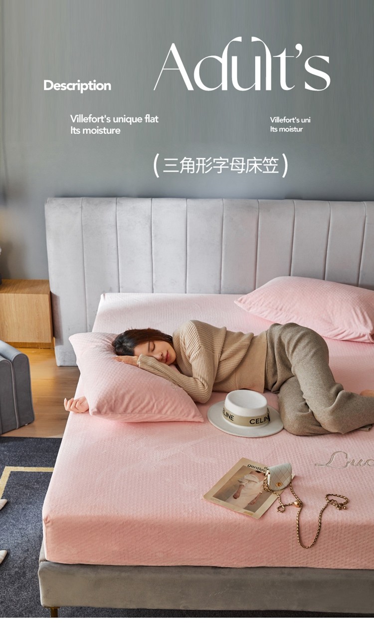 铭动 2023新款牛奶绒三角形字母床笠 香草粉