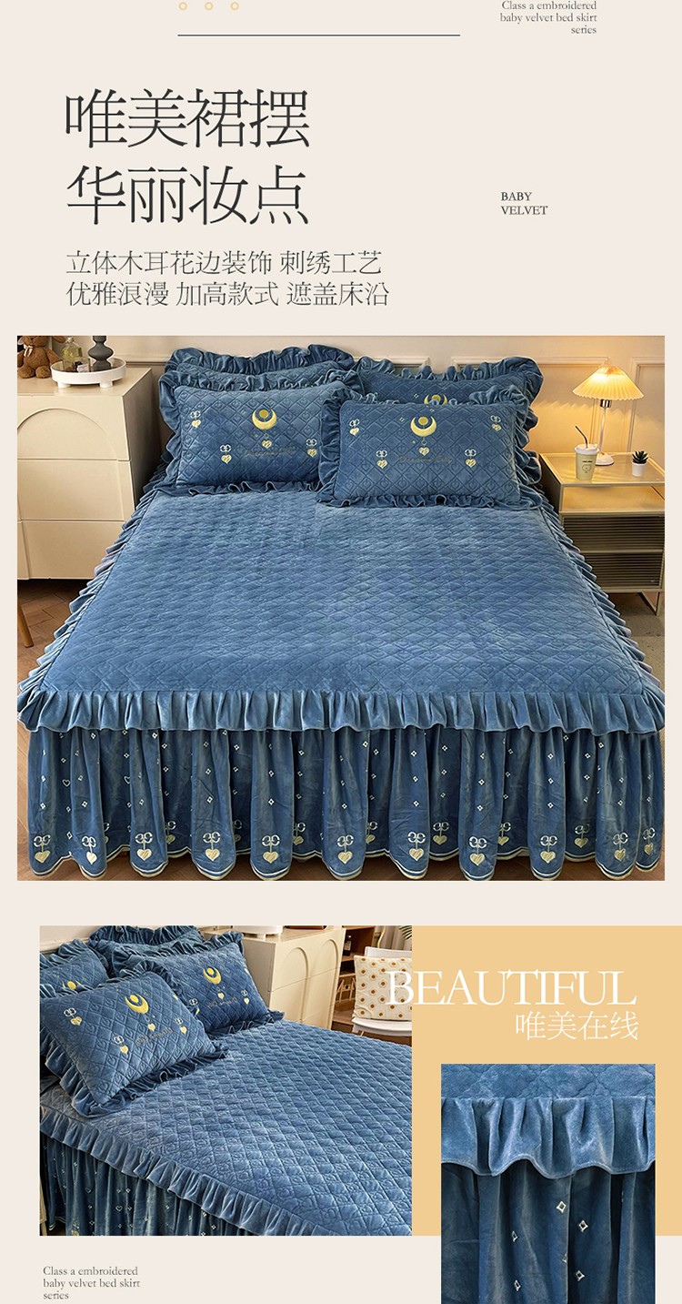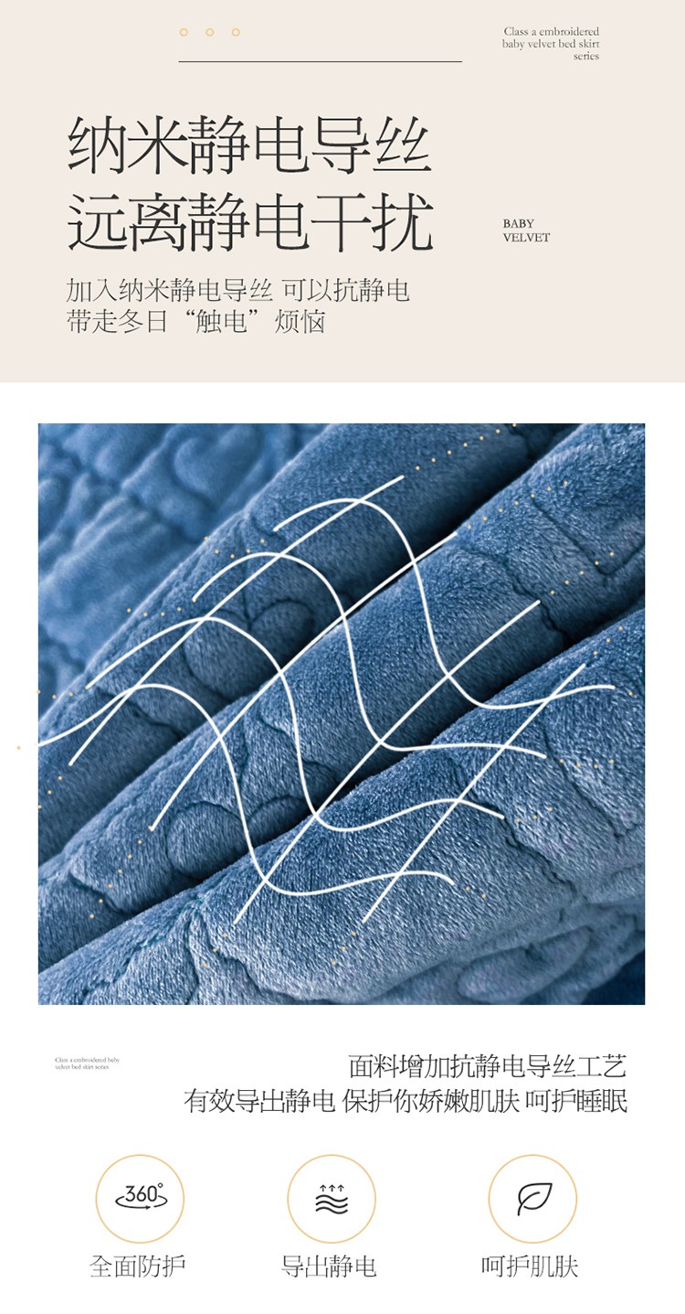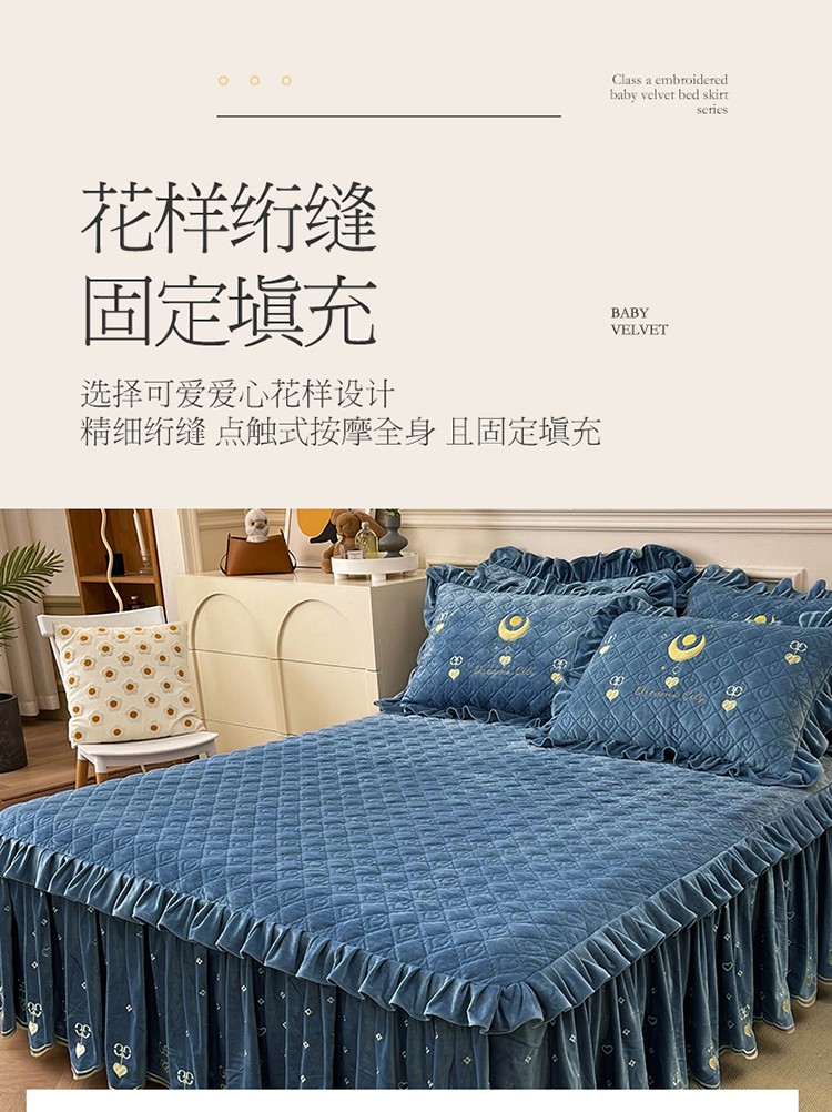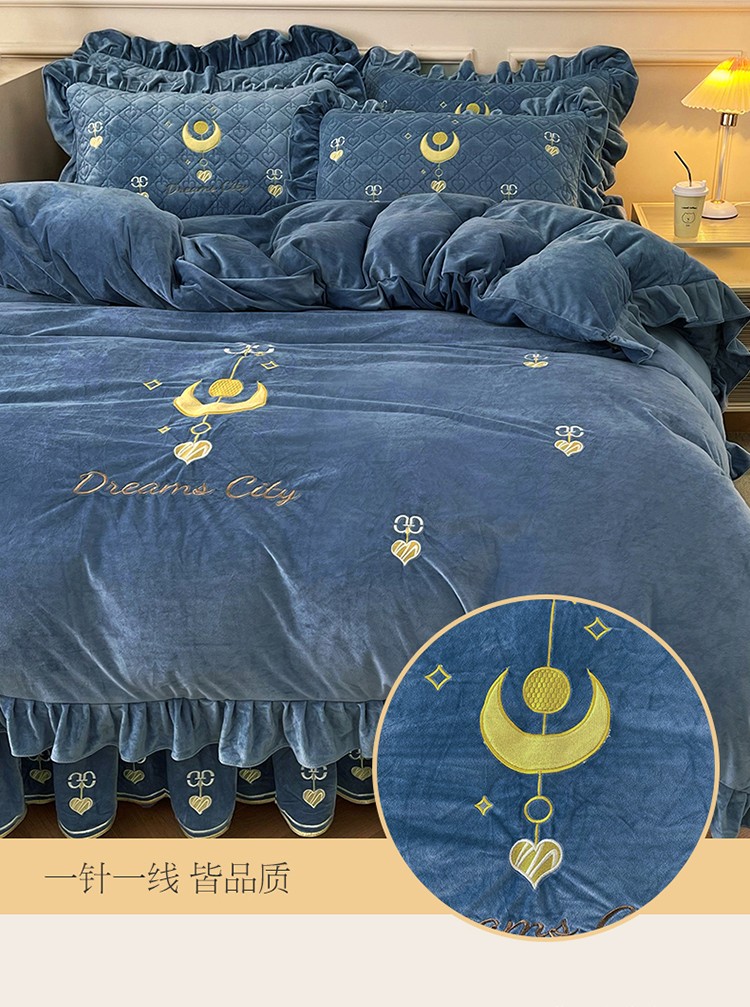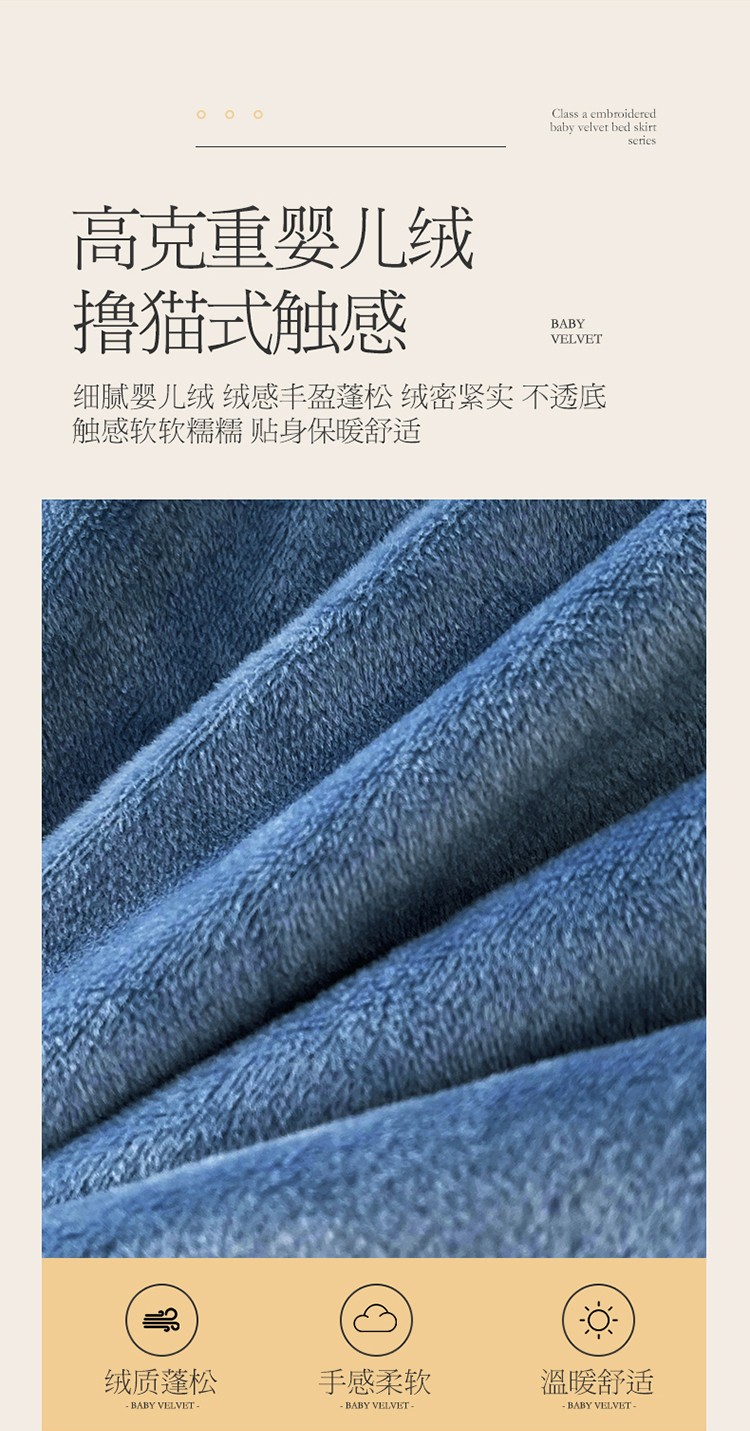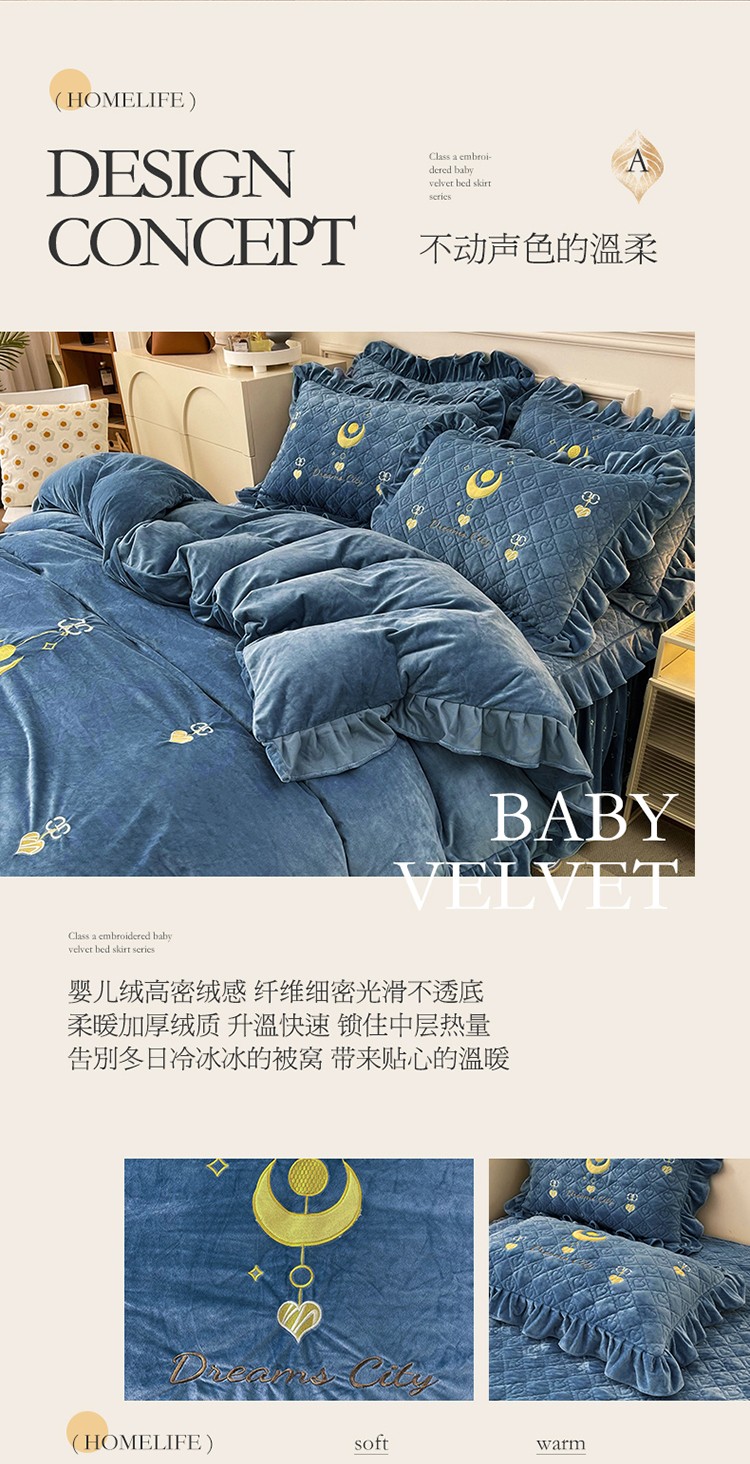 当前位置: 91家纺网 > 商品网购 > 床品套件 > 四件套 > 宝宝绒四件套 > 宜凡家纺 2022新款A类婴儿绒床裙星悦系列四件套 星悦-藏蓝