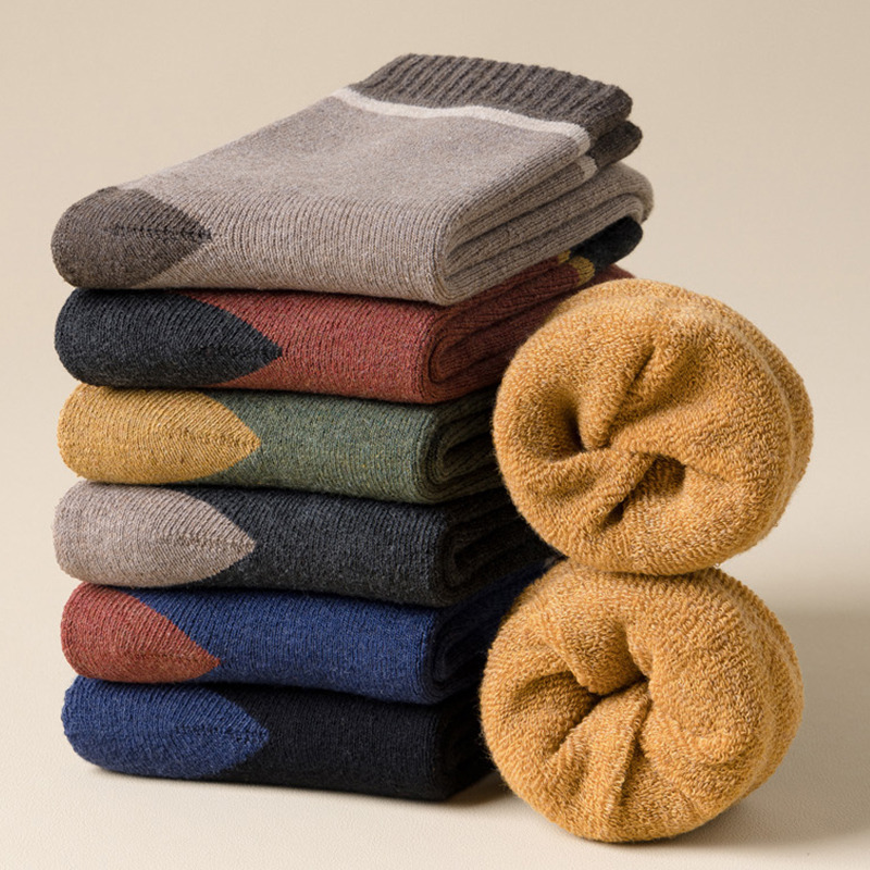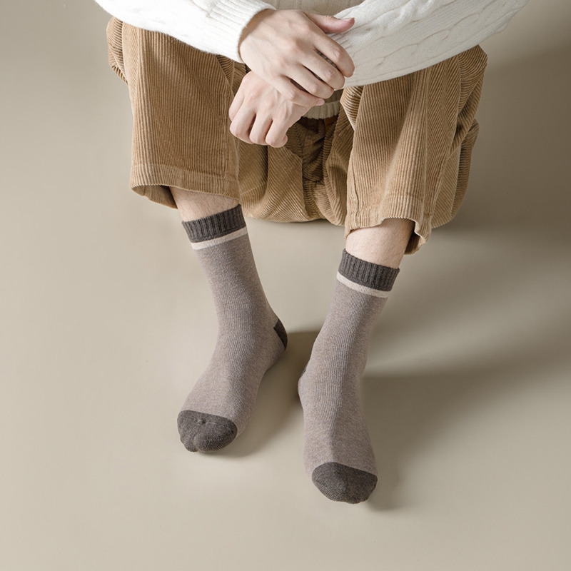 【男士拼色加绒袜】日式无印男士加绒中筒袜良品拼色秋冬保暖加绒加厚男袜子