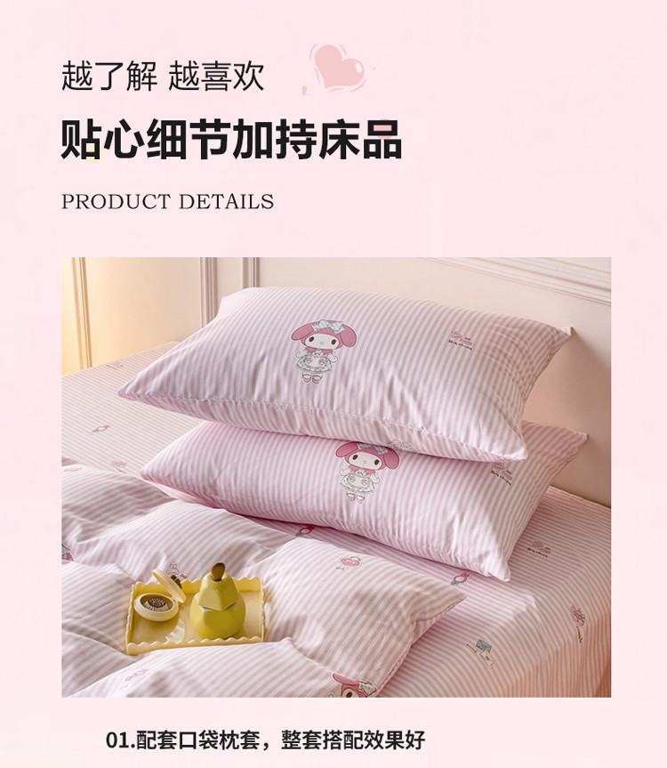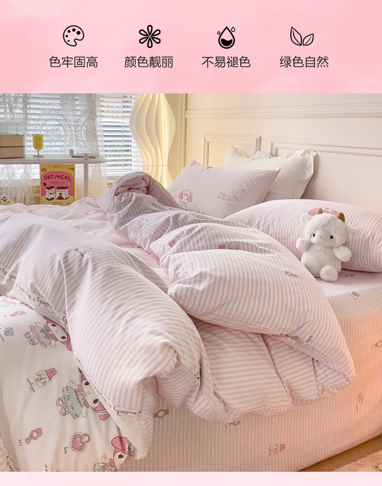 (总) 全棉粉色粉嫩条纹美乐蒂四件套床单被套纯棉三4件套,粉色甜心