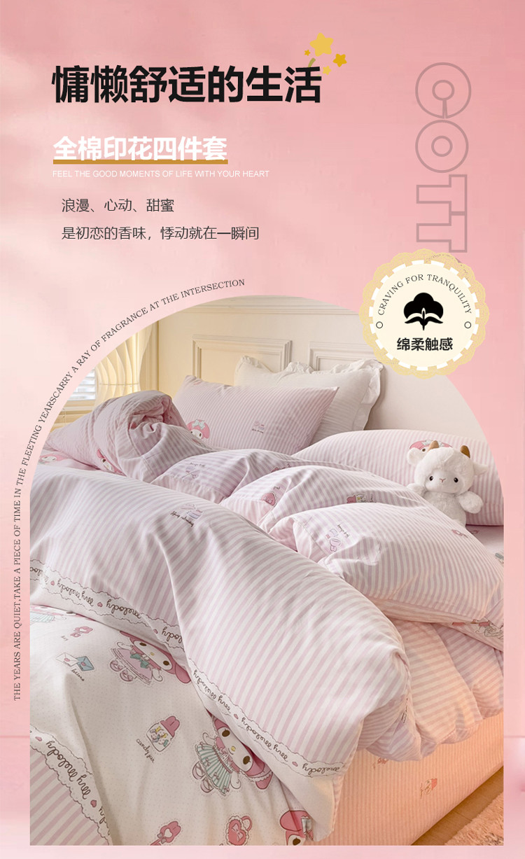 (总)感遇家纺 2025新款小清新甜系全棉四件套,百丽兔,波点小女孩,点点小狗,复古樱桃,格子草莓,格子樱桃,花间牧歌,灰条猫咪,奶绿,宁夏,森林小熊猫,甜心波点