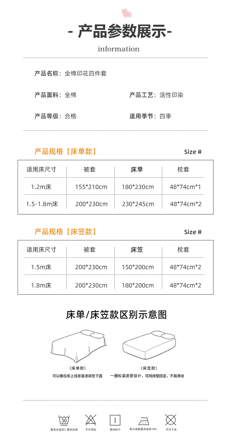 商品名称:感遇2022新款全棉印花四件套系列 粉色甜心