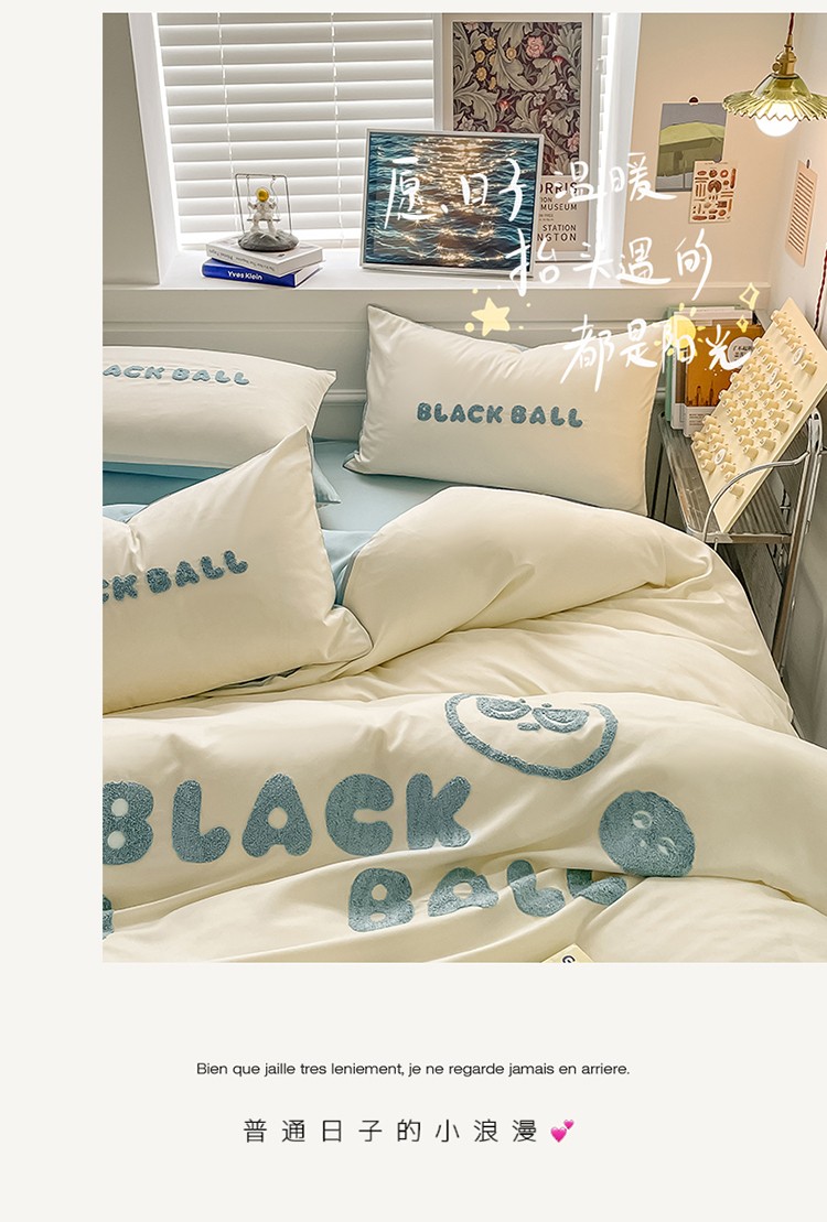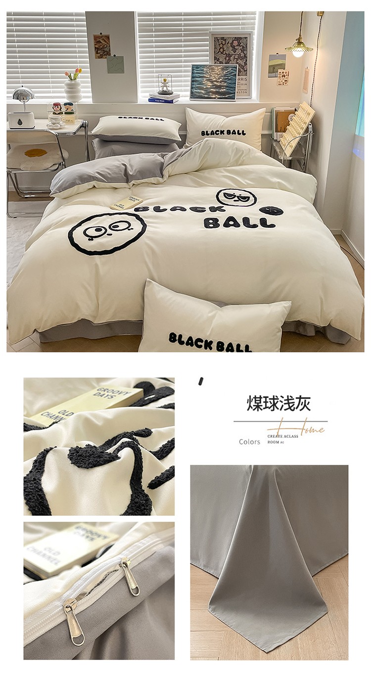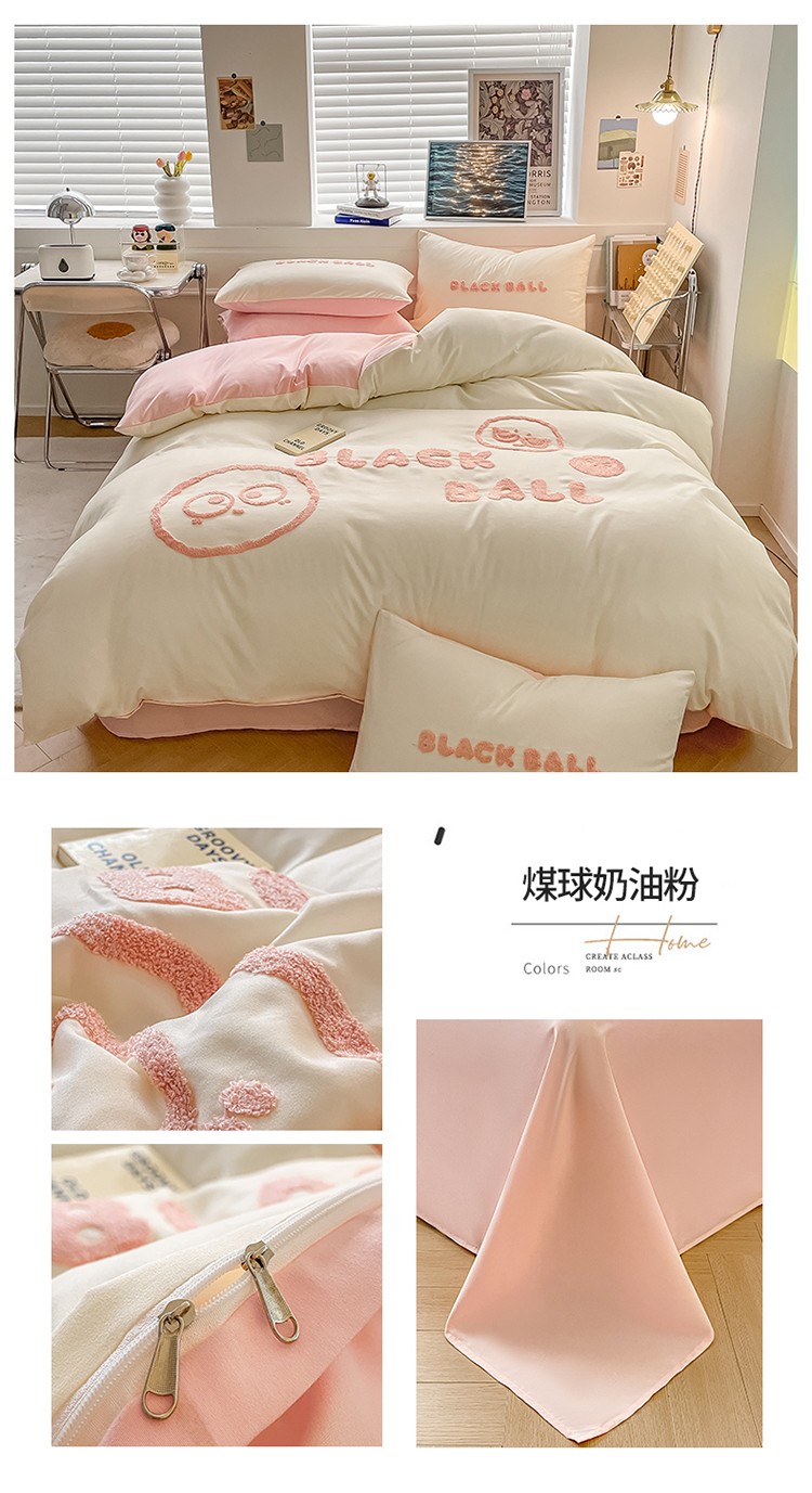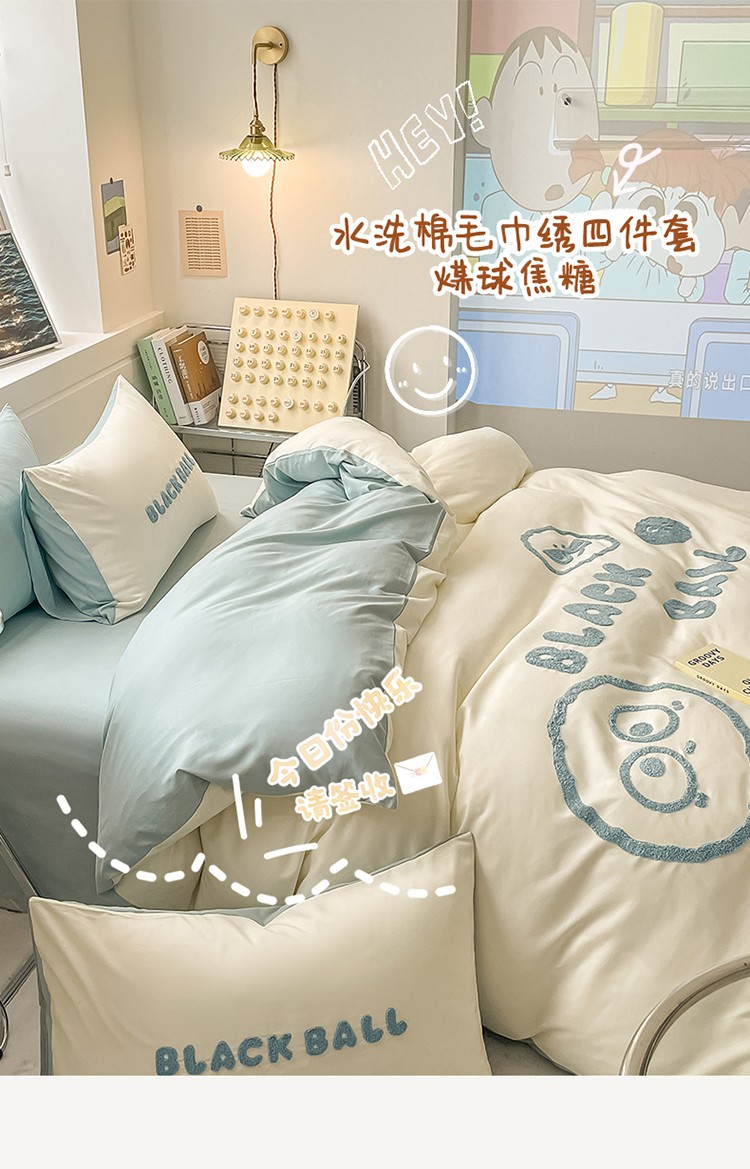 (总)眠帛家纺 2023新款水洗棉毛巾绣四件套煤球系列