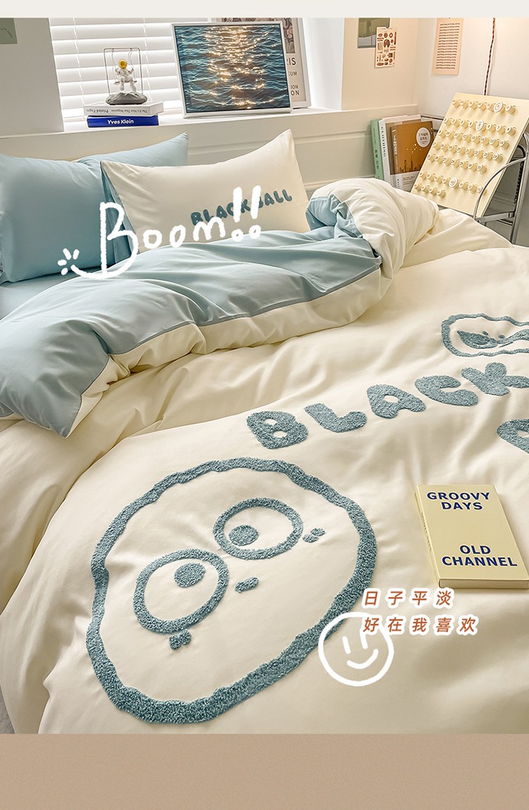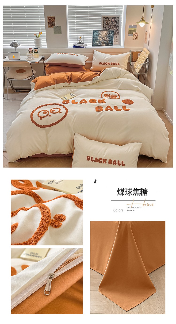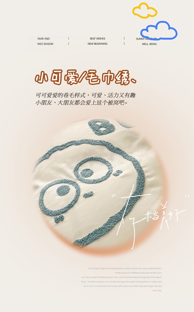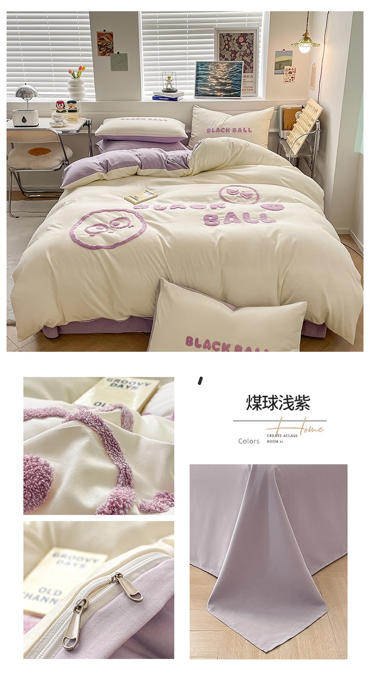 (总)眠帛家纺 2023新款水洗棉毛巾绣四件套煤球系列