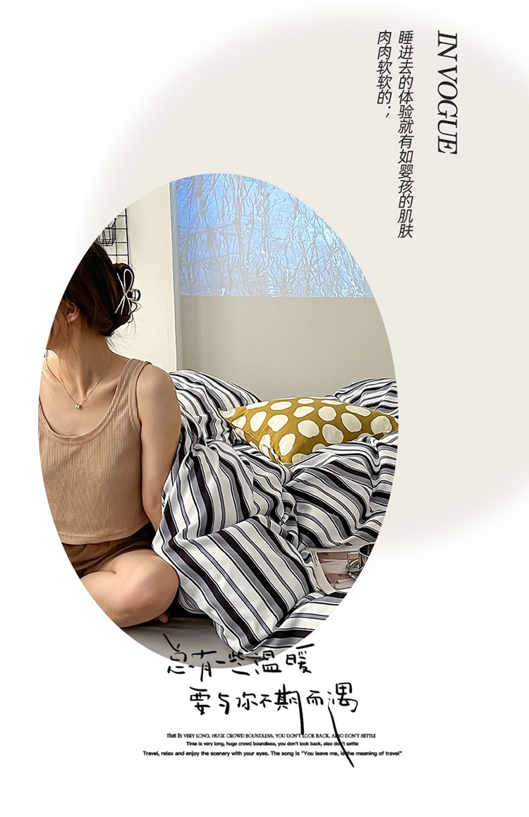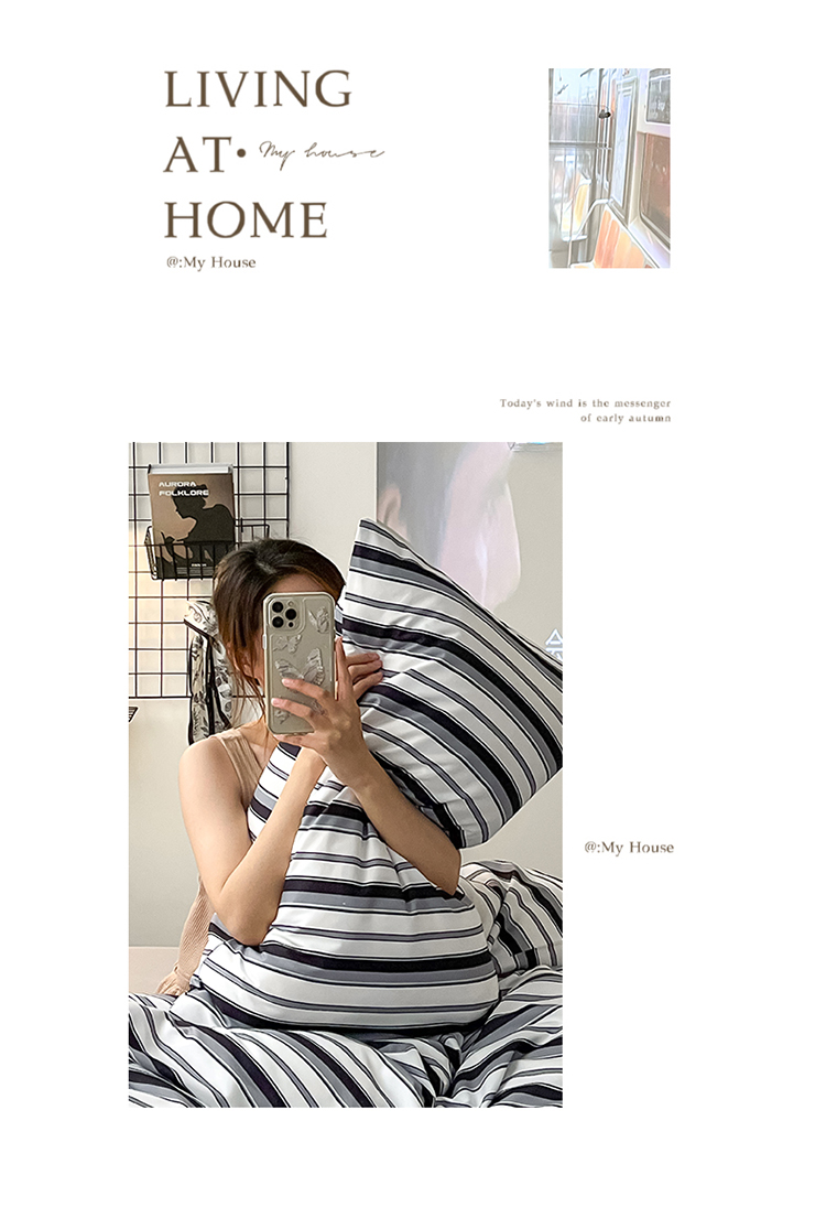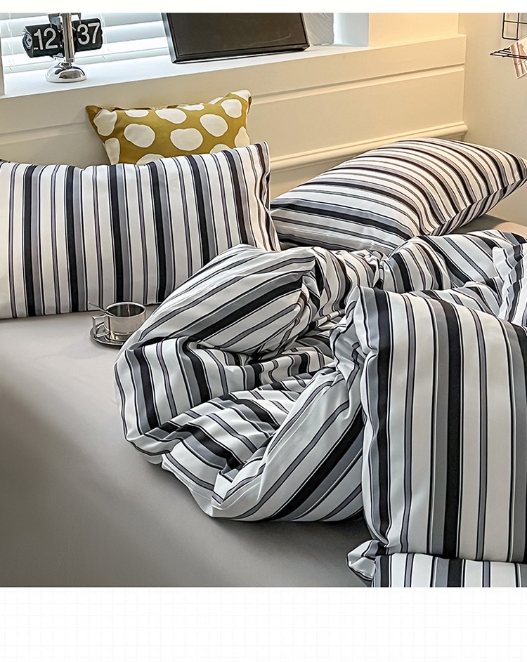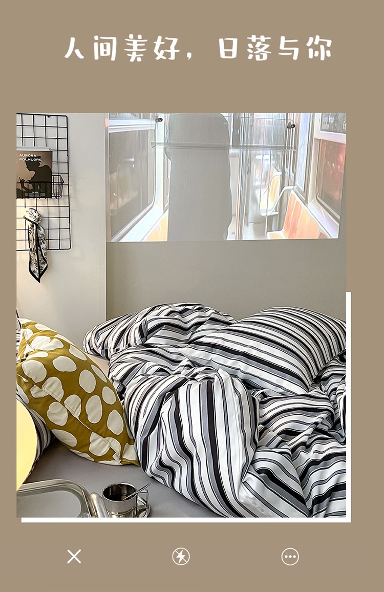(总)眠帛家纺 2023新款极简色织水洗棉印花四件套