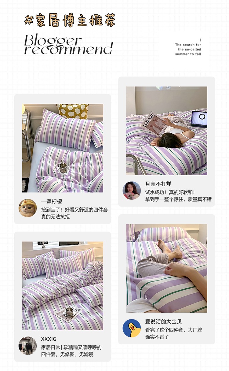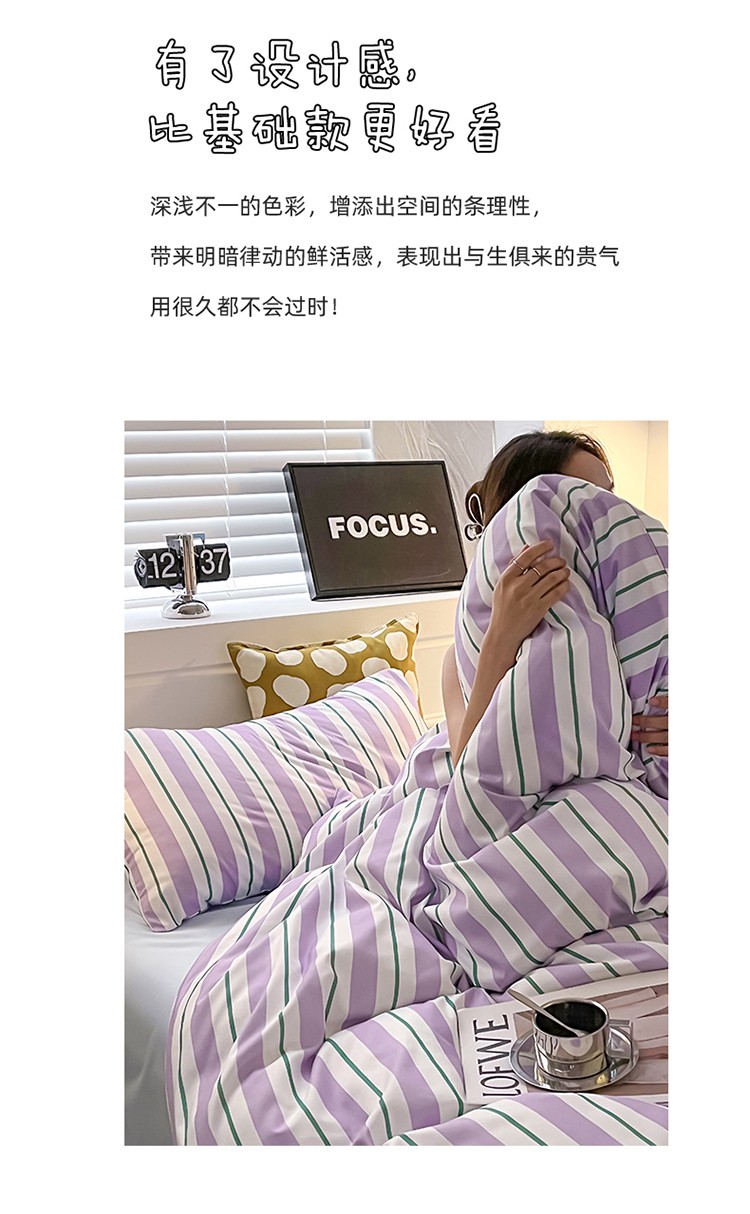 当前位置: 91家纺网 > 商品网购 > 床品套件 > 四件套 > 水洗棉四件套 > 眠帛家纺 2023新款极简色织水洗棉印花四件套 云舒紫
