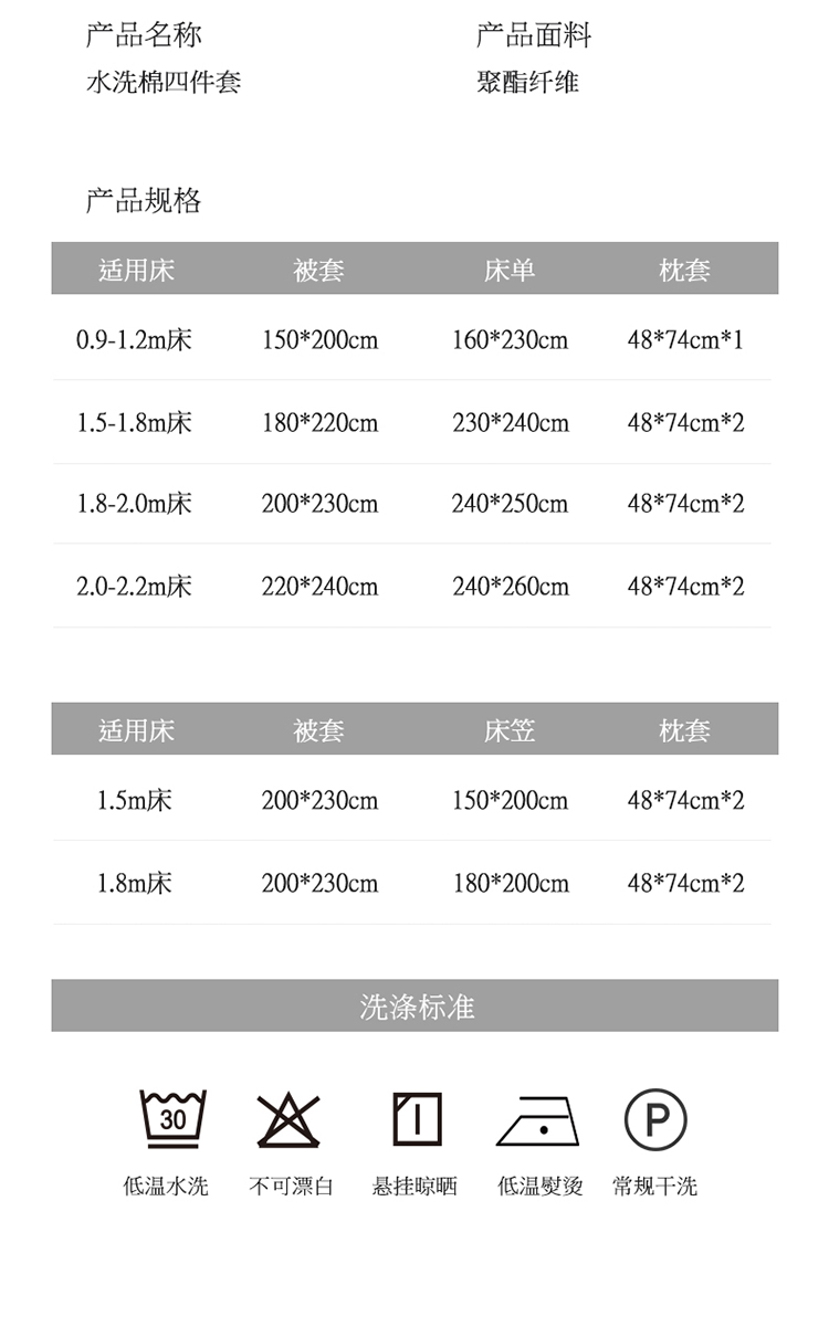 1.8m床单款四件套(被套200*230cm) | ¥48.00 |
