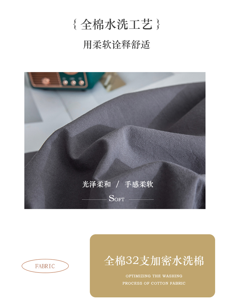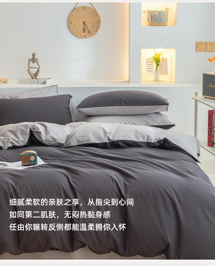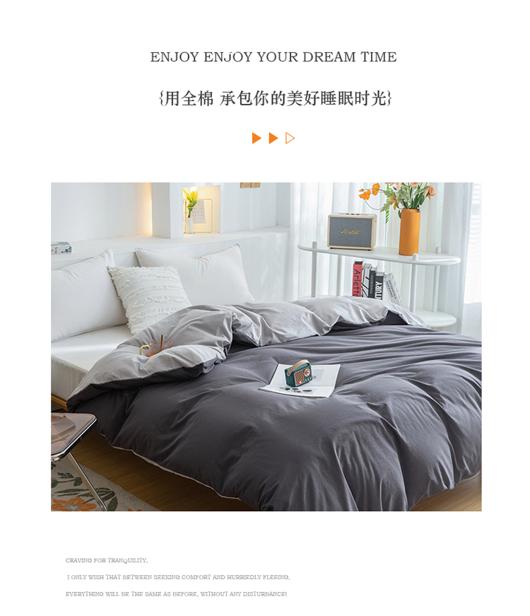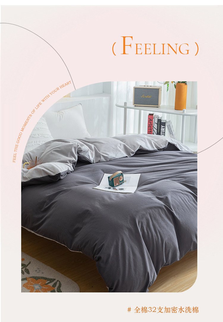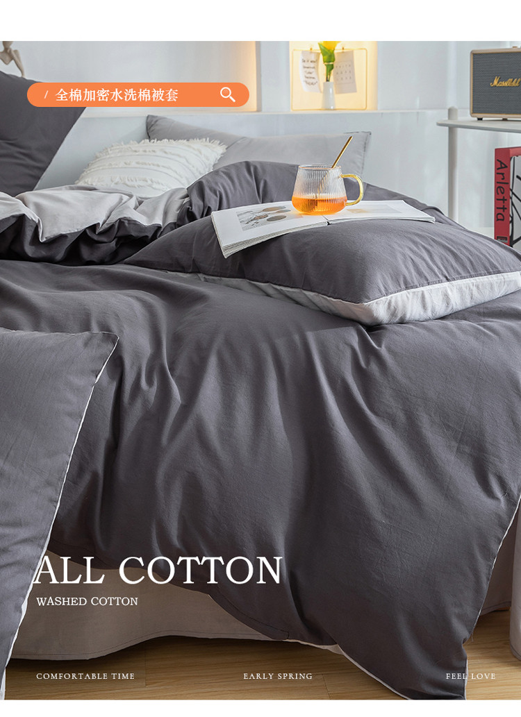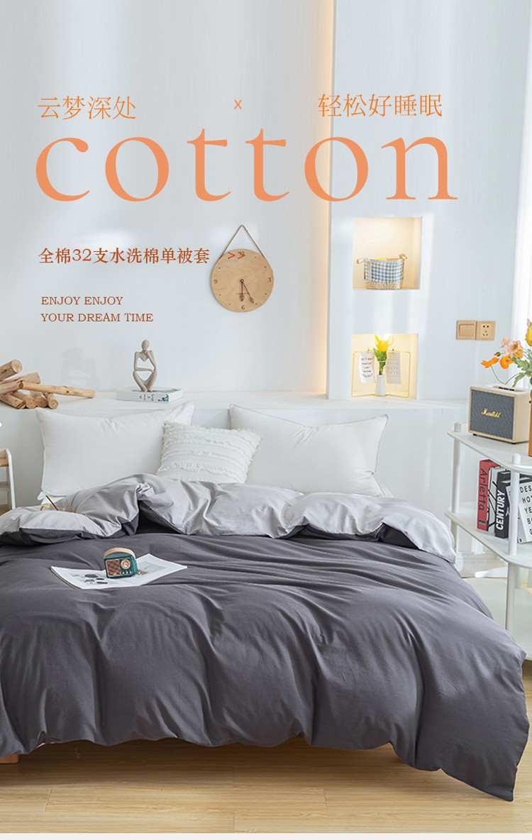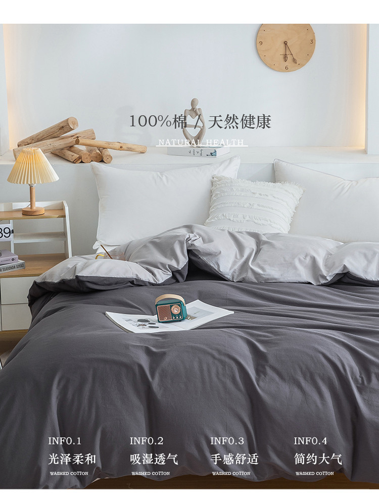 商品名称:柠萌家居 2023新款全棉双拼水洗棉单品单被套 双拼-深灰浅灰