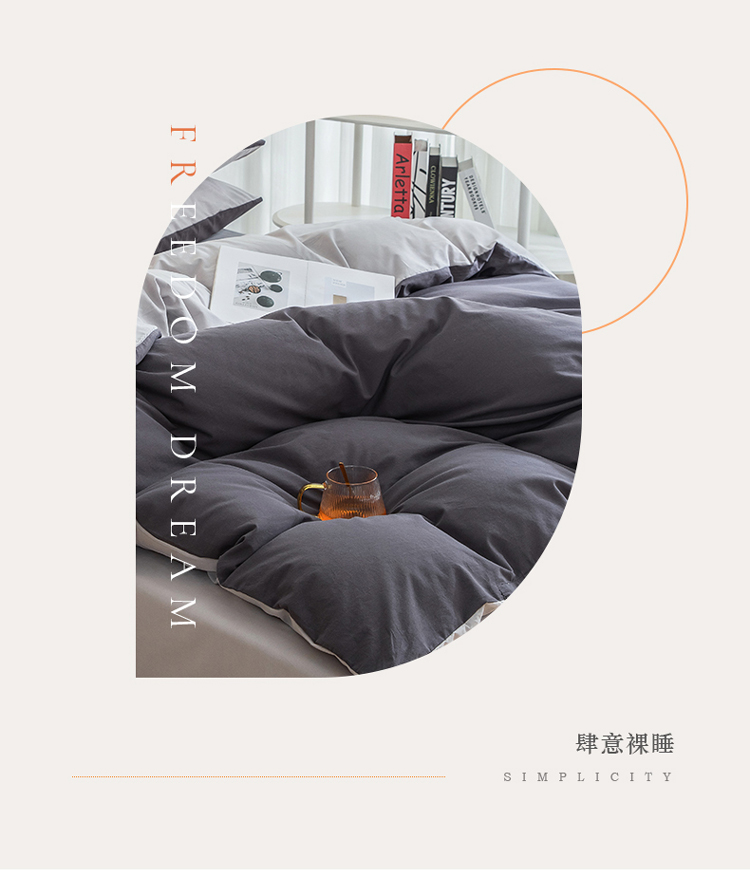 柠萌家居 2023新款全棉双拼水洗棉单品单被套 双拼-深灰浅灰