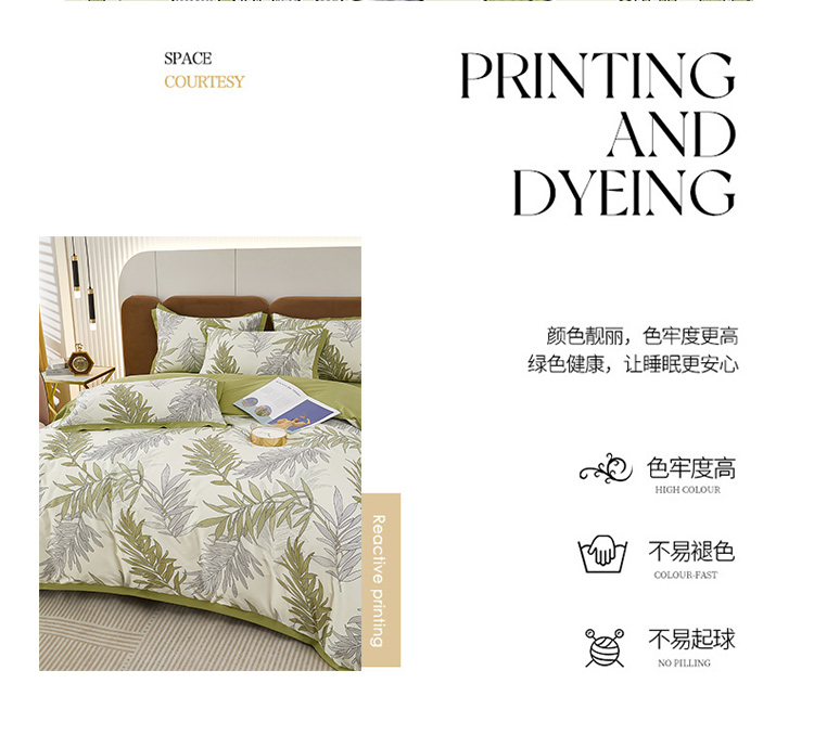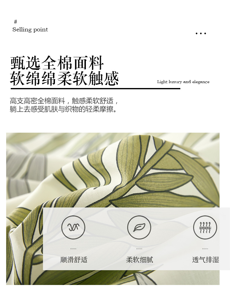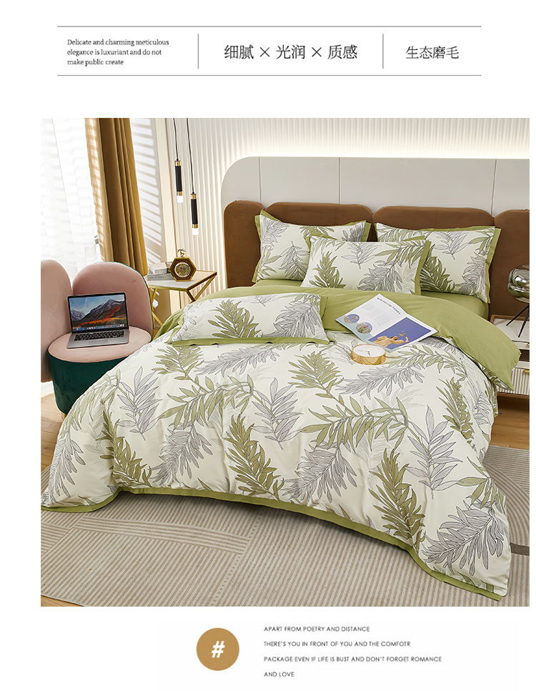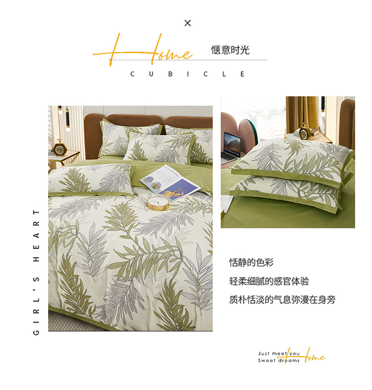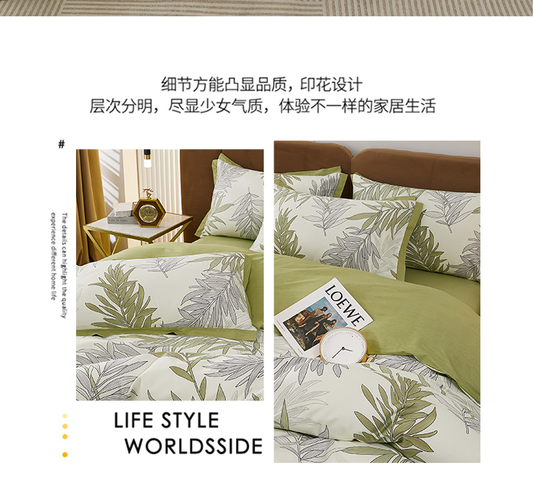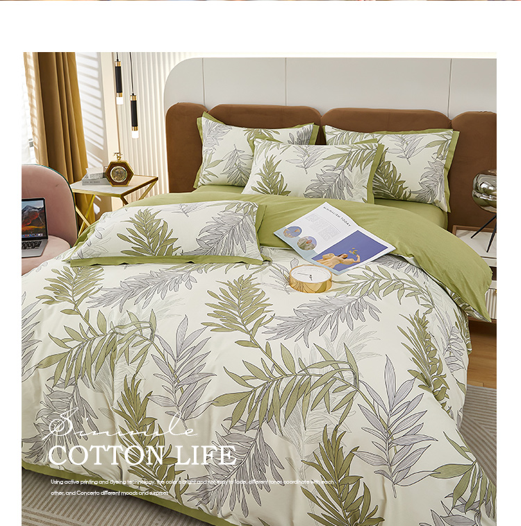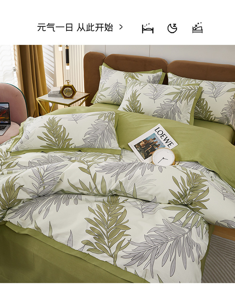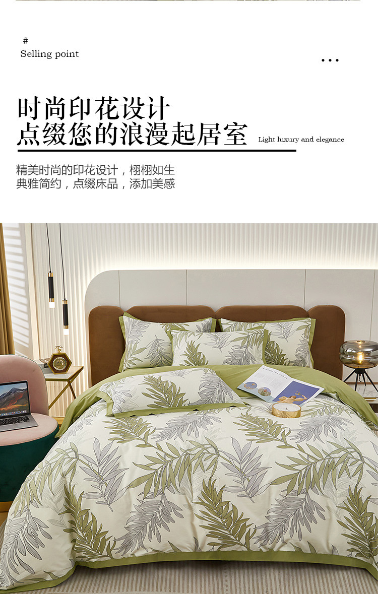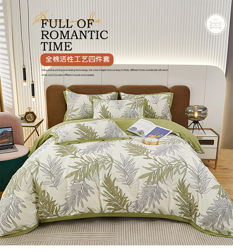 商品名称:雲归梦 新款13372全棉活性工艺款小版印花四件套 流年绿