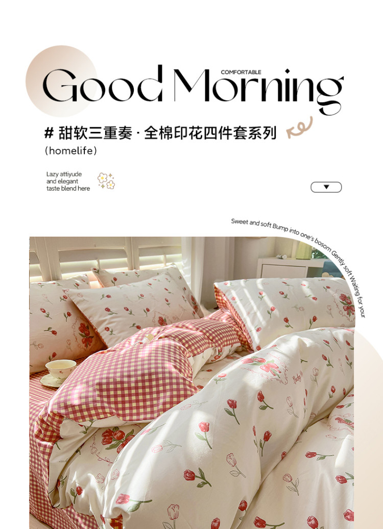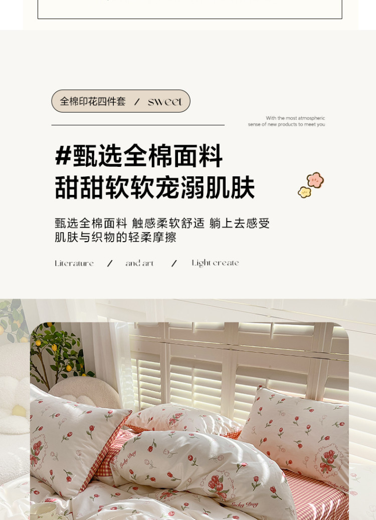 当前位置: 91家纺网 > 商品网购 > 床品套件 > 四件套 > 全棉普通四件套 > 百寐 2024小清新碎花卡通13372全棉四件套纯棉床单床笠款 后花园