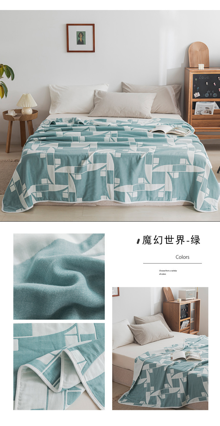 商品名称:朴尔 2023年抽象风格六层纱布毛巾被系列-朴尔经典款常年备货 魔幻世界-绿