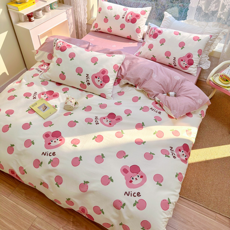 商品名称:沐辰 2023新款13372全棉印花四件套-萌趣系列 桃桃兔