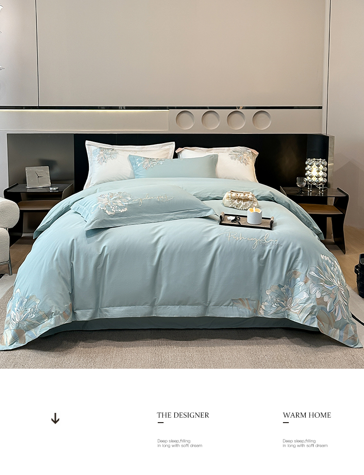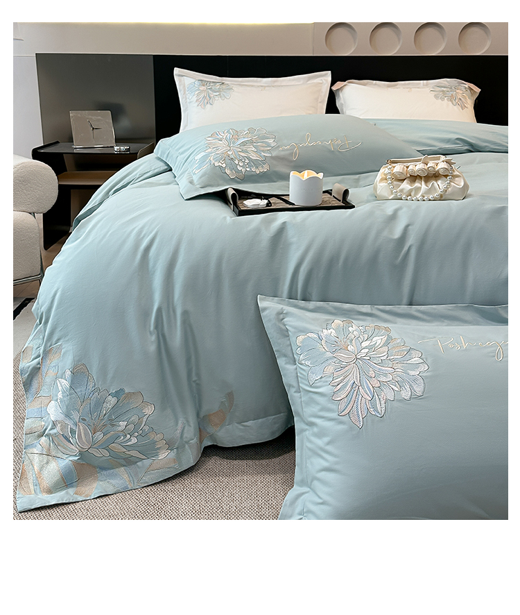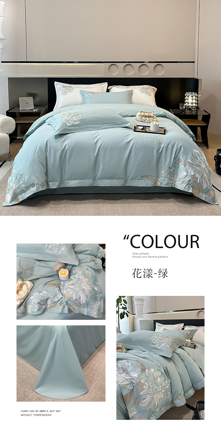 2023新款13372全棉刺绣四件套-花漾 绿