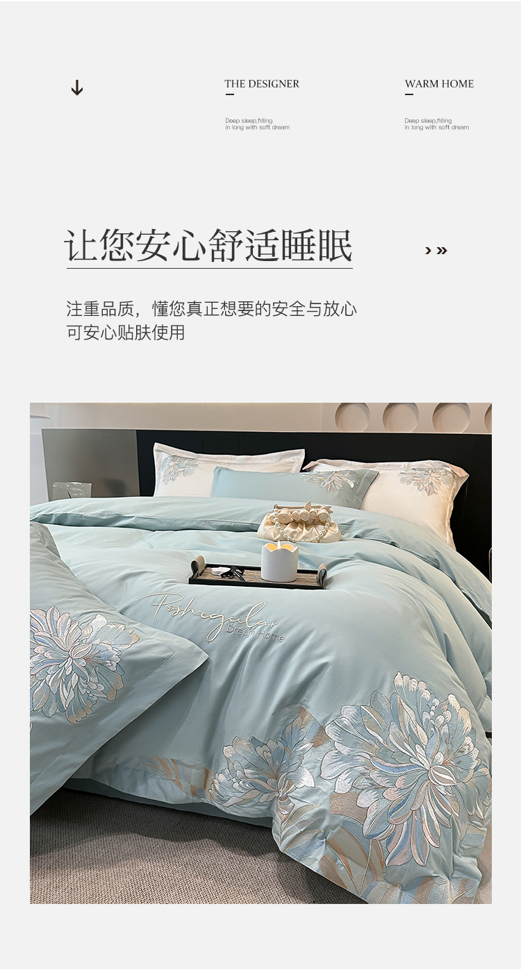 商品名称:2023新款13372全棉刺绣四件套-花漾 绿