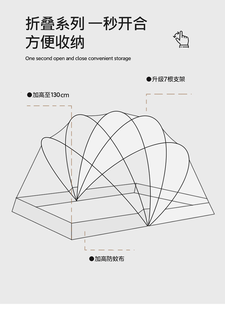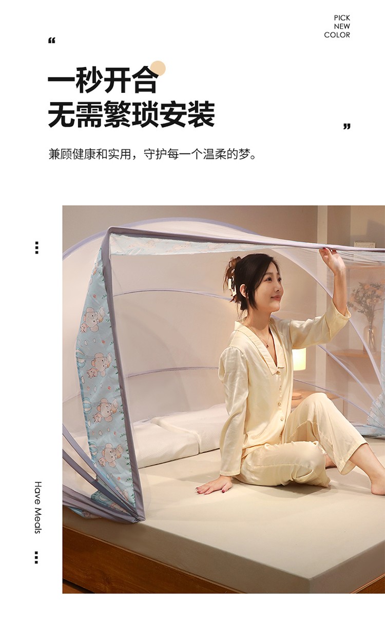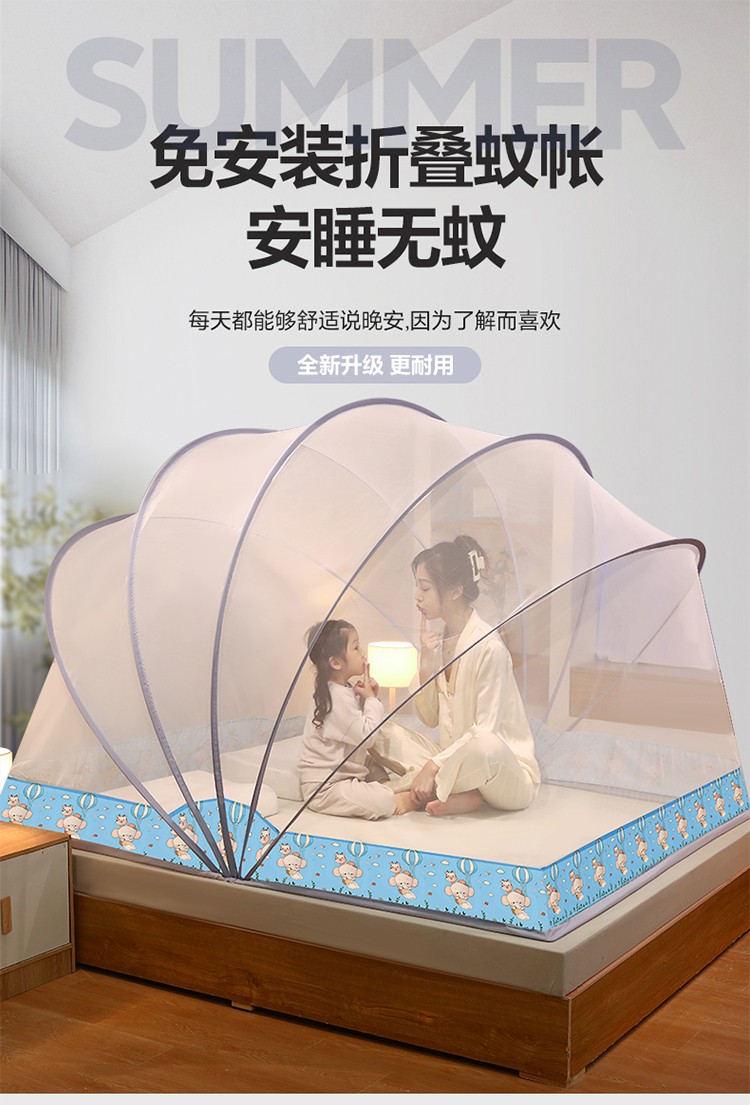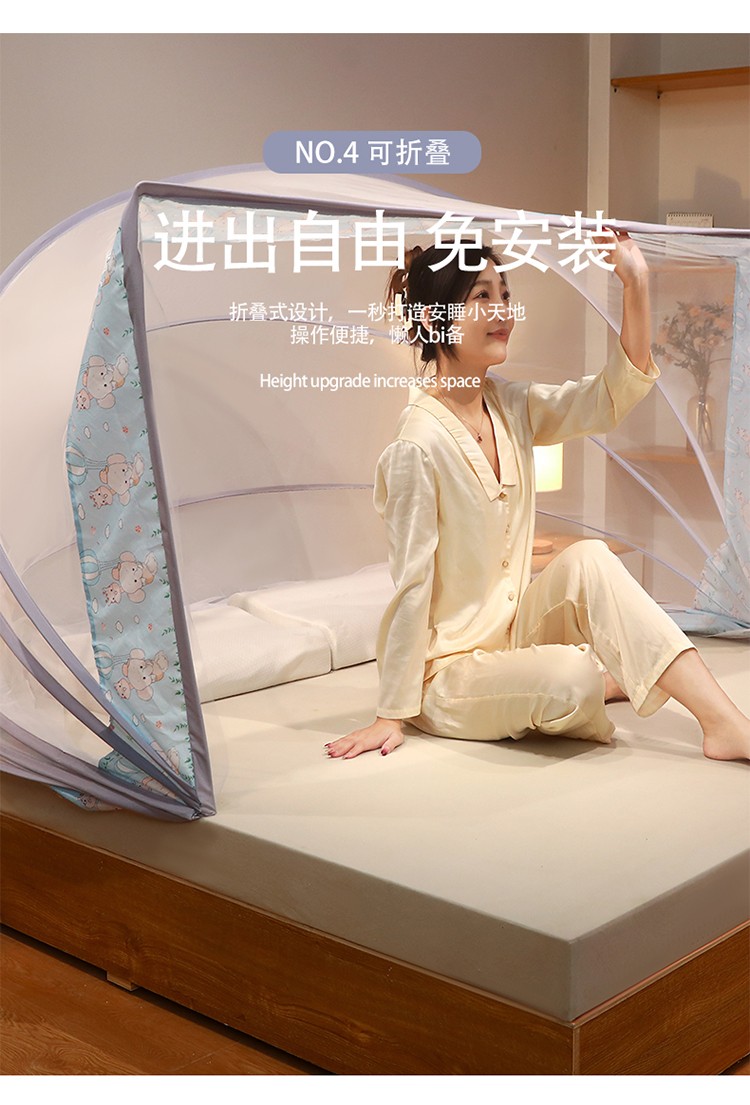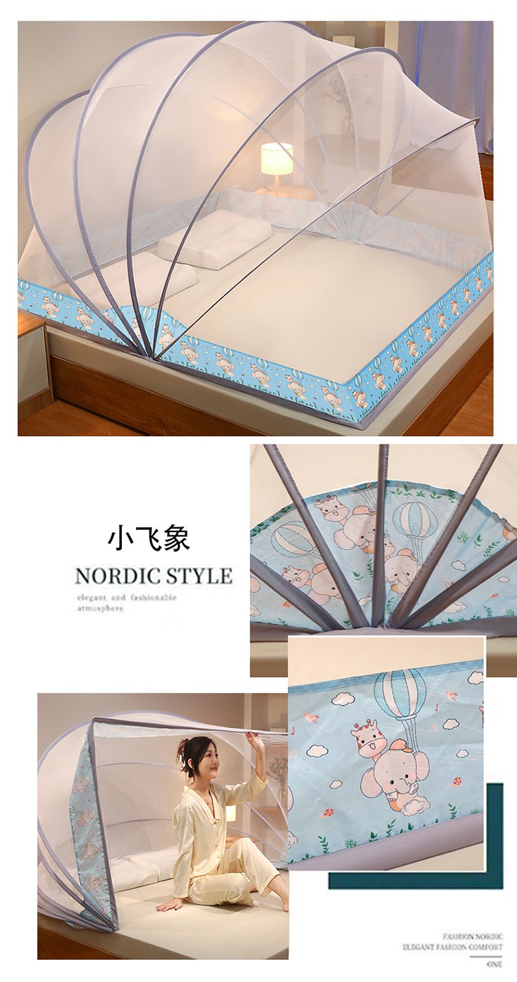 爱妮灵家纺 2023新款免安装折叠七股钢丝折叠加高印花蚊帐 小飞象