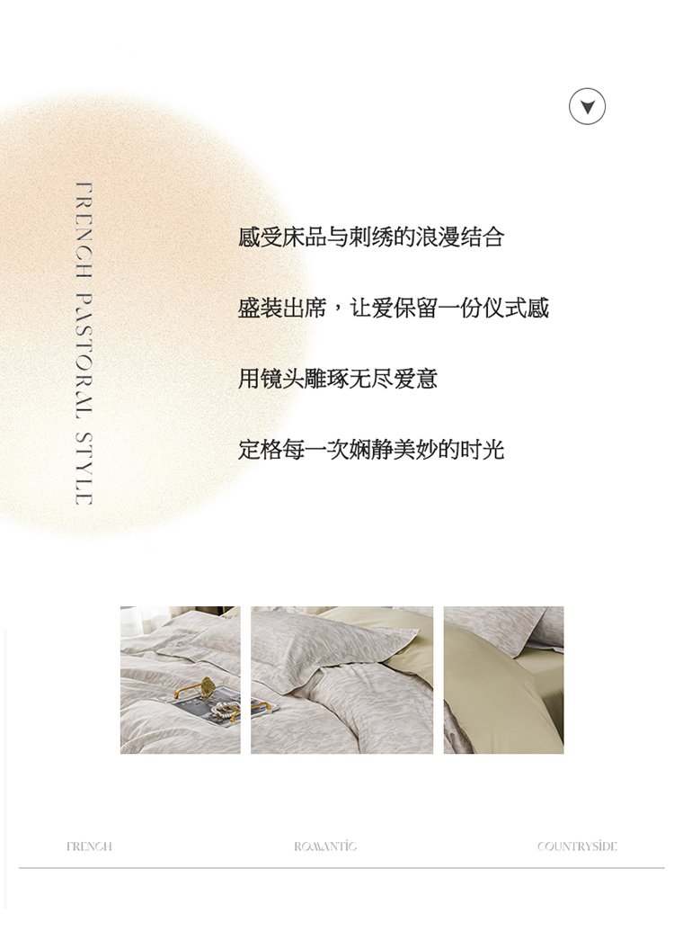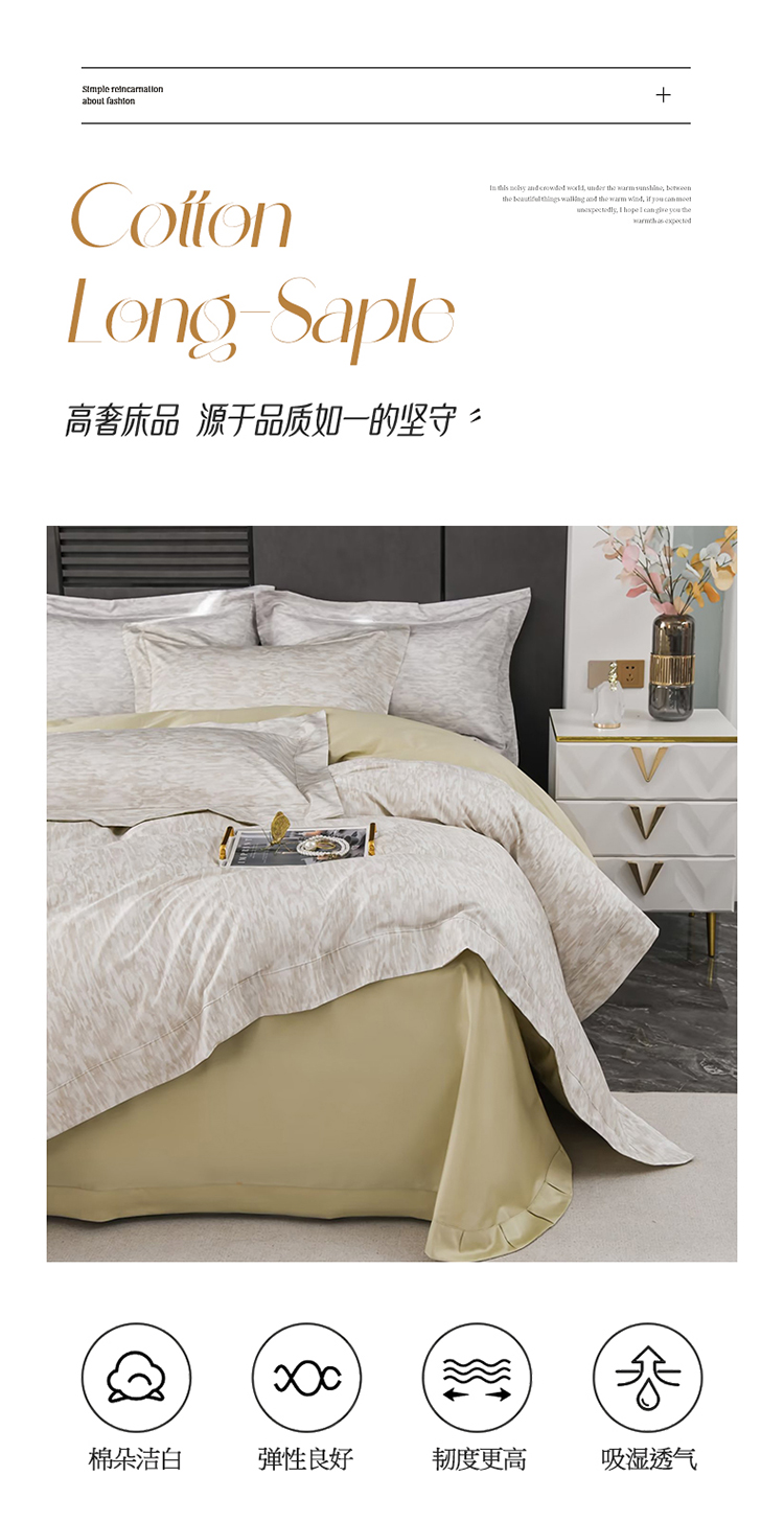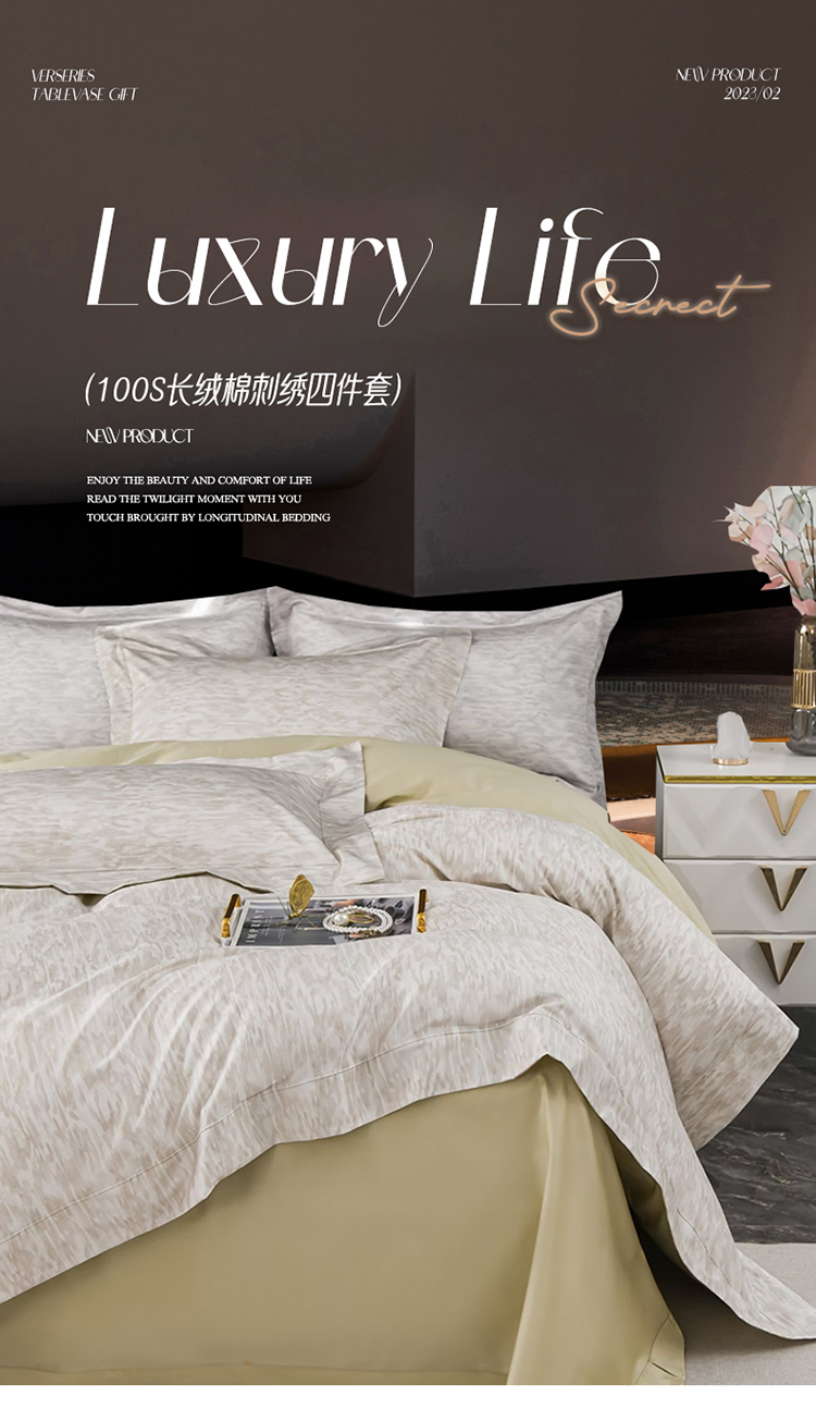 名品优仓 2023新款高支高密长绒棉刺绣款四件套-简忆 简忆-米驼