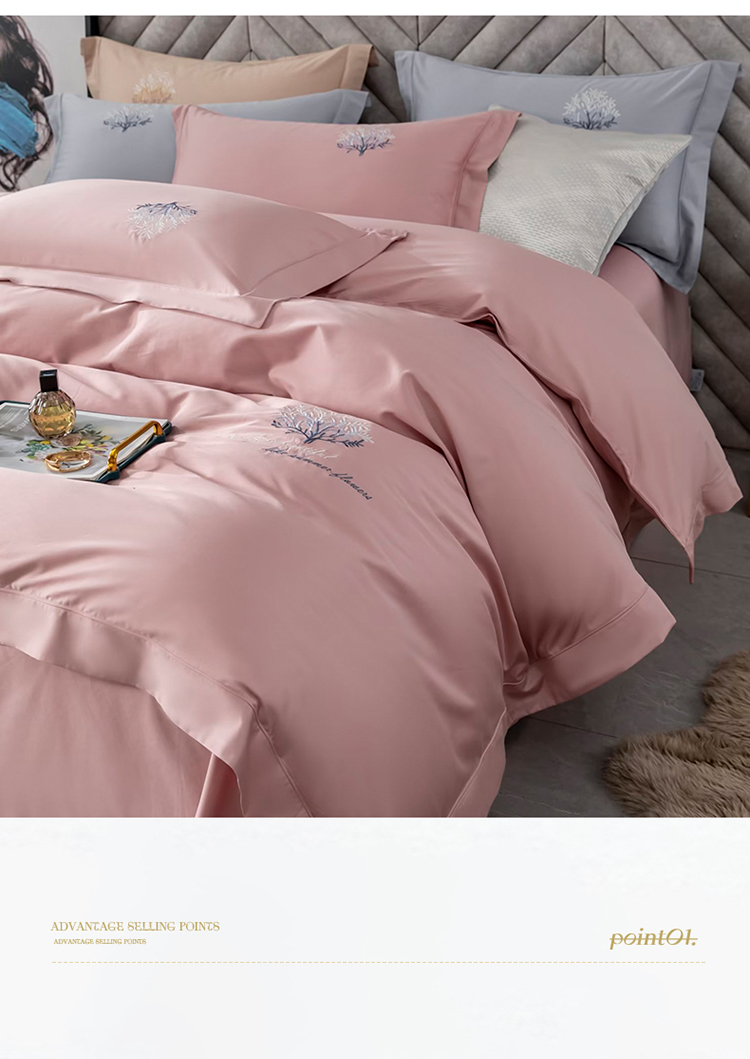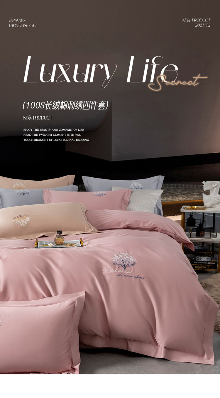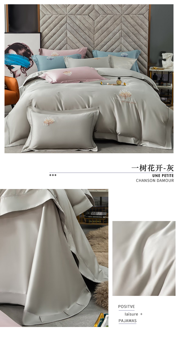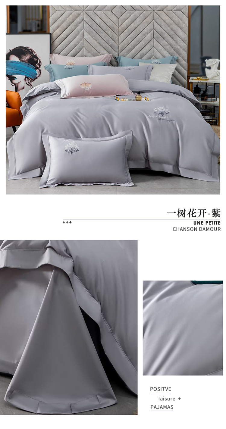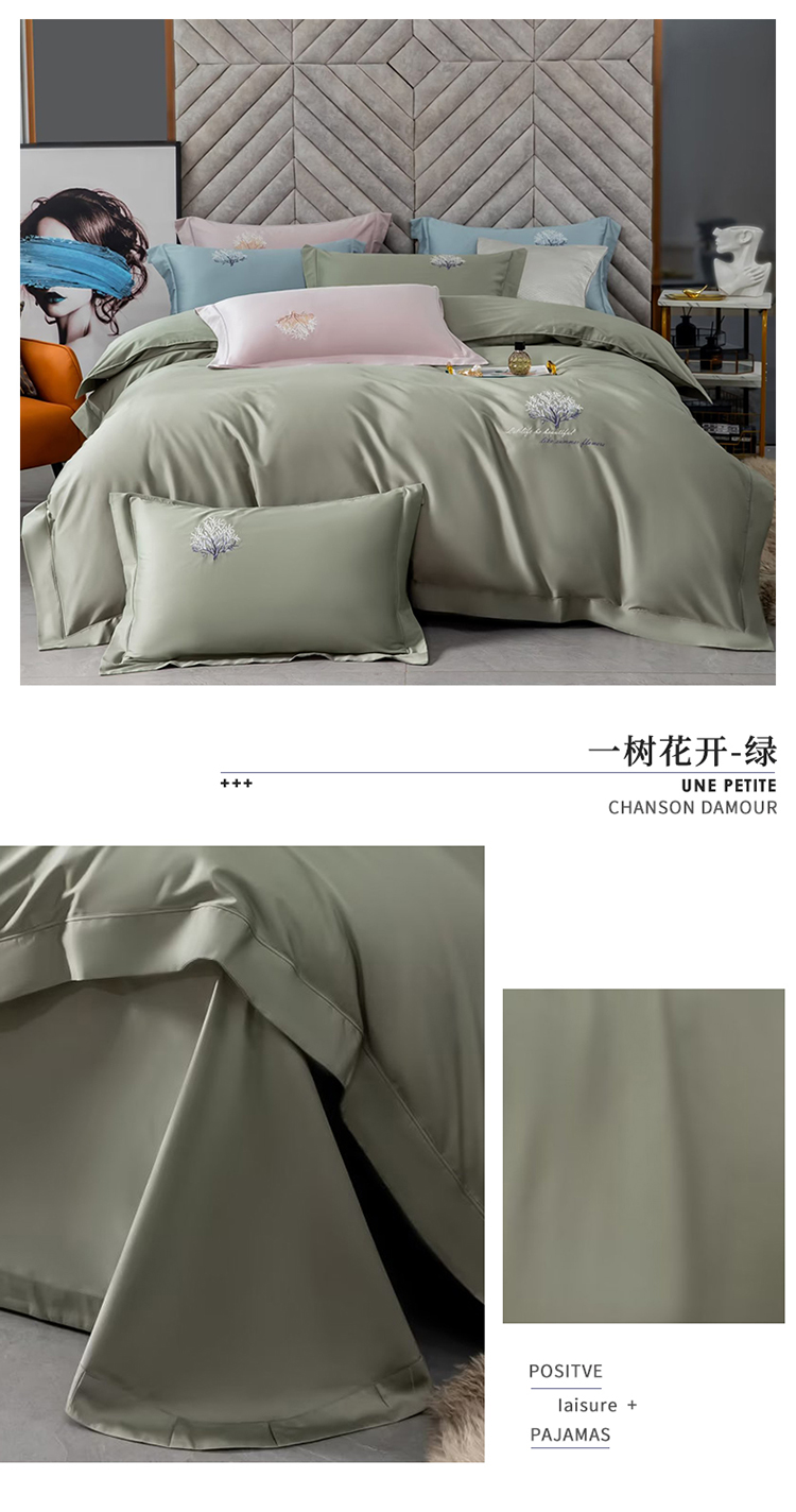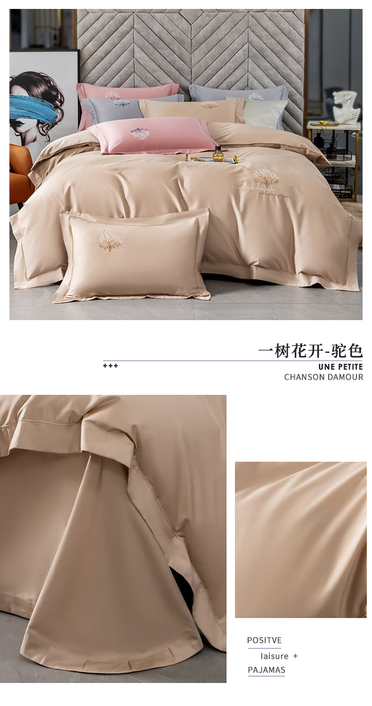 (总)名品优仓 2023新款高支高密长绒棉刺绣款四件套-一树花开
