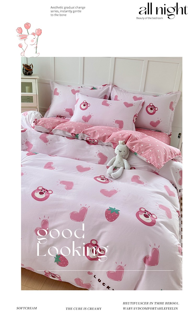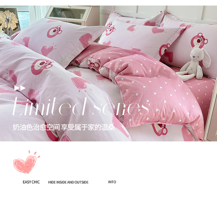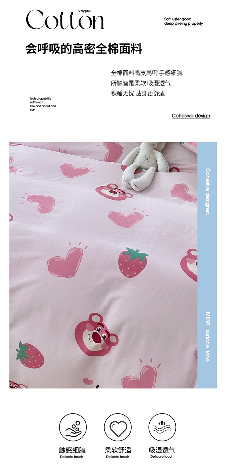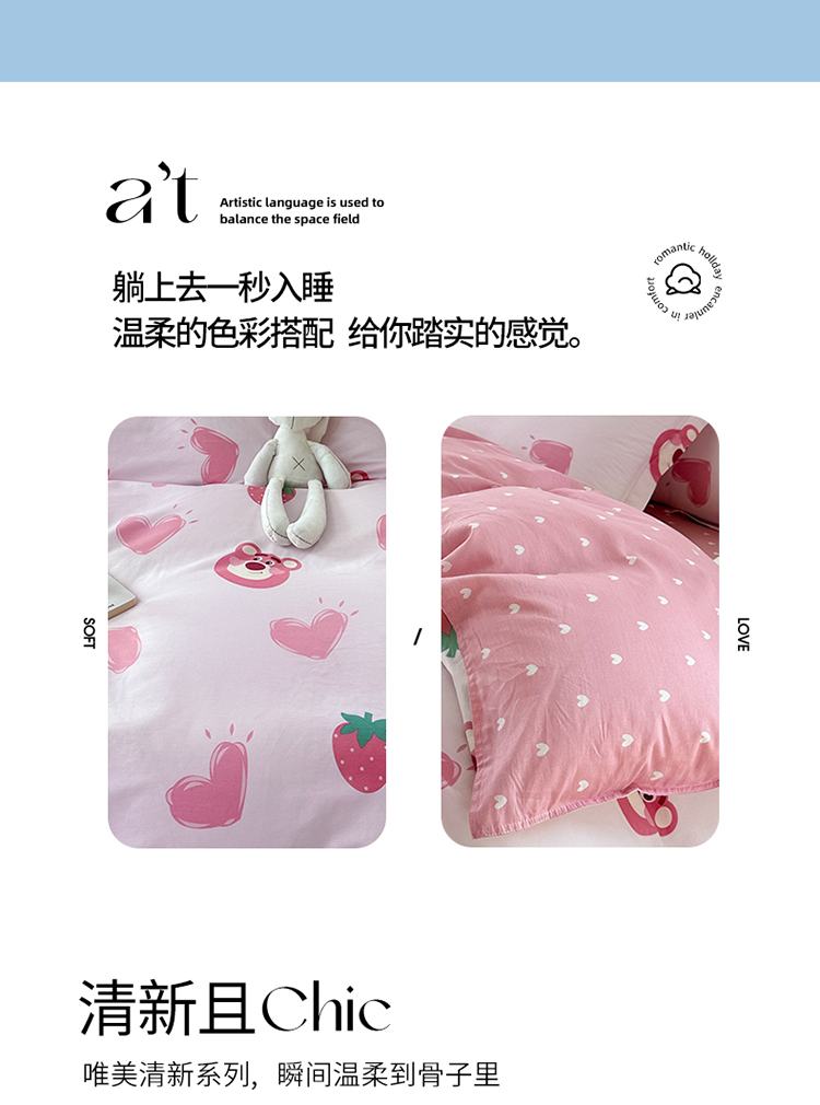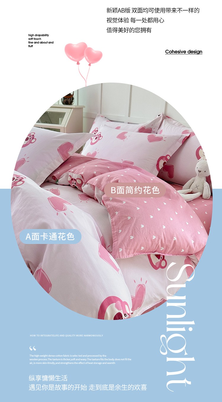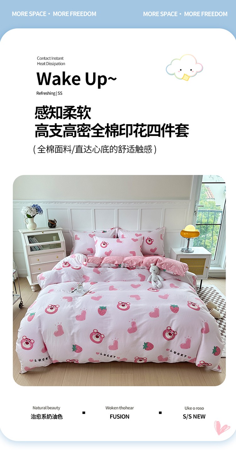 当前位置: 91家纺网 > 商品网购 > 床品套件 > 四件套 > 贡缎全棉四件套 > 帛织澜 2025新款全棉喷气12868系列纯棉四件套 甜心乐园