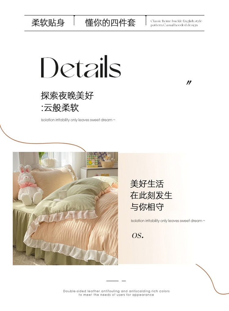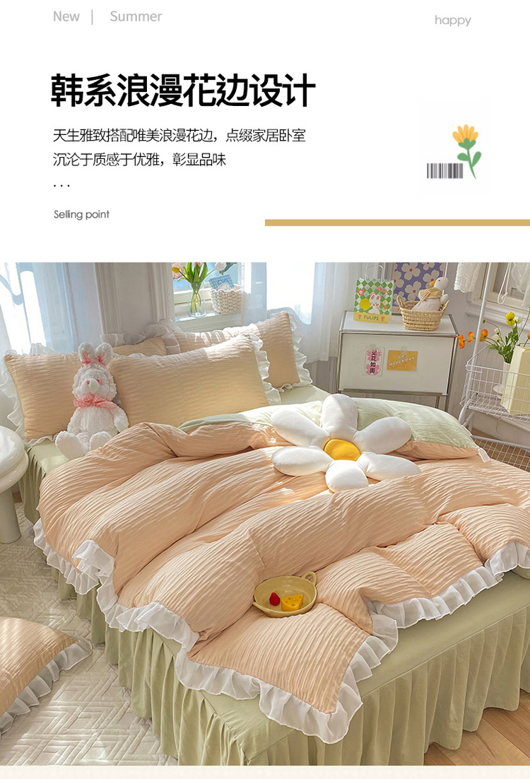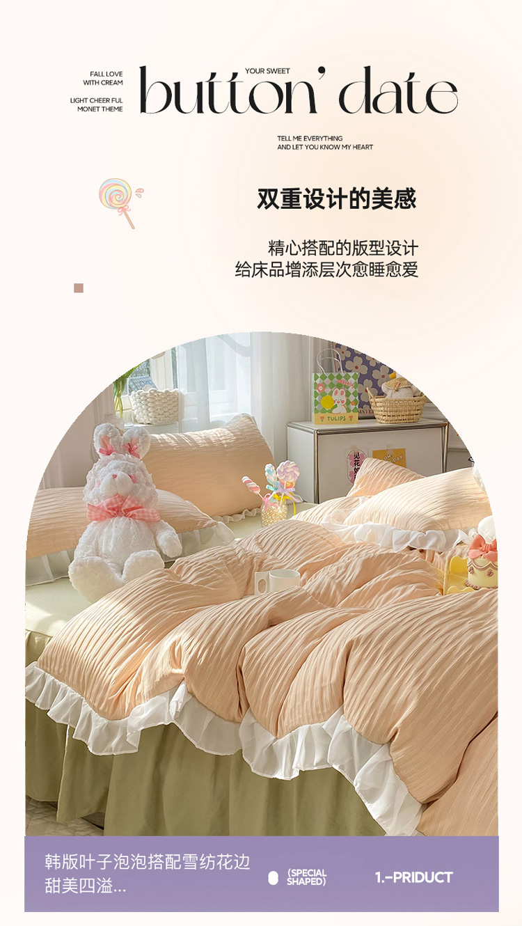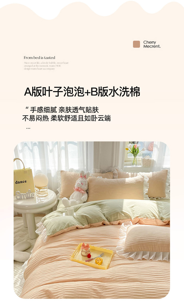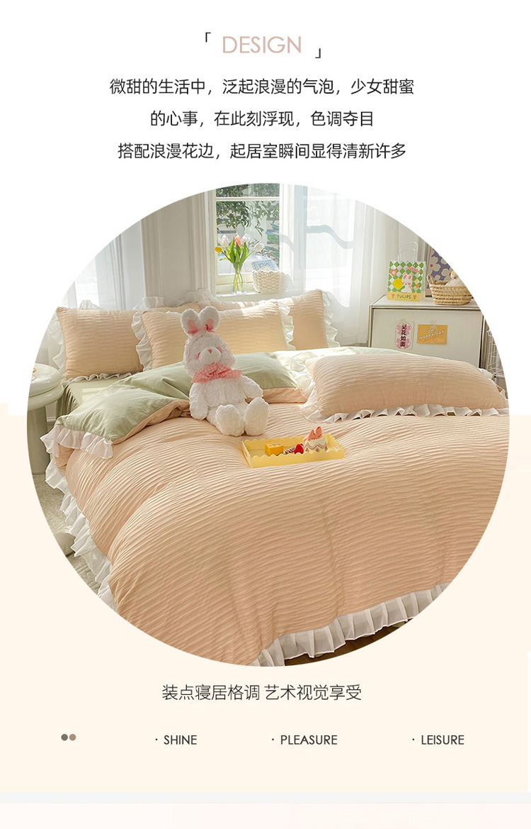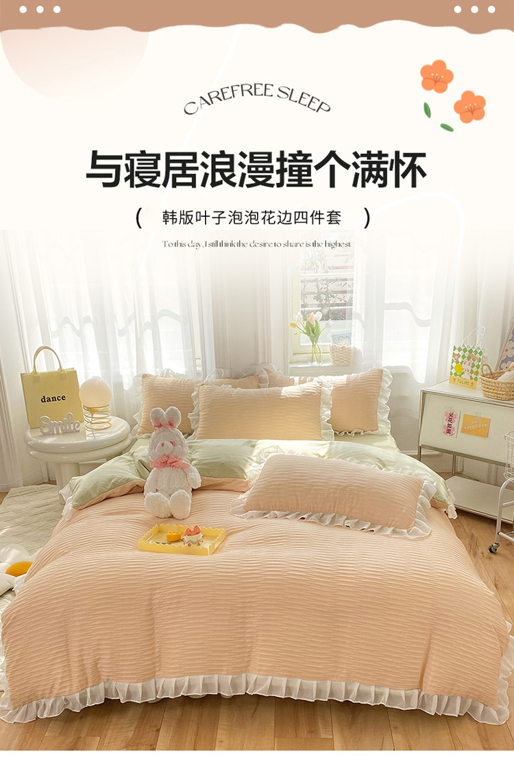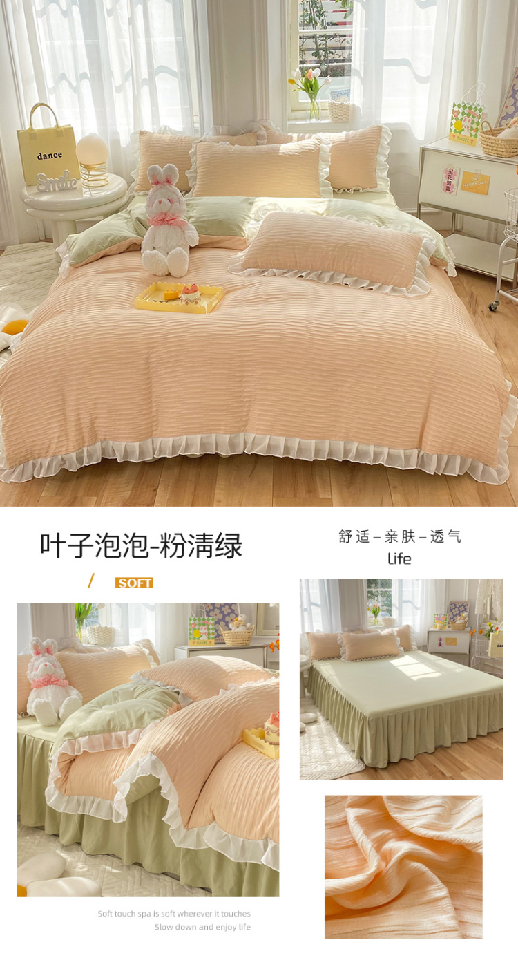当前位置: 91家纺网 > 商品网购 > 床品套件 > 四件套 > 慕澄 2023新款叶子泡泡雪纺花边系列 叶子泡泡-粉清绿