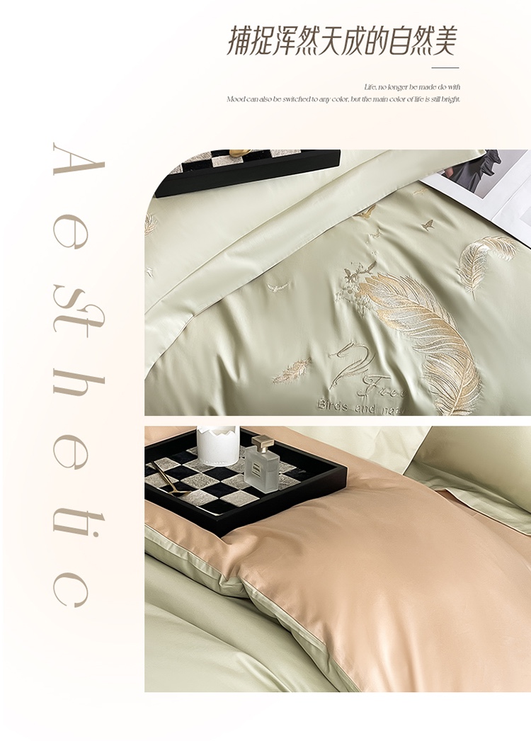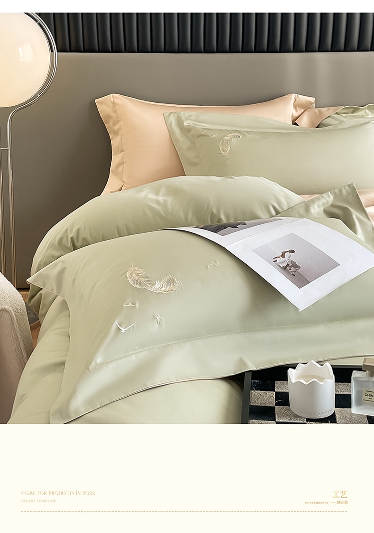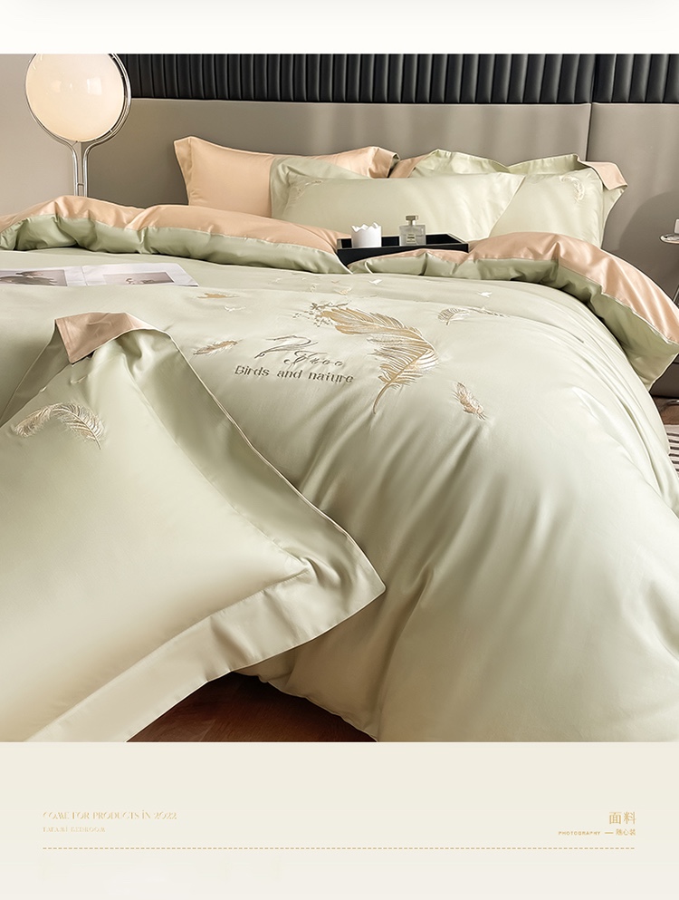 商品名称:蓝米卡夫 2024全棉高级感长绒棉刺绣兰羽系列-单被套 兰羽-果绿香槟