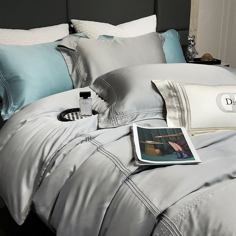 商品名称:涞澳 2023新款60支纯色天丝压线系列四件套--云汐系列 云汐-曙光银