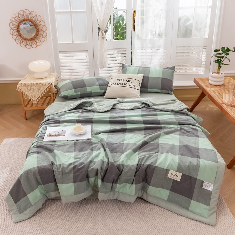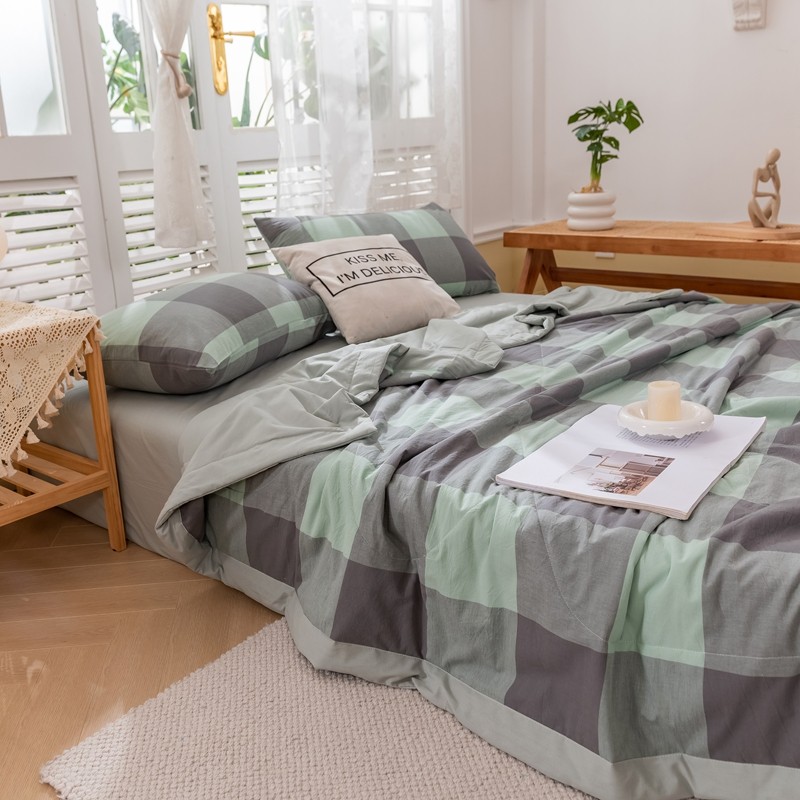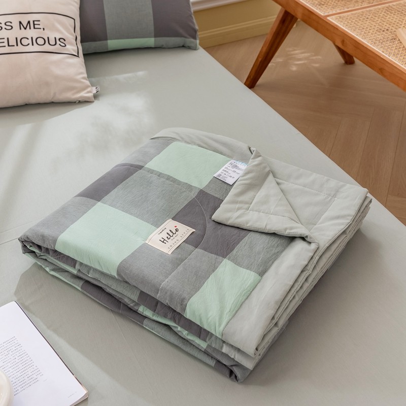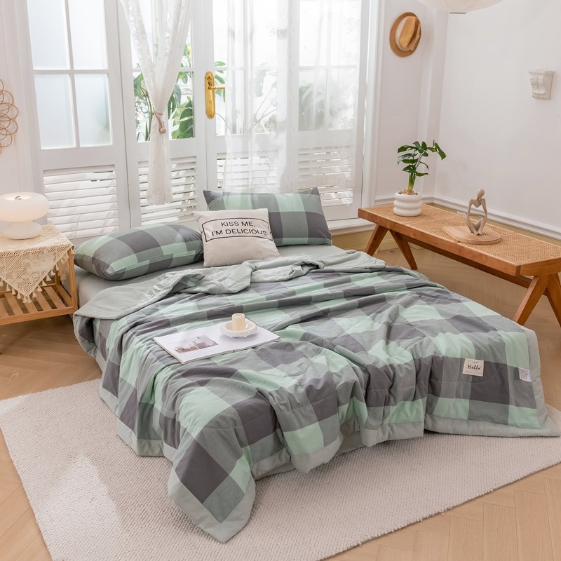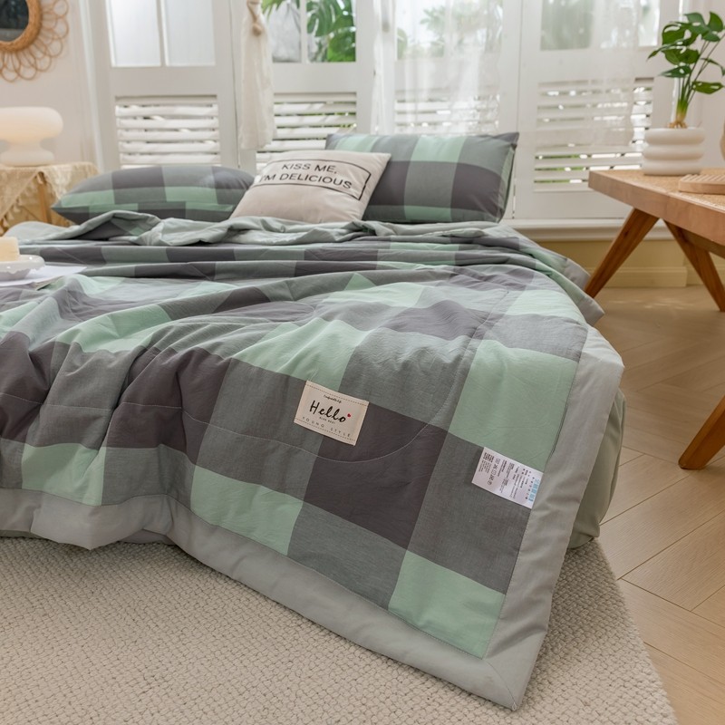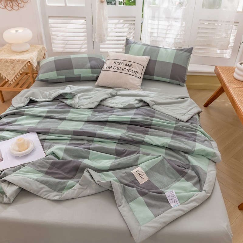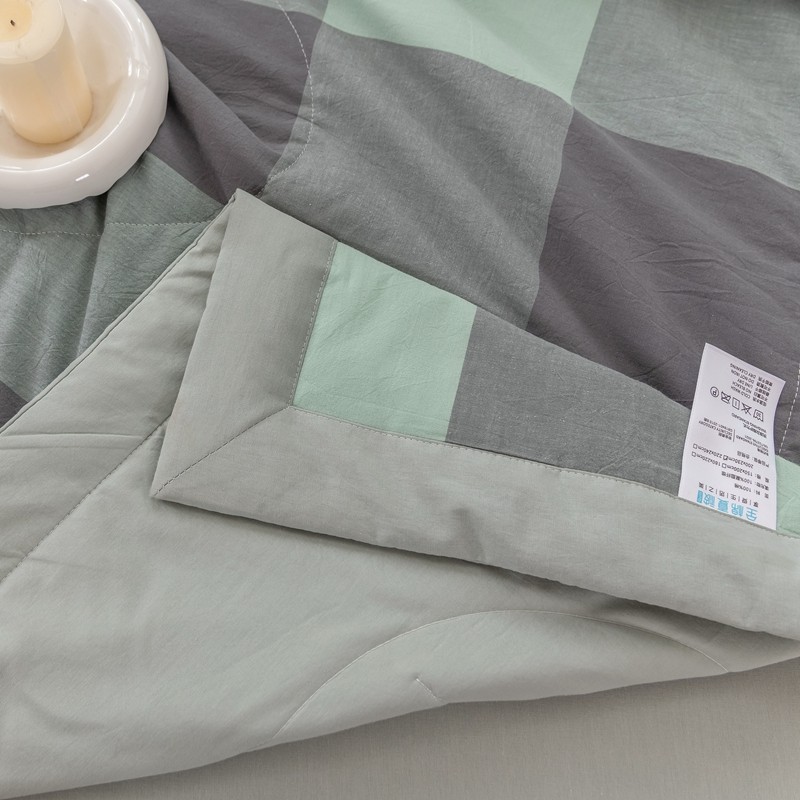商品名称:简色坊 2023新款水洗棉夏被 灰绿格