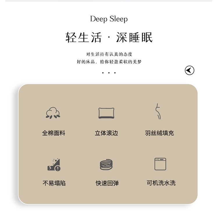 当前位置: 91家纺网 > 商品网购 > 枕头/枕芯/保健枕/颈椎枕 > 普通枕芯 > 爱来伊 2022新款全棉立体滚边羽丝绒枕