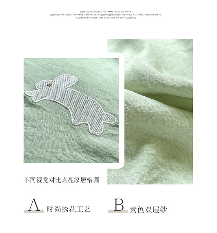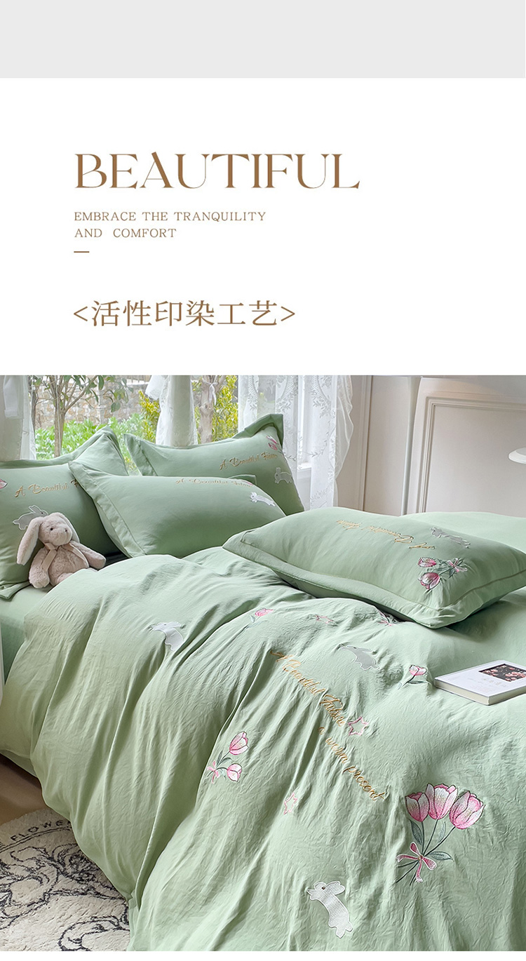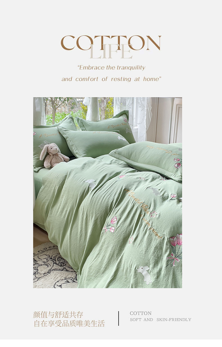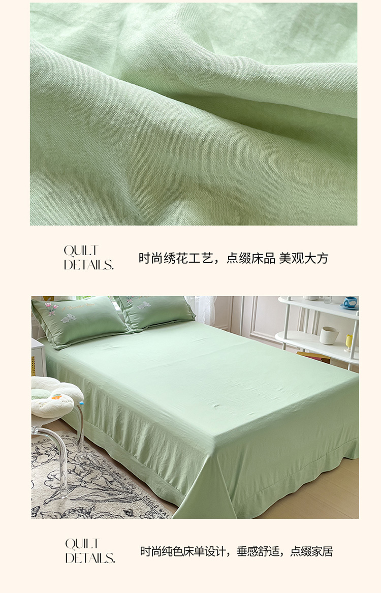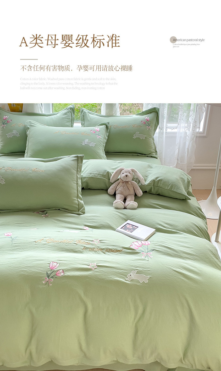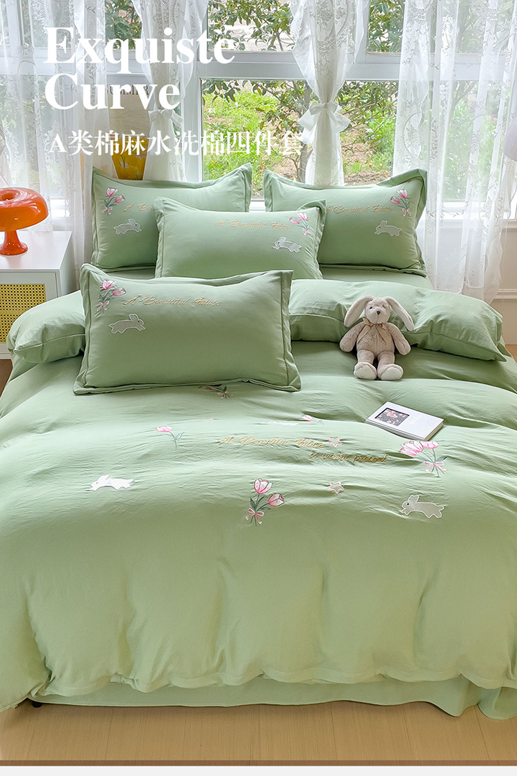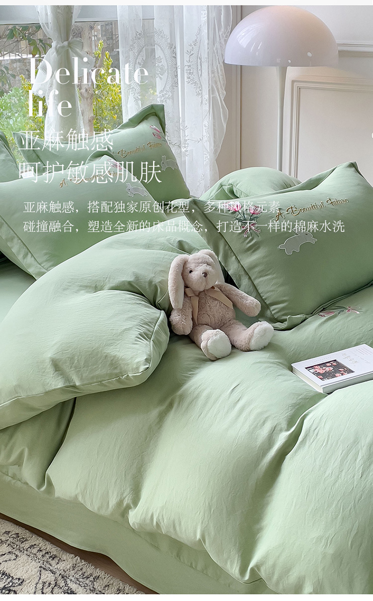 2023春夏新品A类双层纱水洗棉麻四件套-郁金香系列 郁金香-青提绿