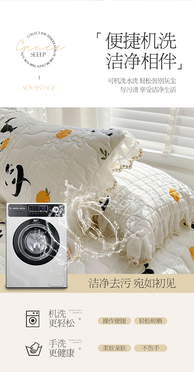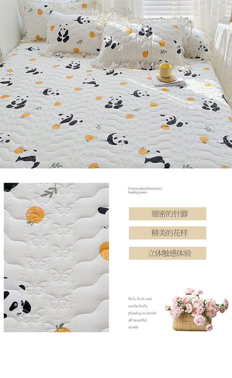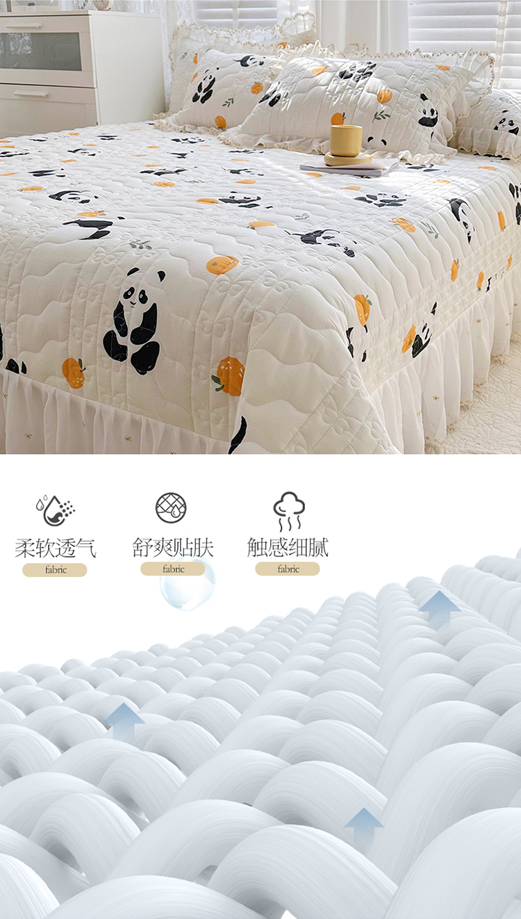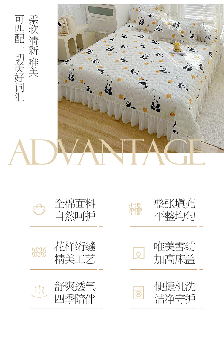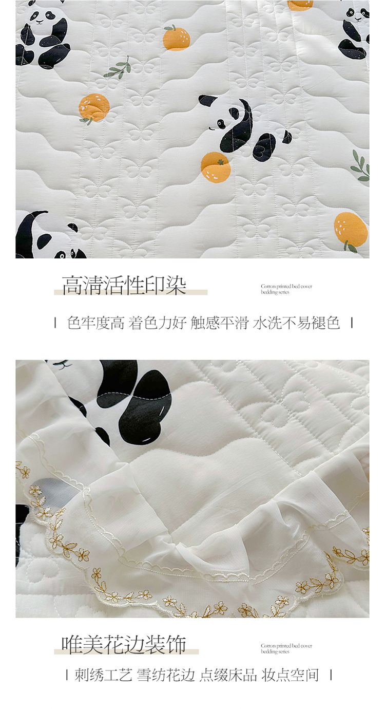 商品名称:宜凡 2023新款全棉蕾丝刺绣床盖三件套 黑白熊猫