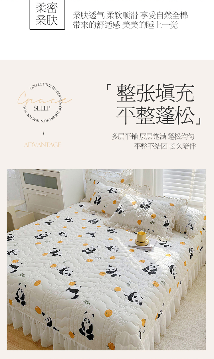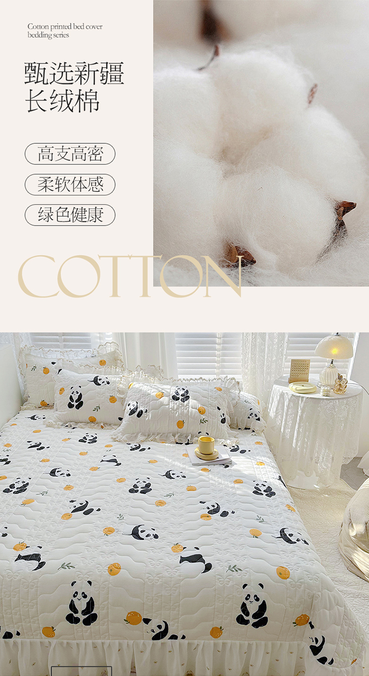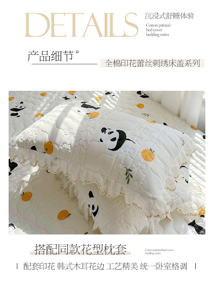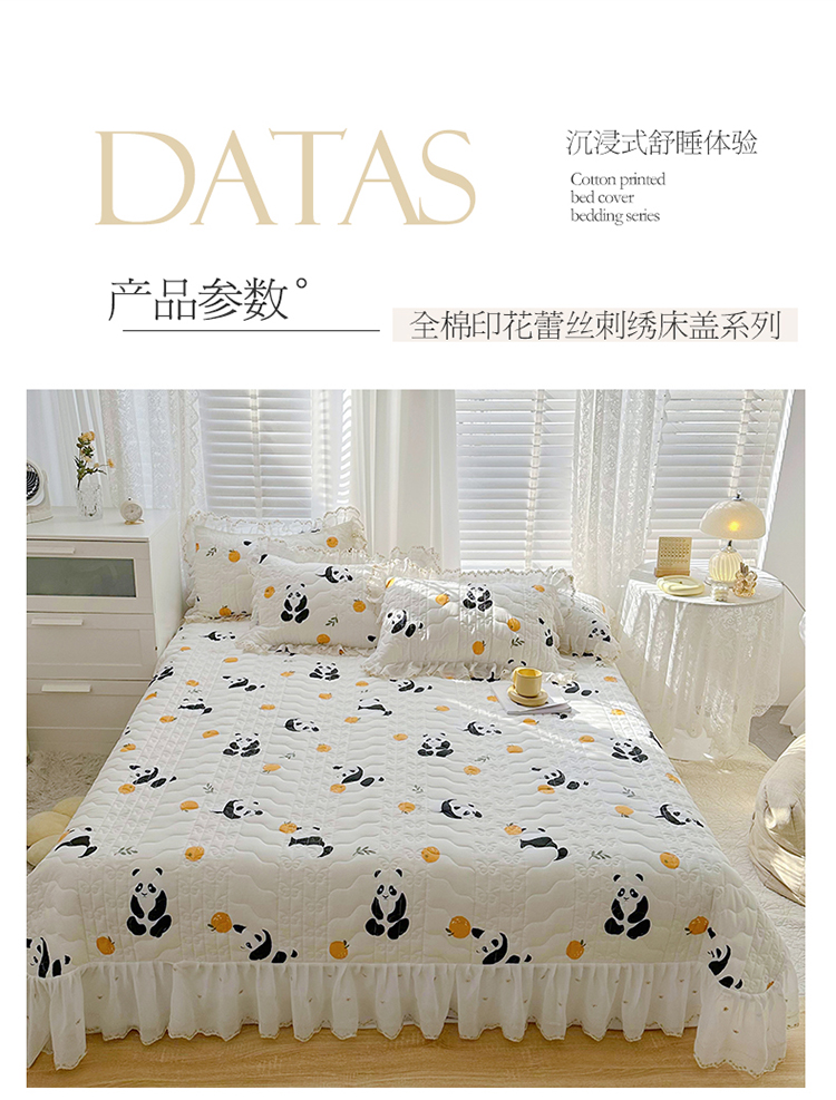 宜凡 2023新款全棉蕾丝刺绣床盖三件套 黑白熊猫