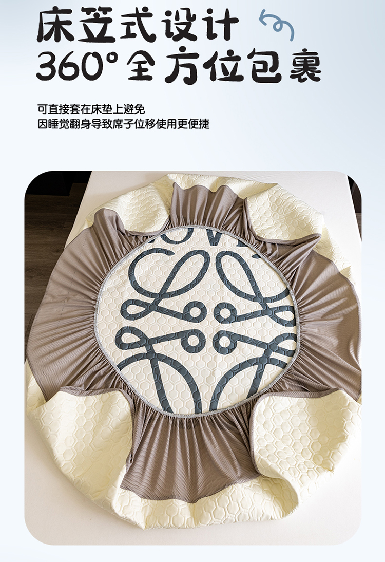 商品名称:摩卡 2024新品凉感丝床笠乳胶凉席三件套 至爱